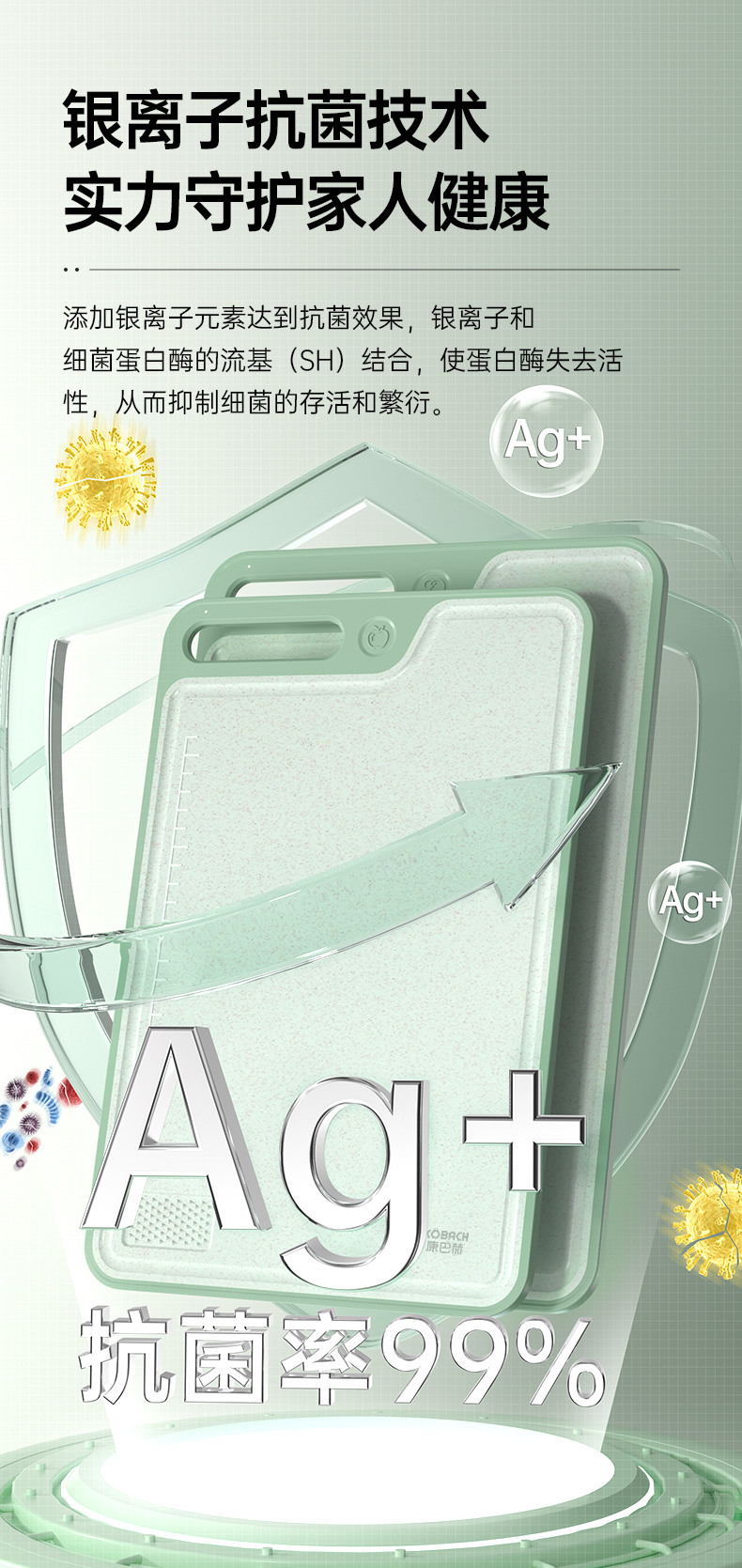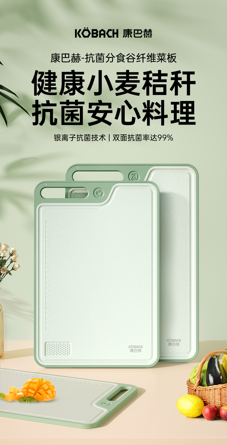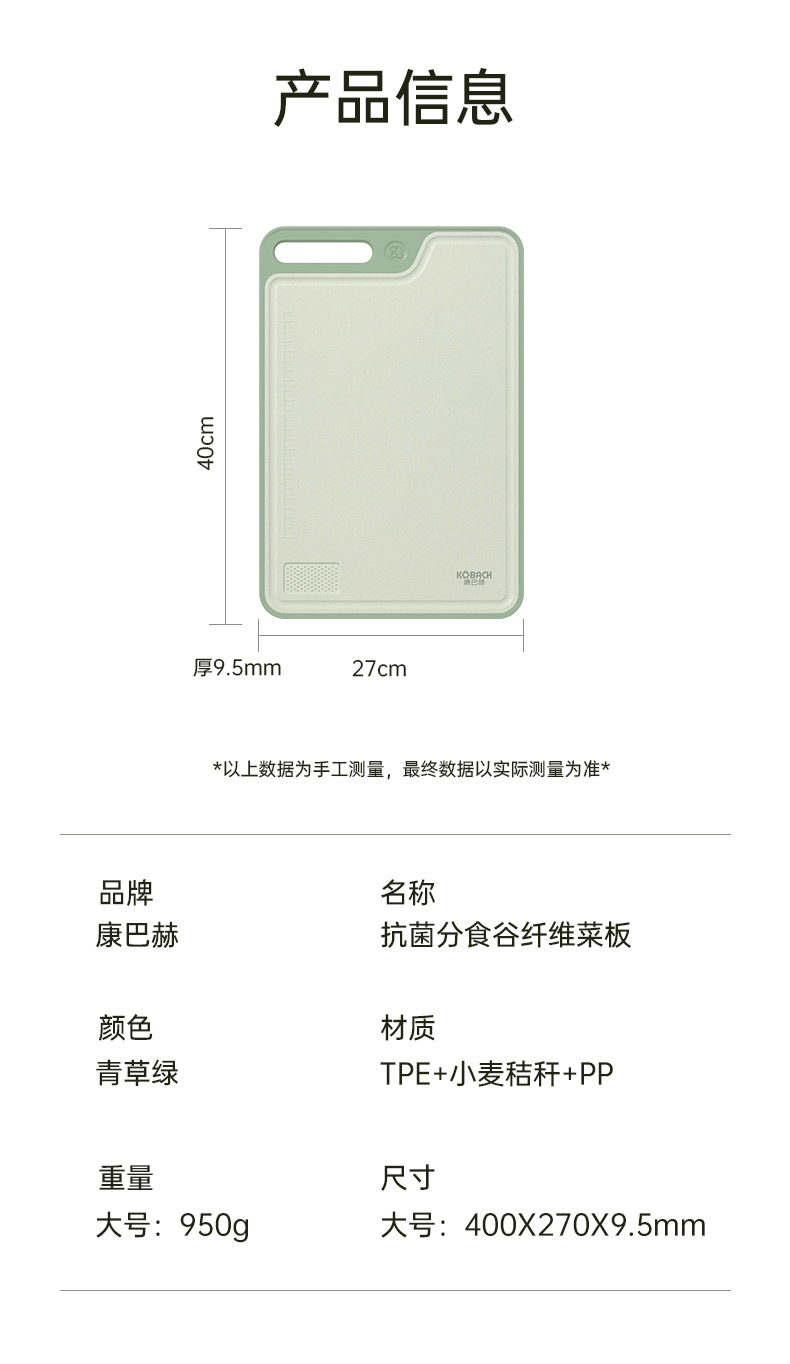【厨具】康巴赫谷物纤维菜板抗菌加厚砧案板 大号 40*27cm【14050314】 绿色