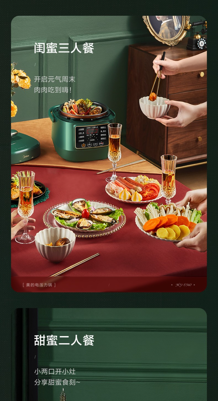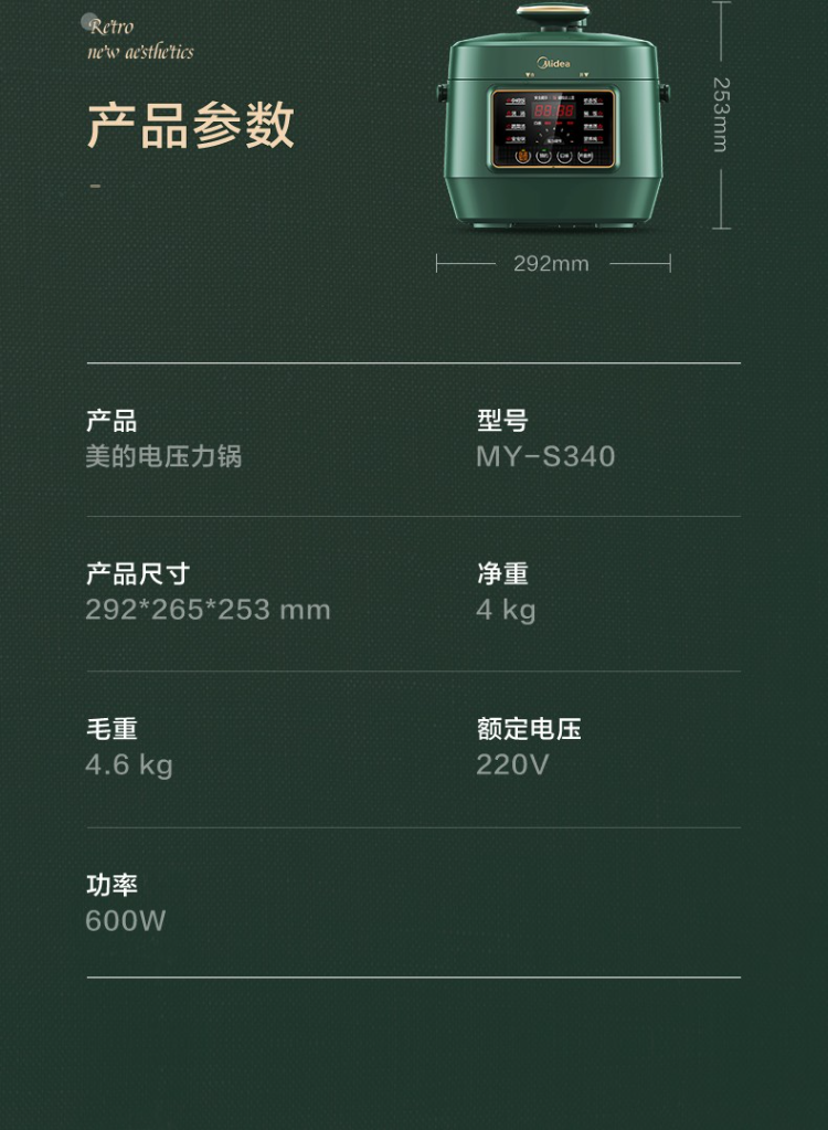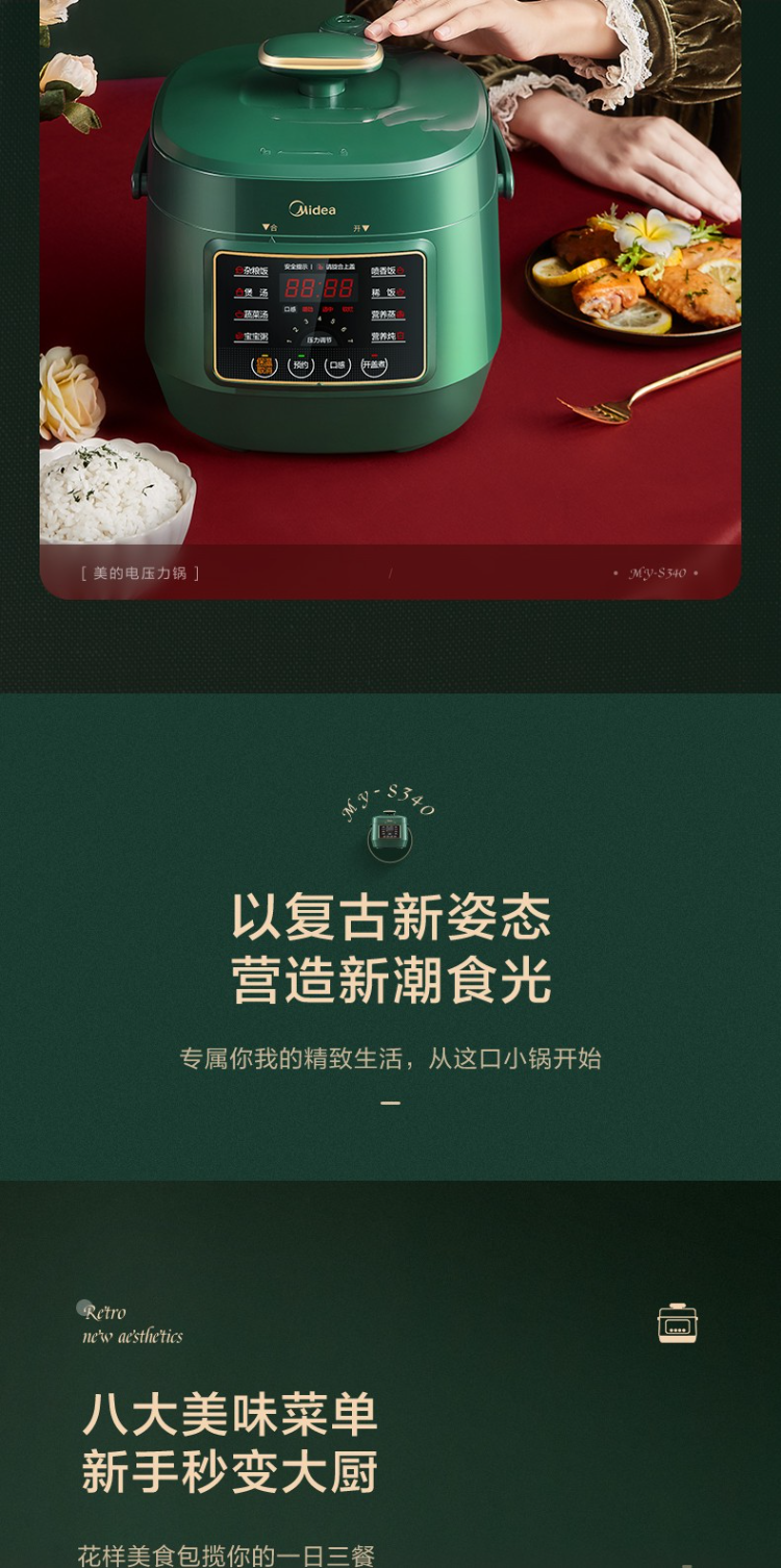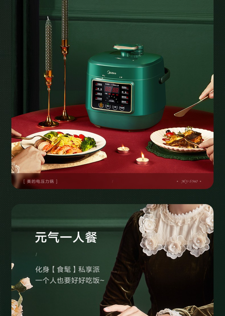 美的(Midea)电压力锅 智能高压锅 MY-S340 森墨绿 2.5L(单位:台) 军绿色