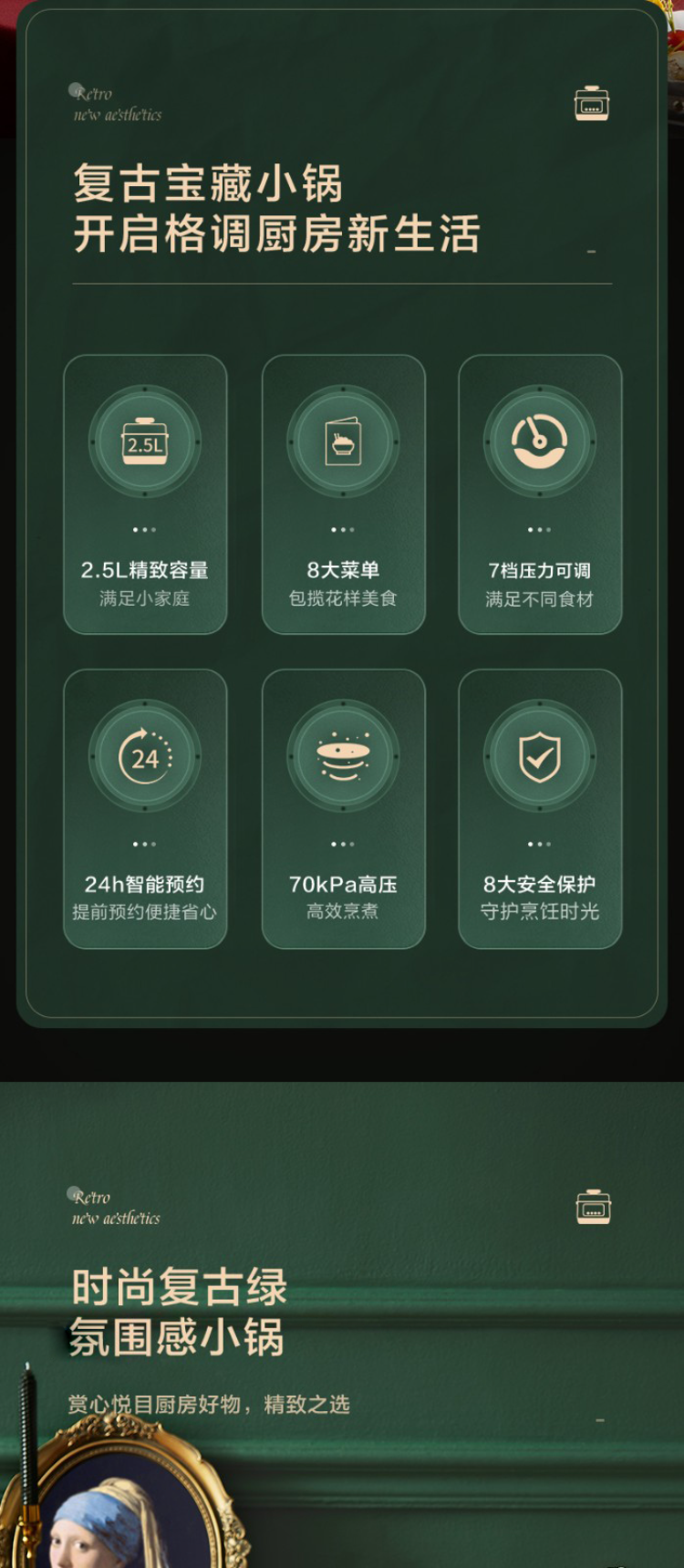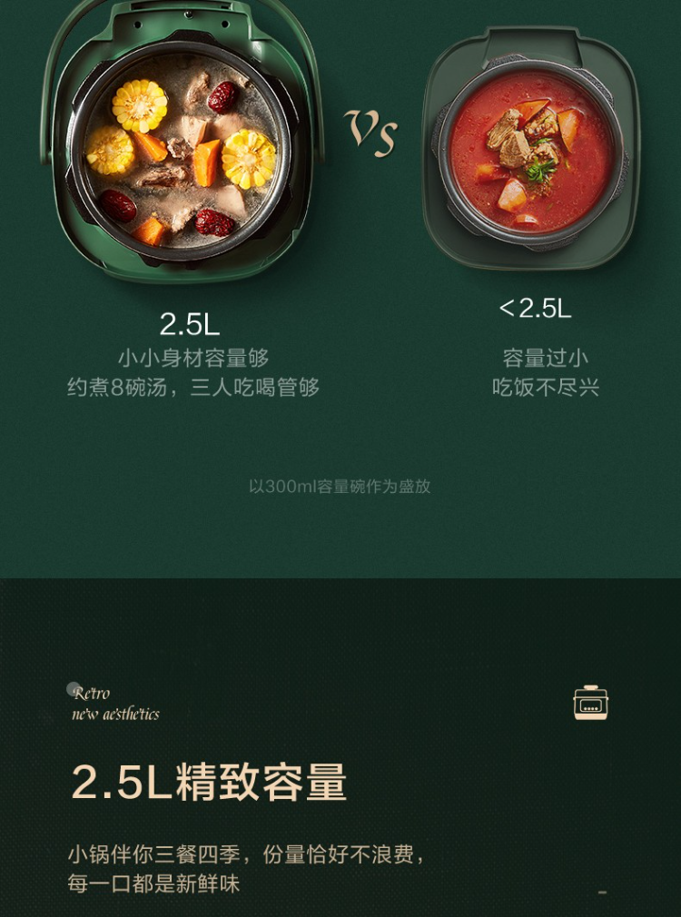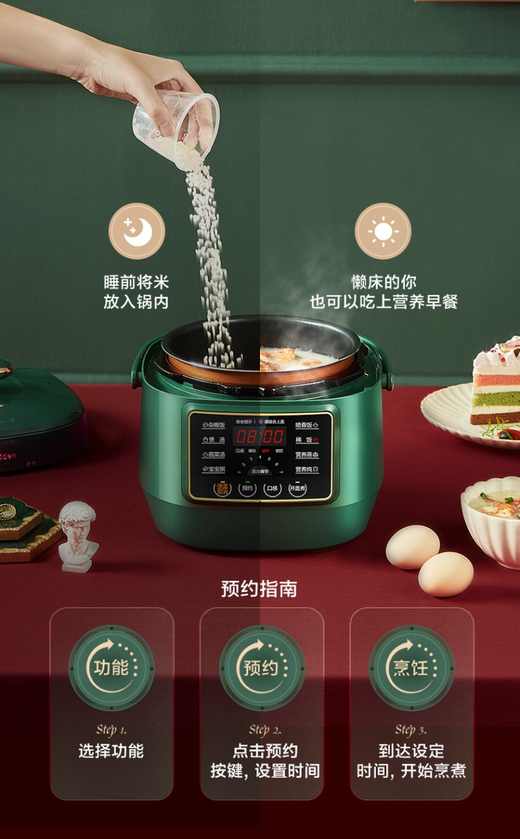 美的(Midea)电压力锅 智能高压锅 MY-S340 森墨绿 2.5L(单位:台) 军绿色