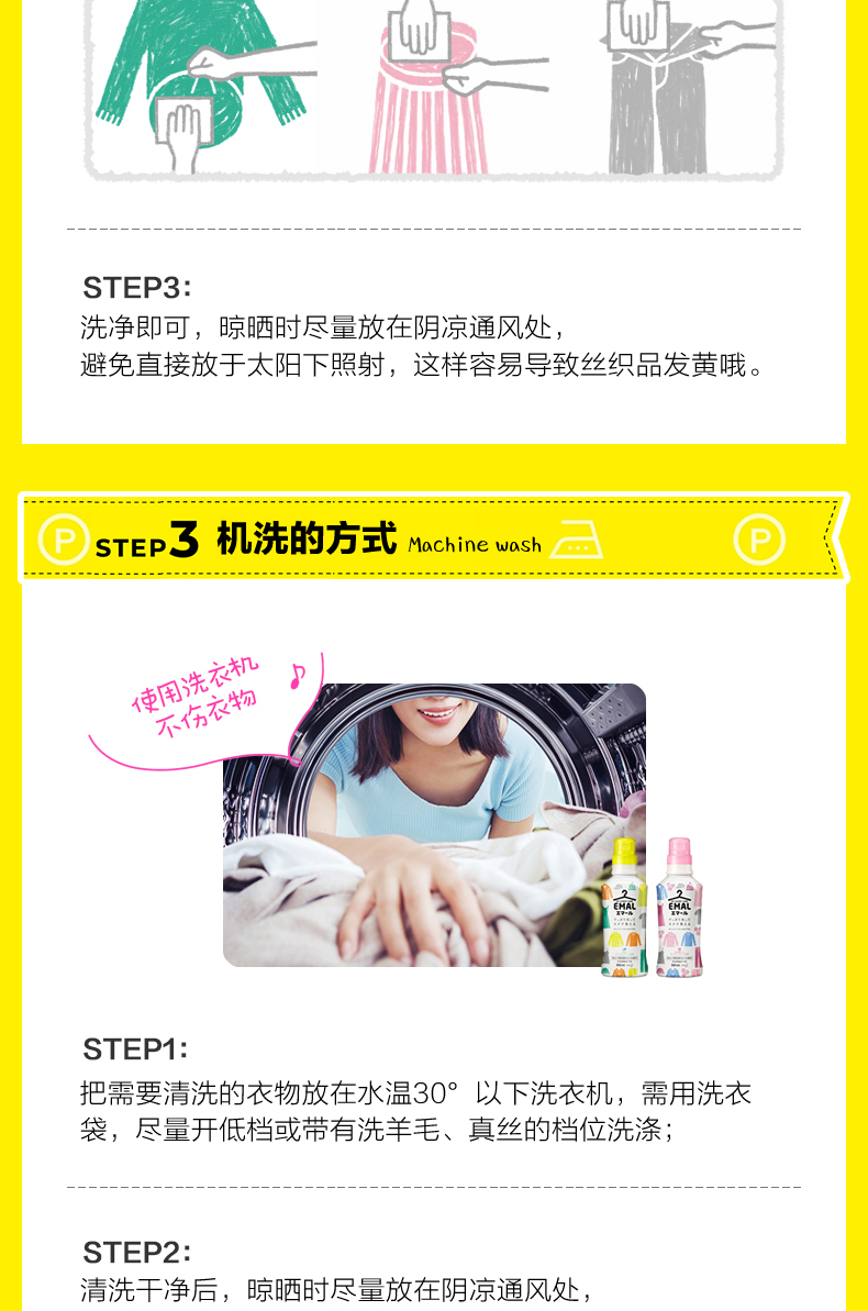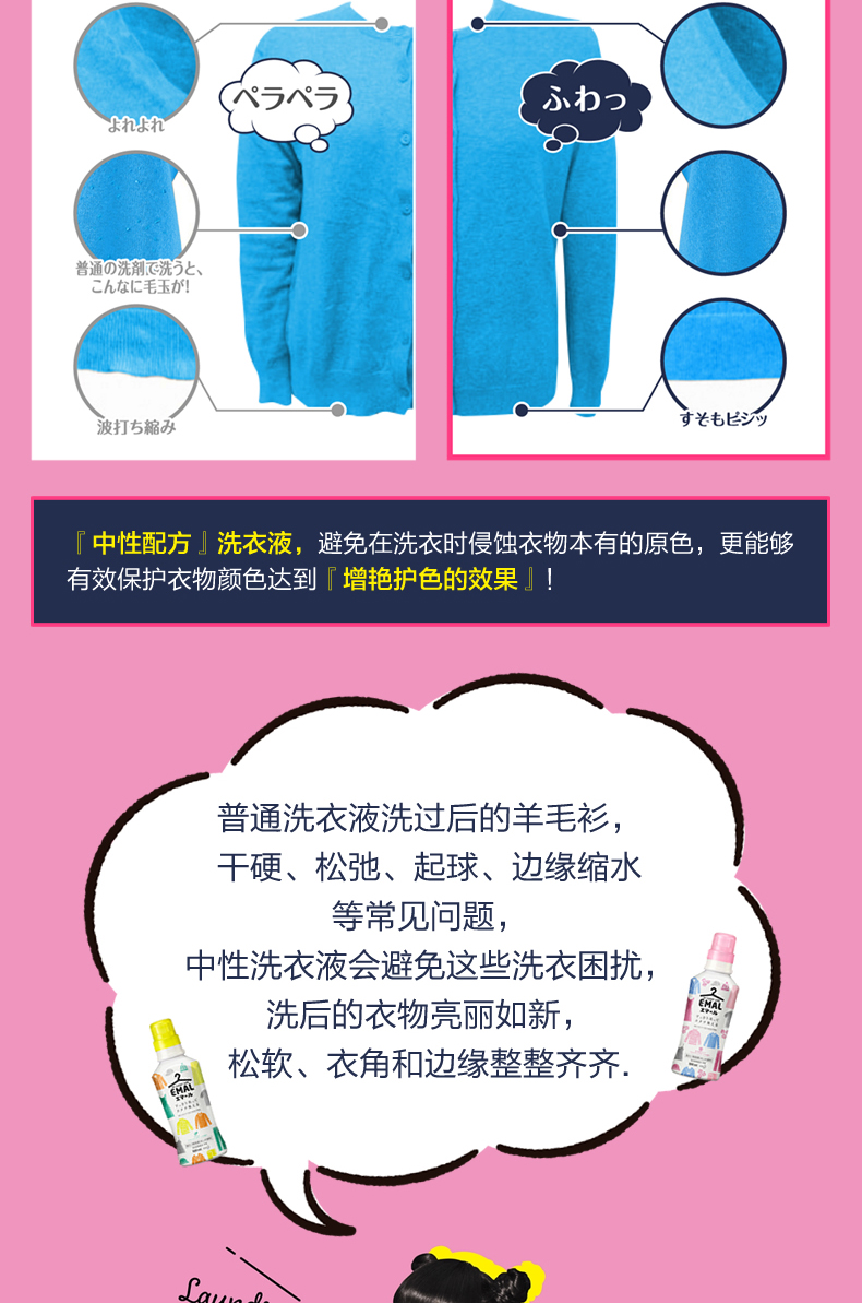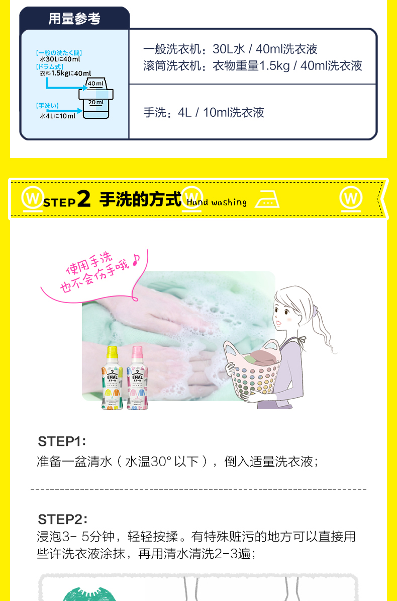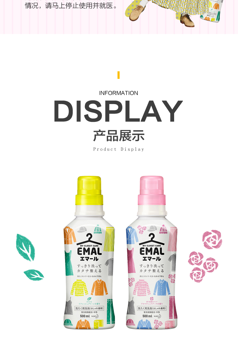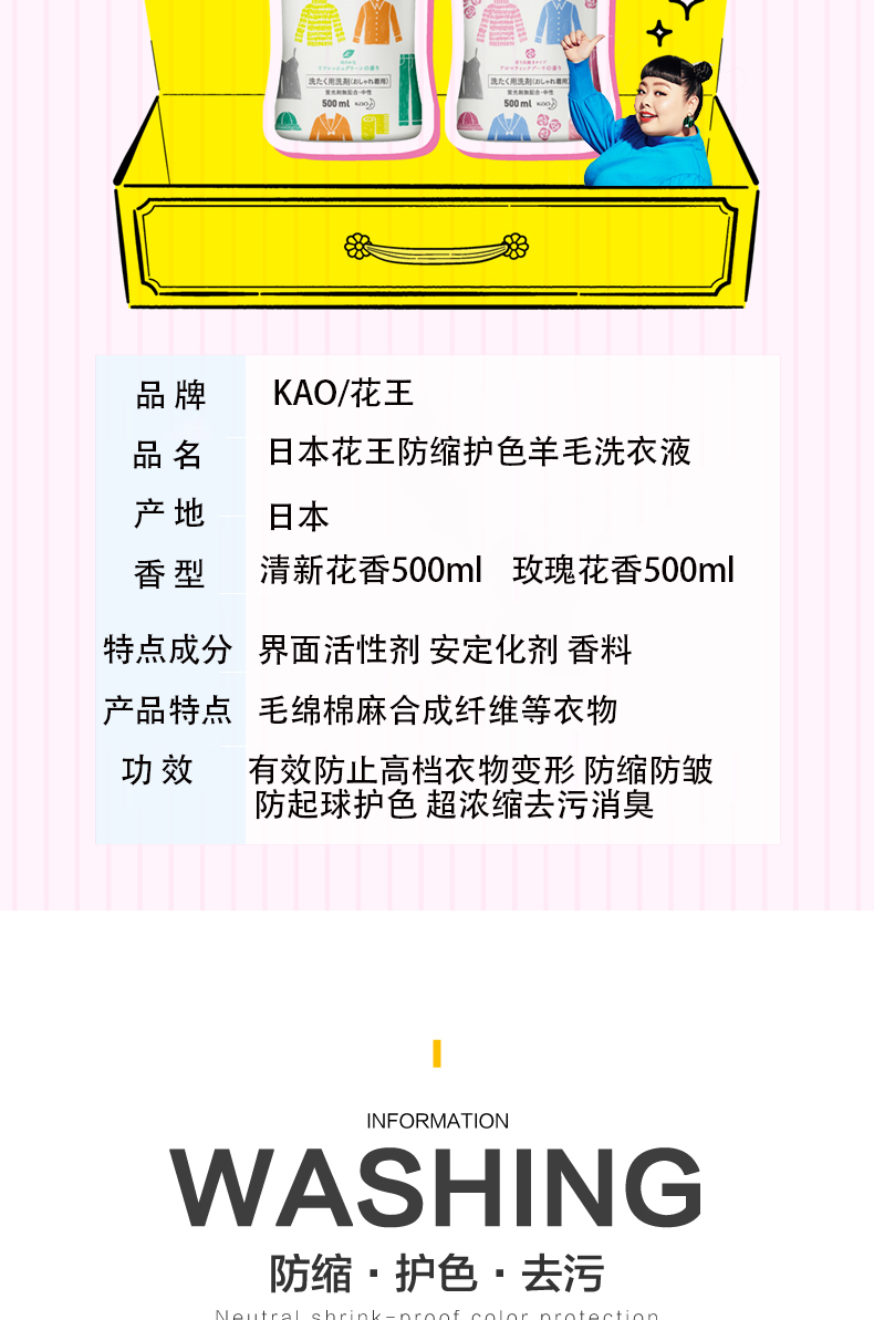 花王 中性洗衣液 500ml 防缩护色 清新花香 瓶 香槟黄