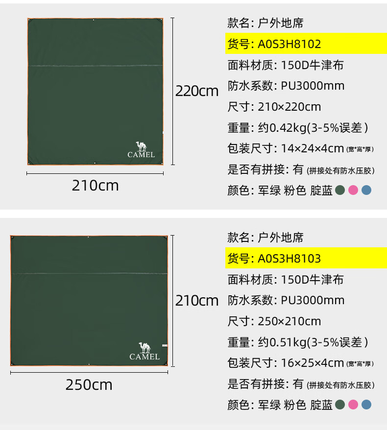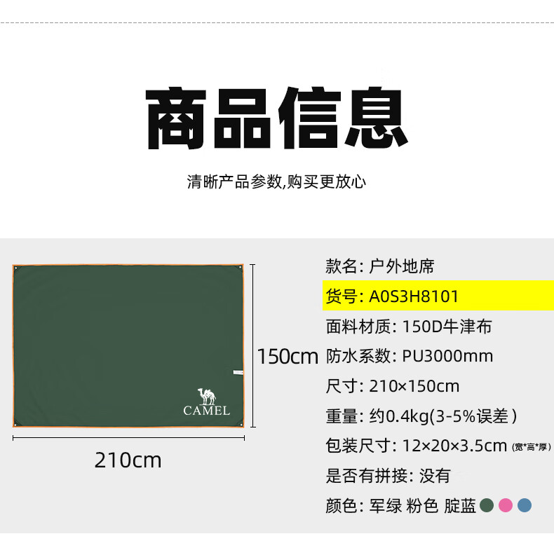 骆驼户外地席 露营旅行地垫 防水耐磨野餐垫牛津布防潮垫 A0S3H8102 张 靛蓝