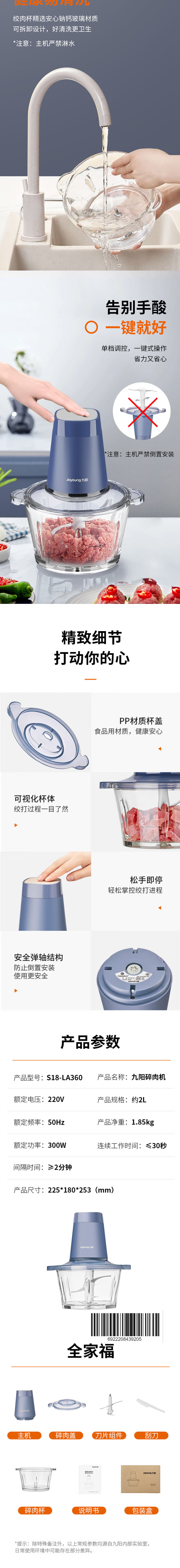 九阳绞肉机S18-LA360(单位:台) 蓝色