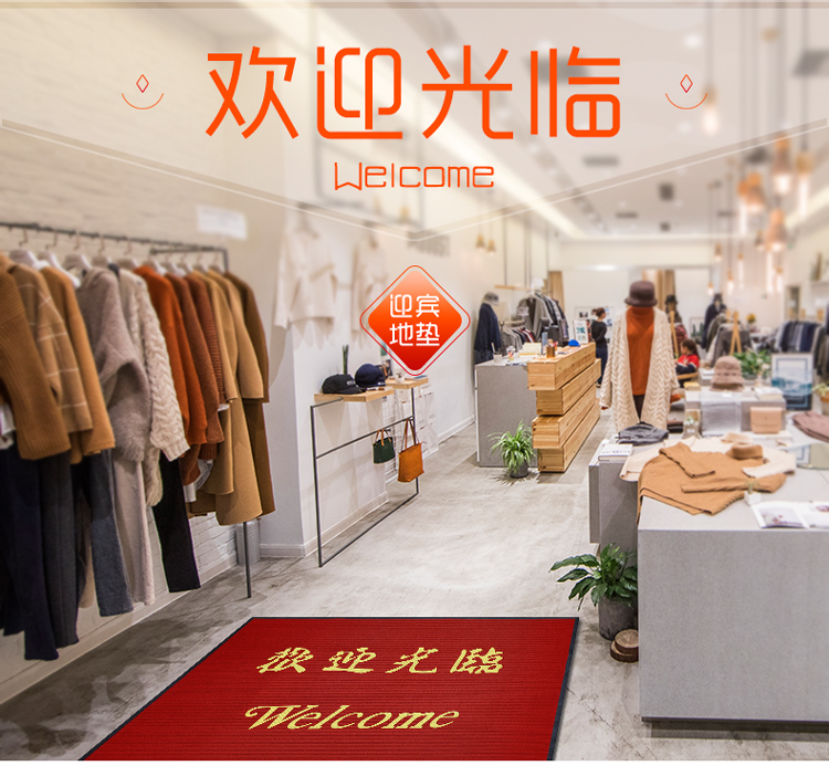 墨斗鱼欢迎光临地垫 商场迎宾垫脚垫进门防滑垫丝圈地垫暗红条纹 单位:张 暗红色