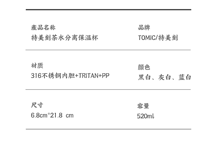 特美刻 Tw60020茶水分离保温杯520ml 蓝白色