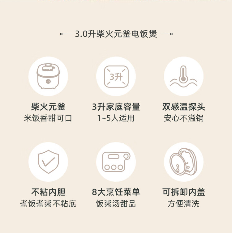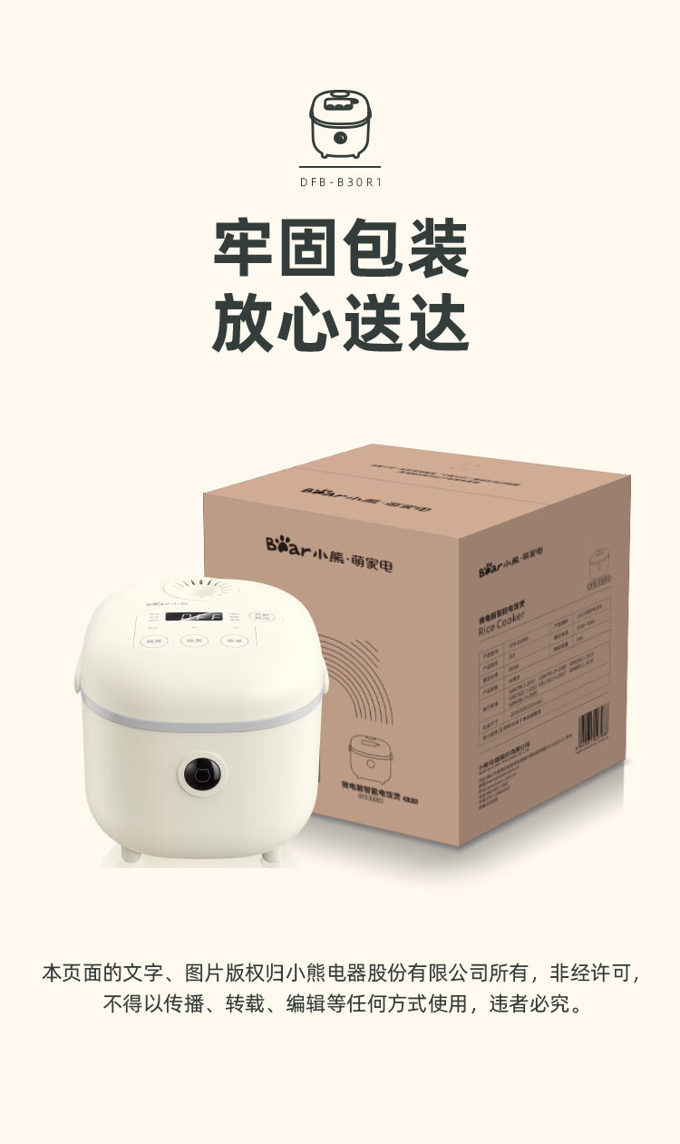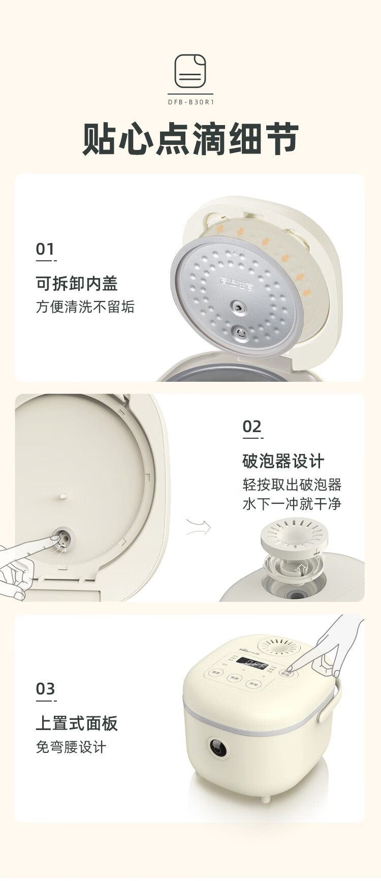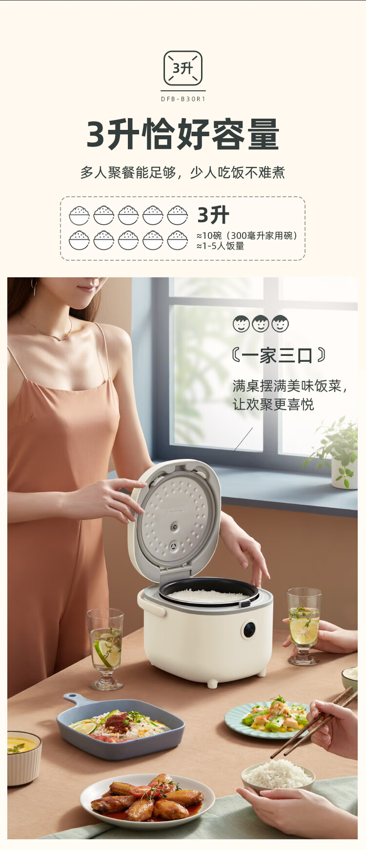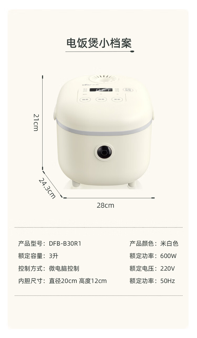 小熊(Bear) 3L电饭煲智能预约多功能 DFB-B30R1(单位:台) 米白色