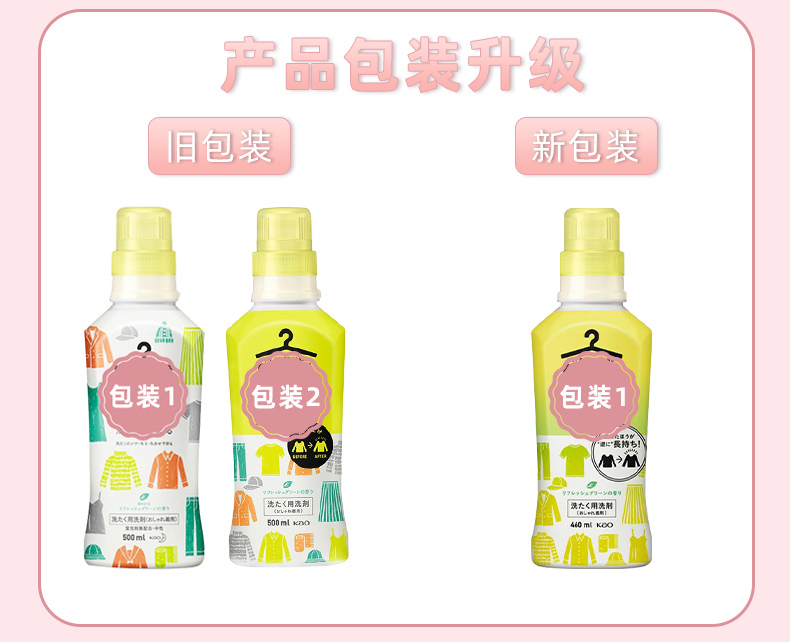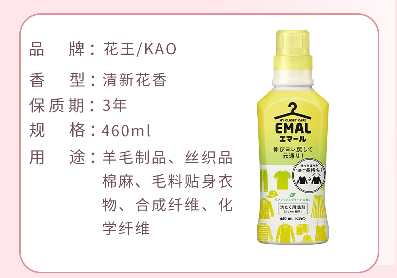花王(KAO)进口中性防缩护色洗衣液清新花香 460ml(单位:瓶) 460ml