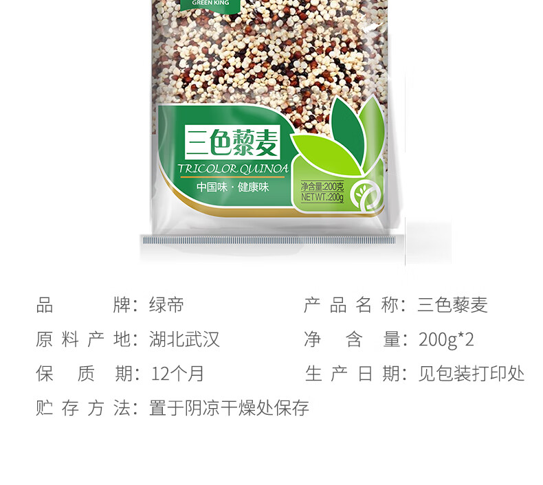 绿帝三色藜麦米 200g*2袋 自然色