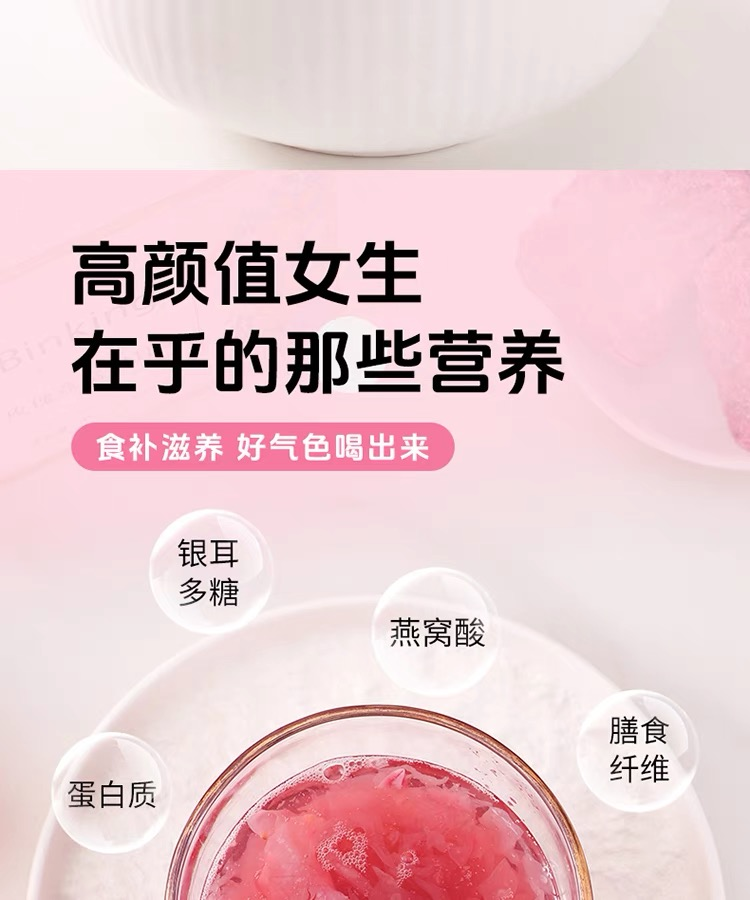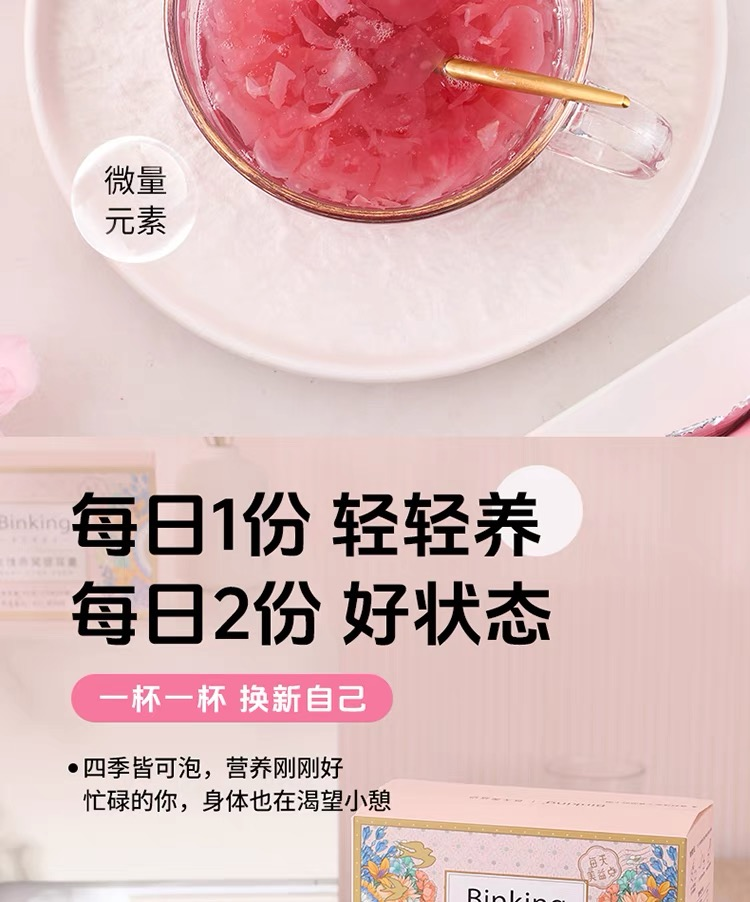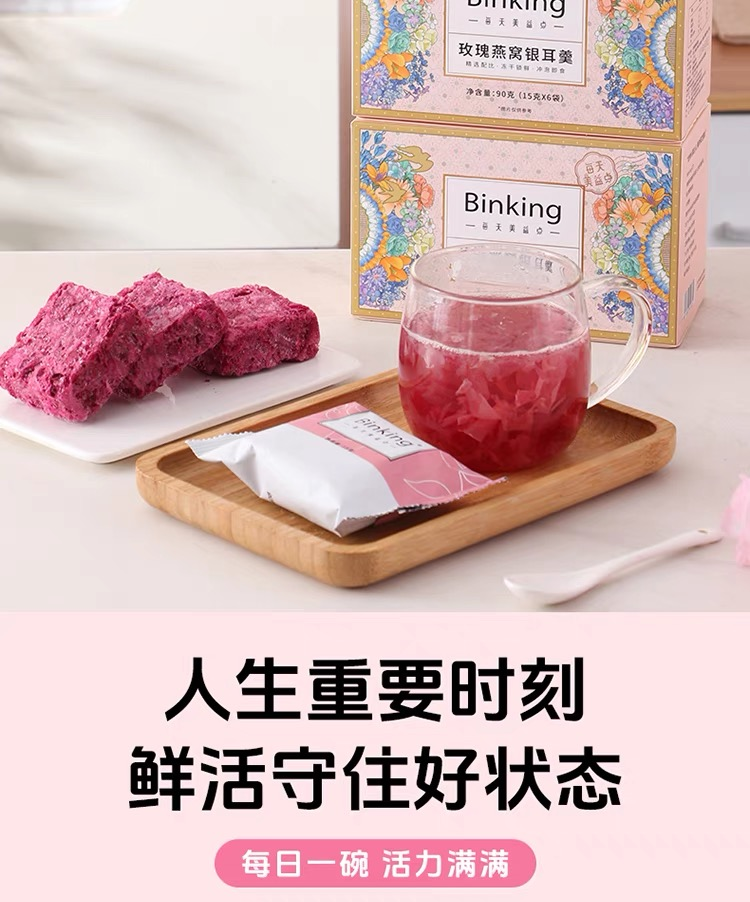 Binking 含玻璃杯子1个 15g/袋*6袋/盒*2盒 玫瑰燕窝银耳羹 豆沙色(单位:组)