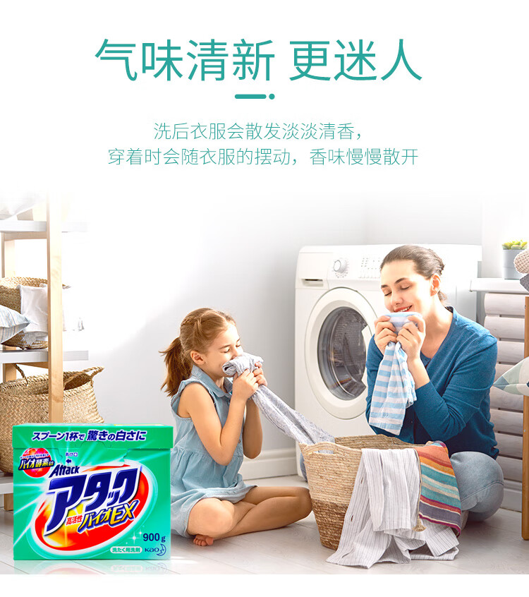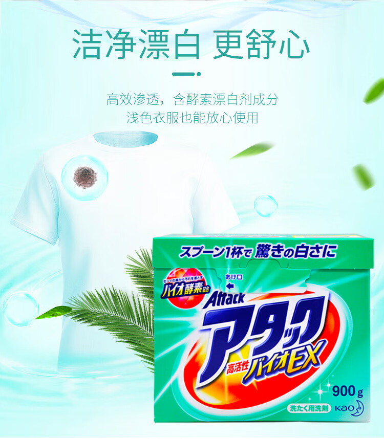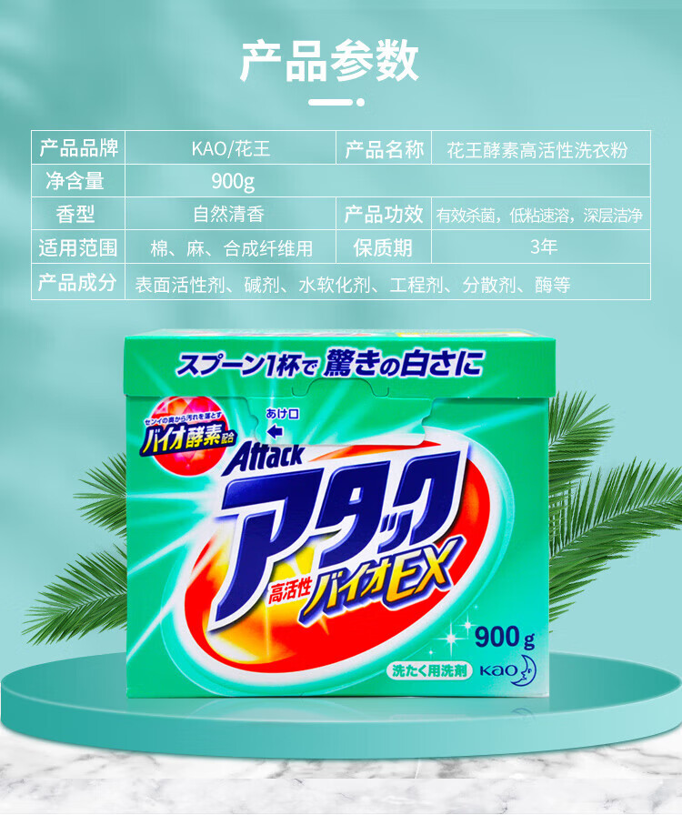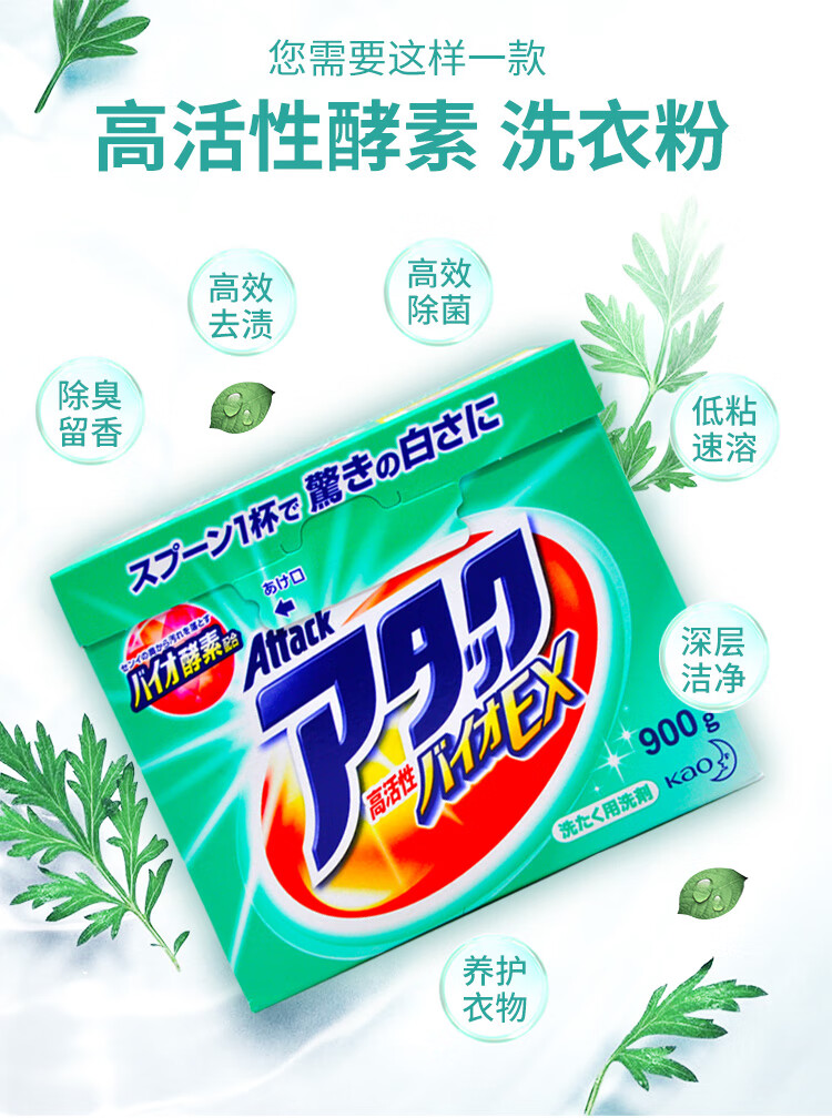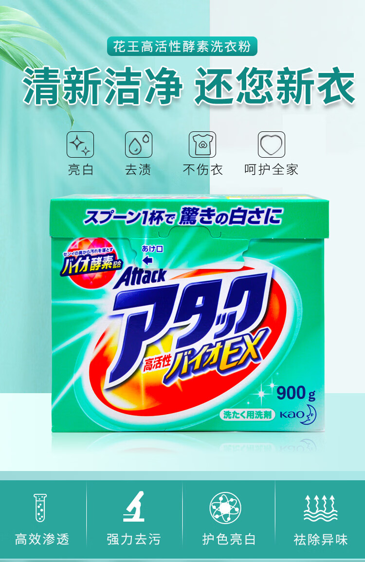 花王(KAO) 酵素强力去污渍 900g 洗衣粉 蓝绿色(单位:盒)