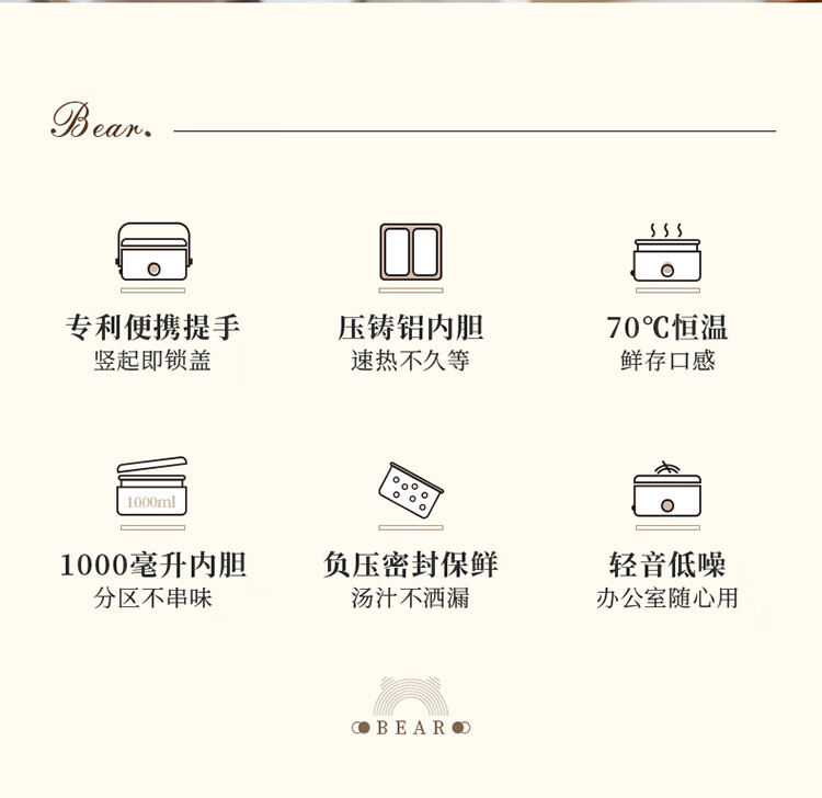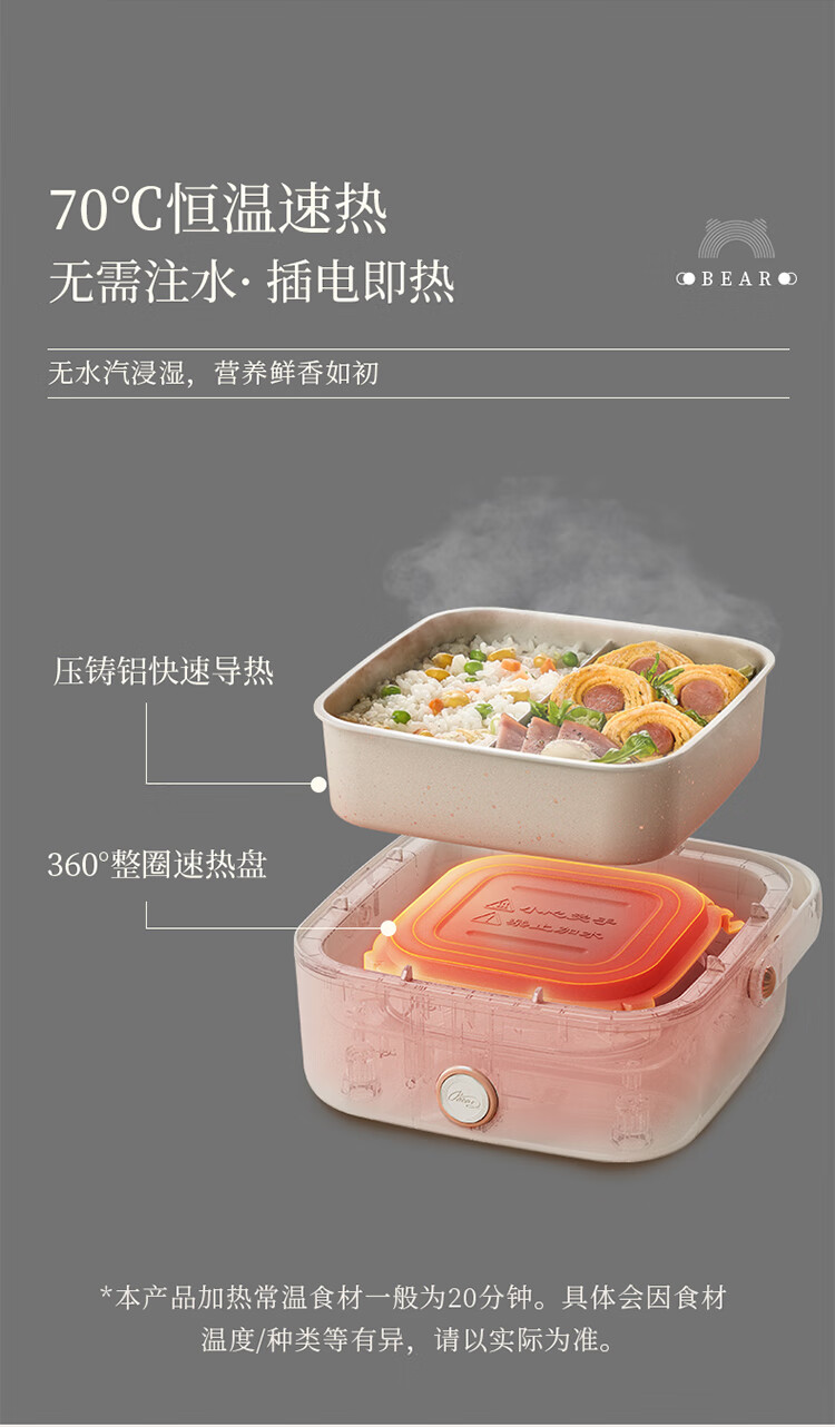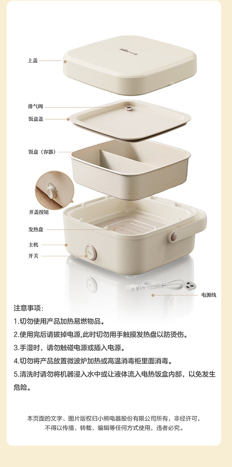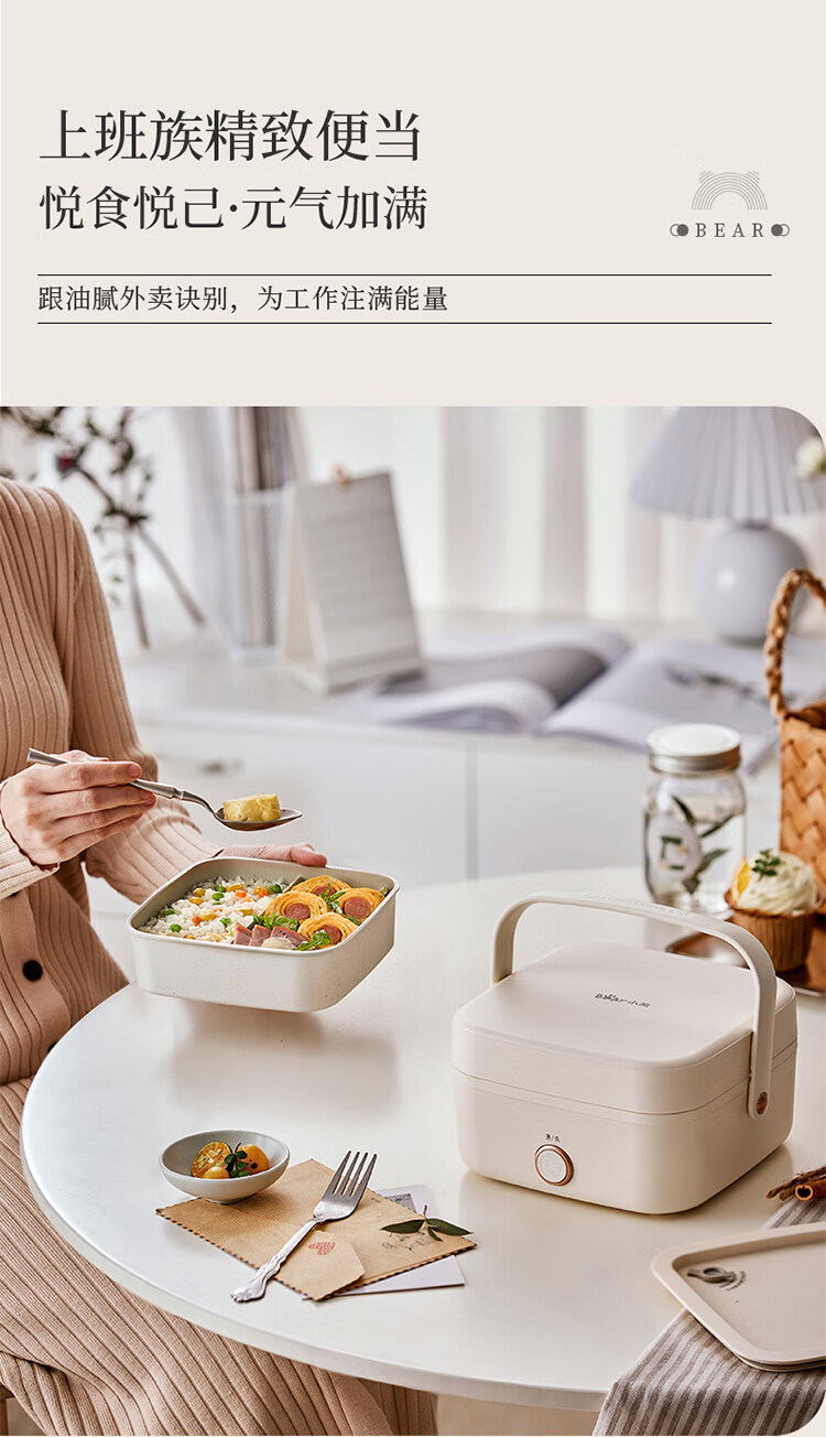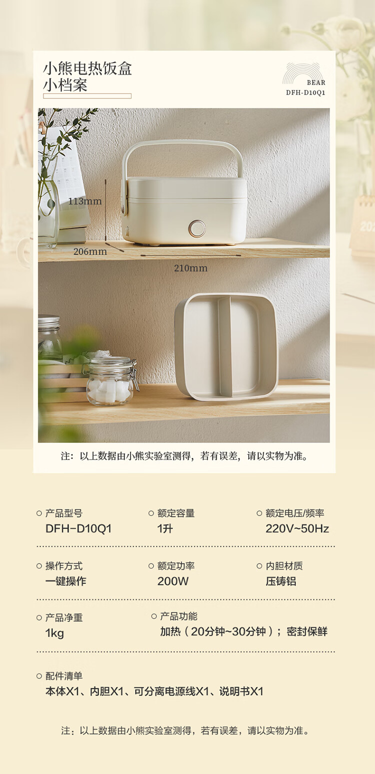 小熊(Bear) DFH-D10Q1 1L 电热饭盒免注水 白色(单位:台)