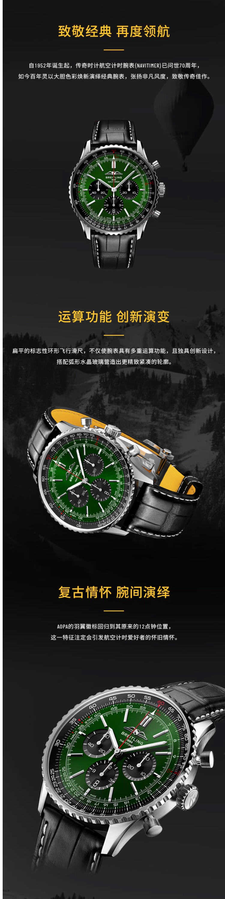 百年灵(BREITLING)航空计时系列46机械男表 AB0137241L1P1(单位:块) 绿色