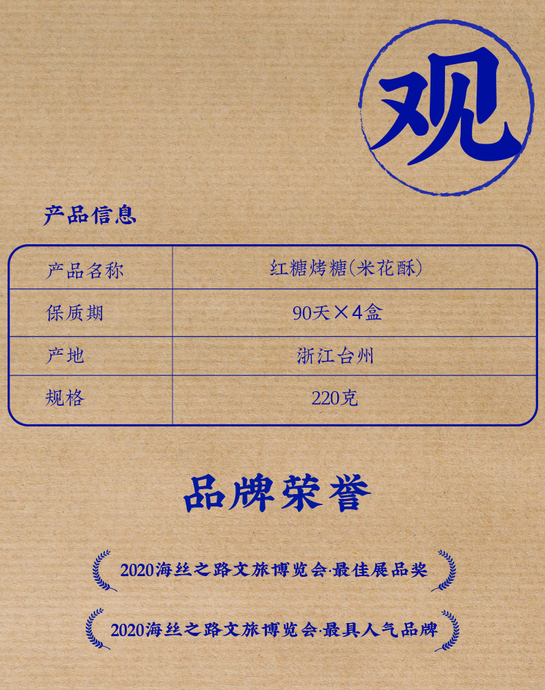 三关六码头红糖烤糖220g*4盒(单位:盒)