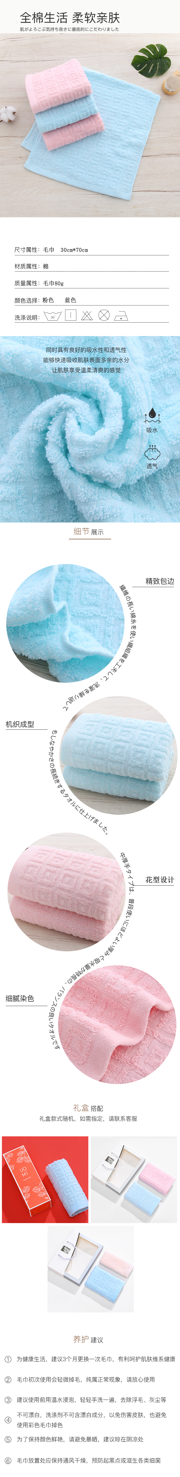 UOMI 优仕-2 纯棉毛巾双条装礼盒 蓝色 粉色 黄色(单位:套) 随机