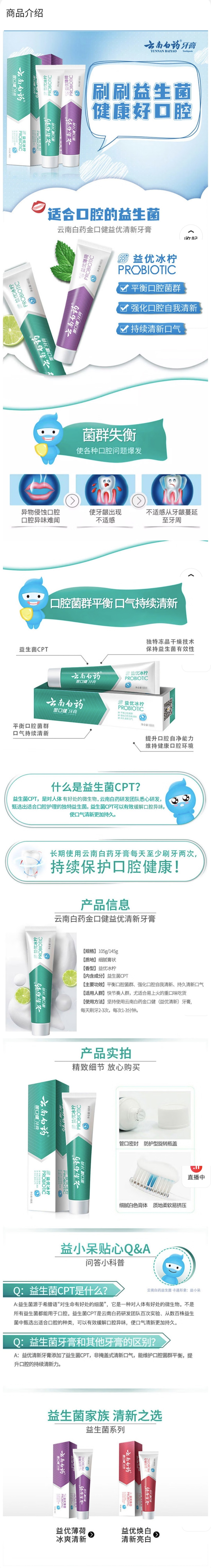 云南白药金口健牙膏益优清新冰柠薄荷105g*3 (单位: 组) 水蓝色