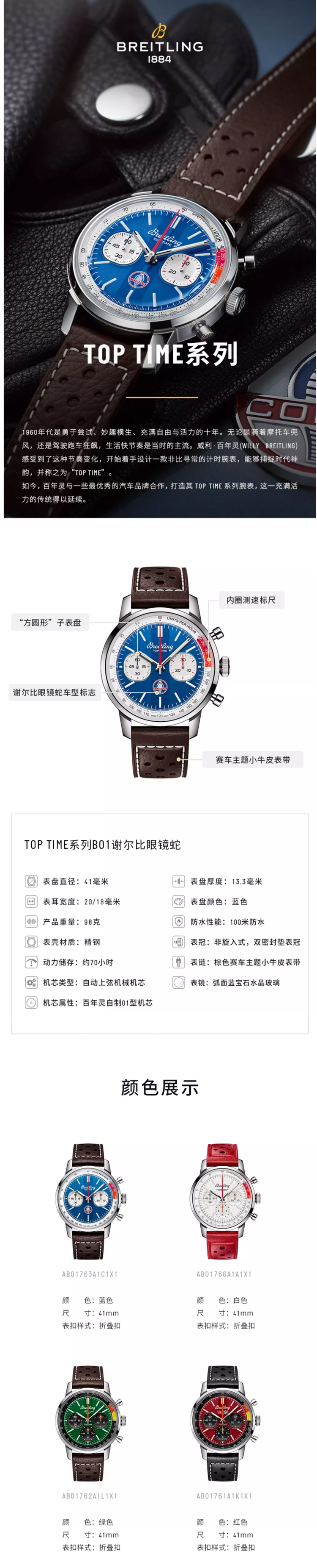 百年灵(BREITLING)TOP TIME系列福特雷鸟机械41男表 AB01766A1A1X1 块 红色