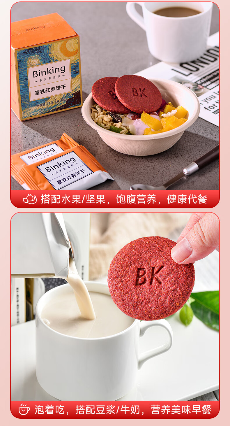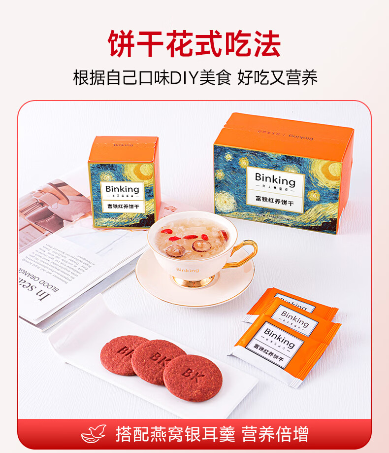 Binking 营养代餐 9克/枚*8枚/盒*5盒 富铁红养饼干 混色(单位:组)