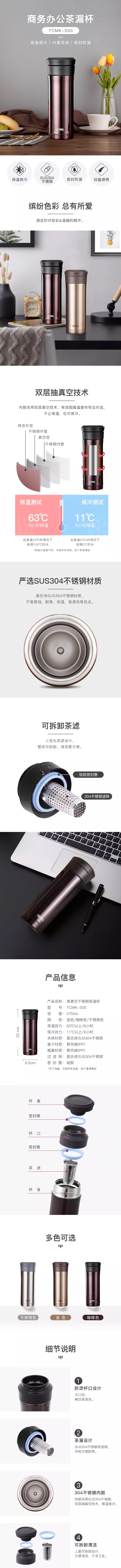 膳魔师高真空不锈钢保温杯TCMK-500SBK(单位:个) 不锈钢色