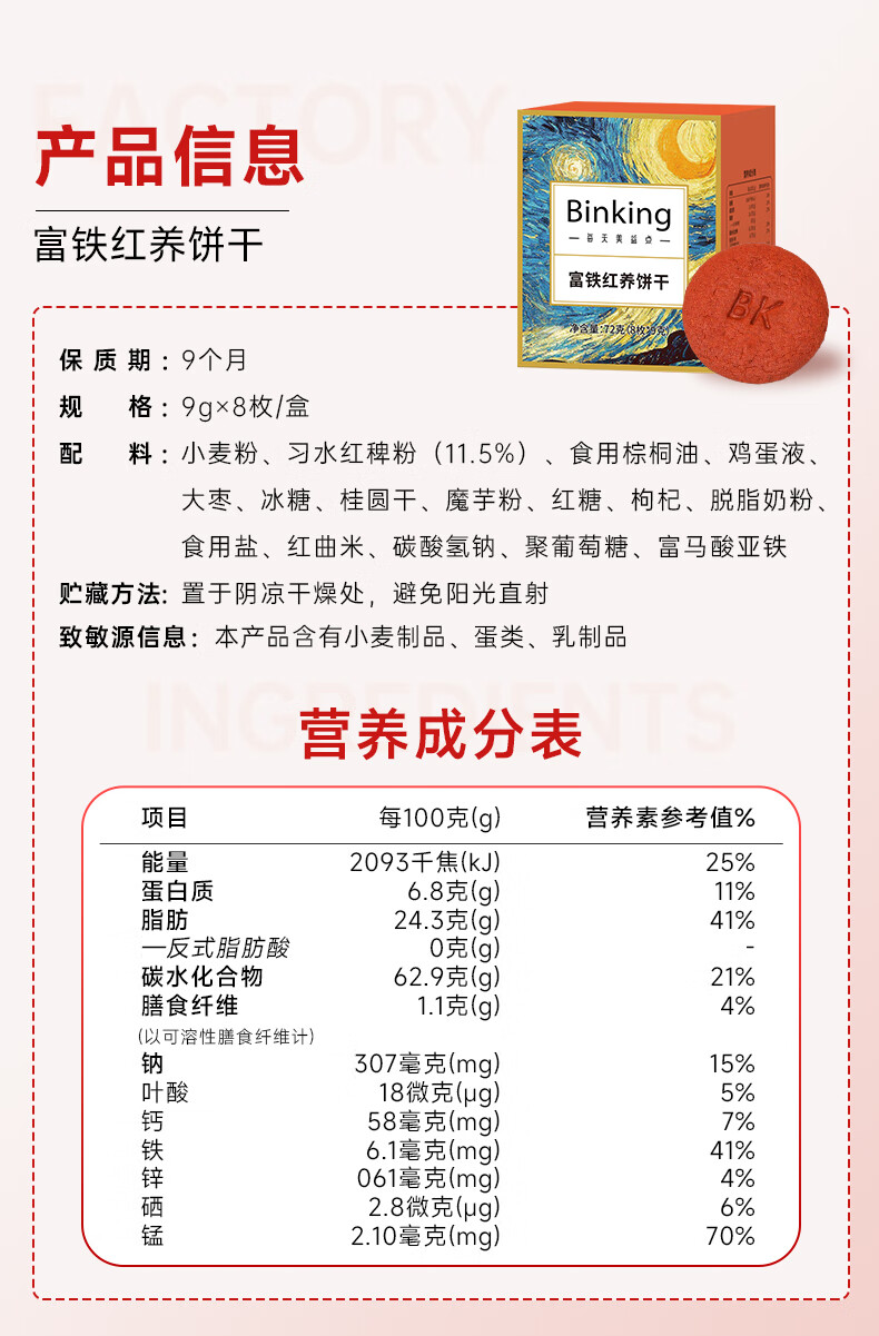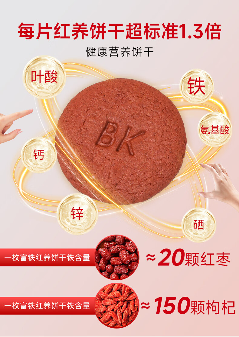 Binking 营养代餐 9克/枚*8枚/盒*1 富铁红养饼干 豆沙色(单位:盒)