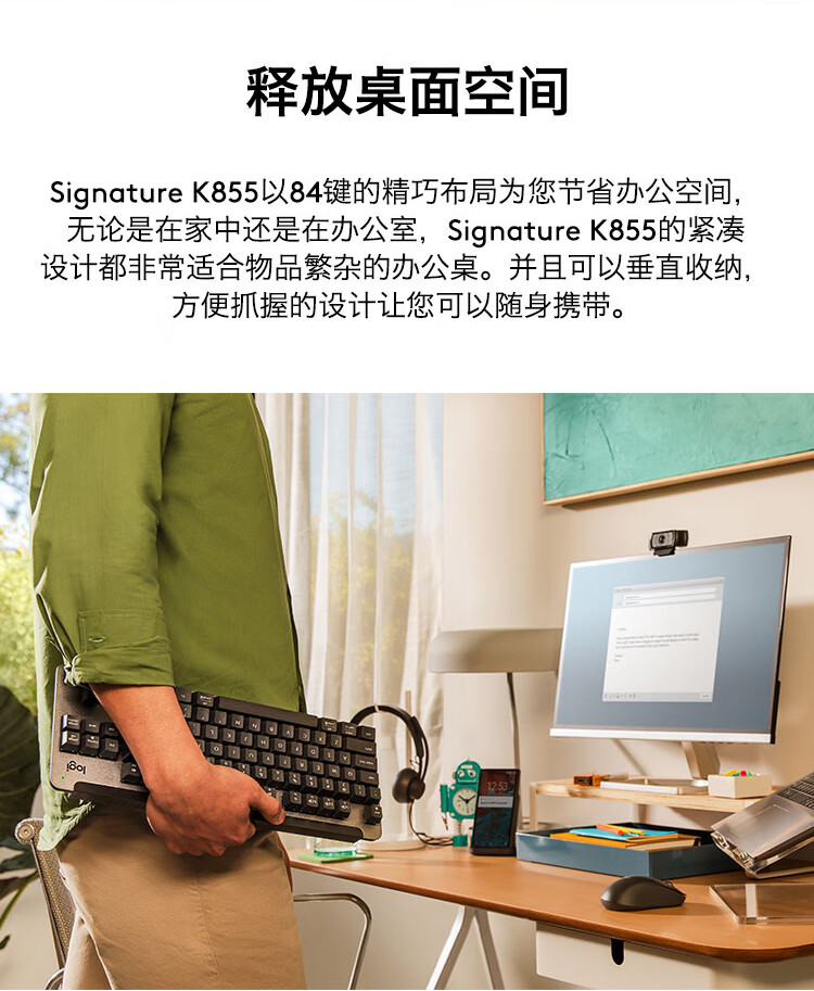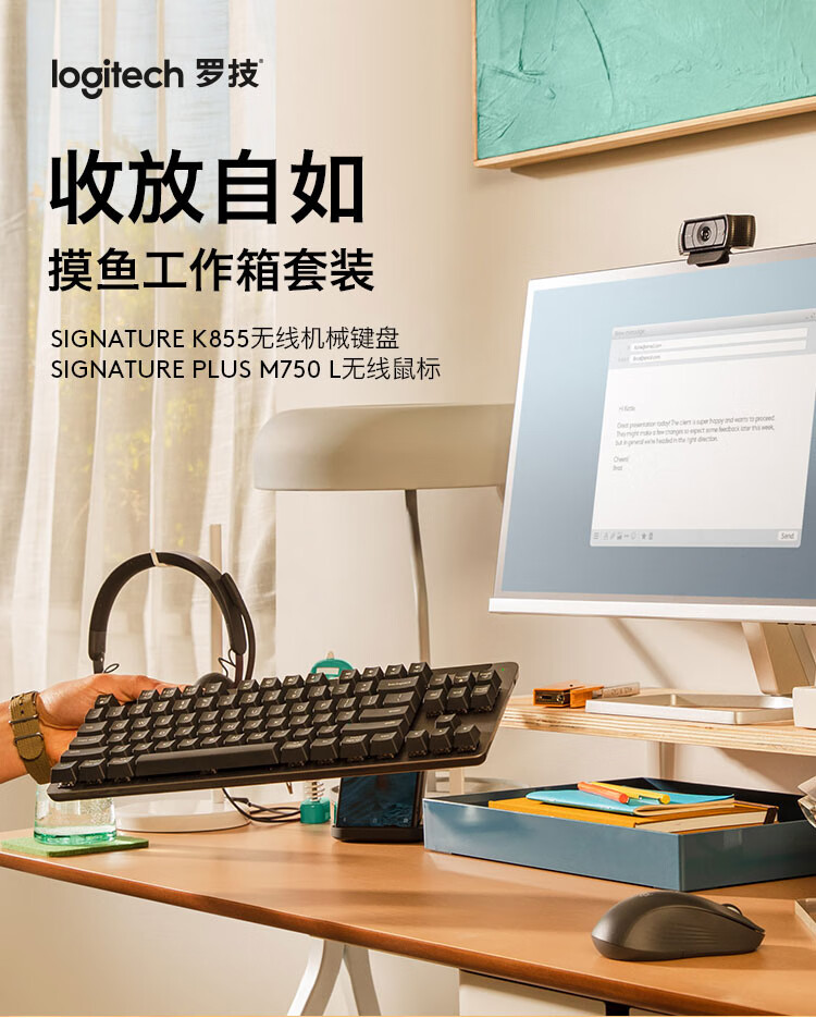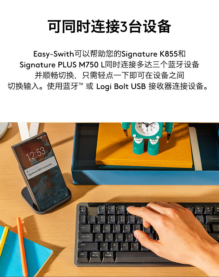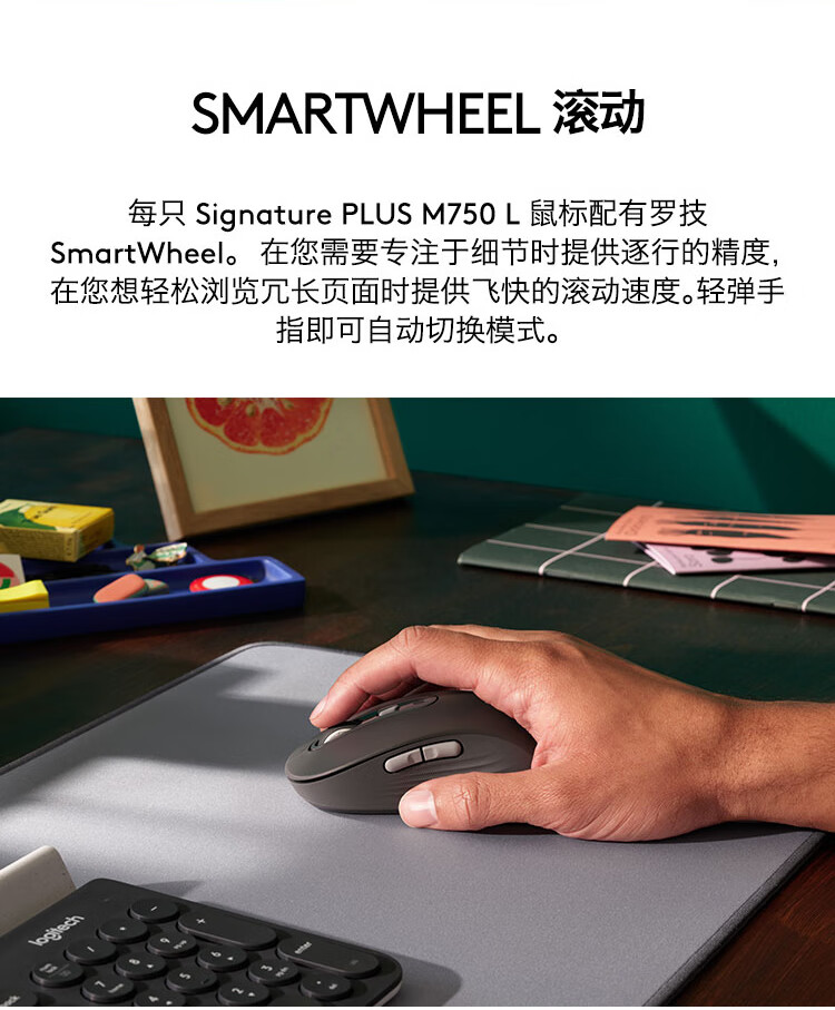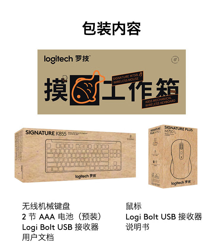 罗技(Logitech)蓝牙无线双模键鼠套装-K855无线机械键盘+M750L无线蓝牙鼠标 黑色
