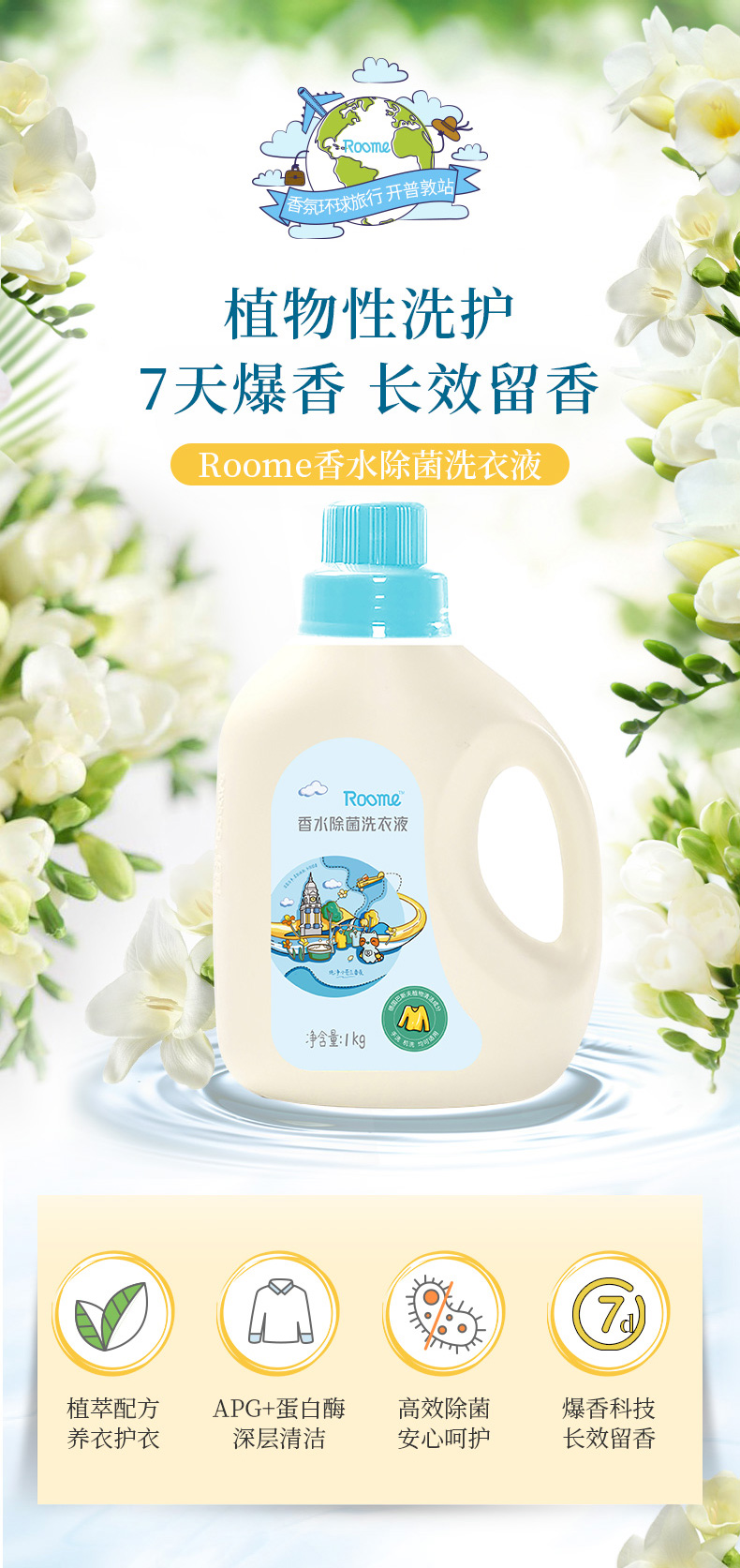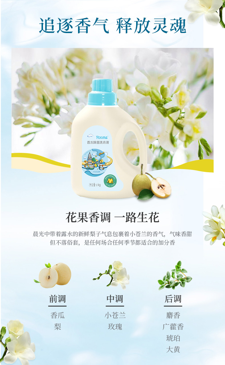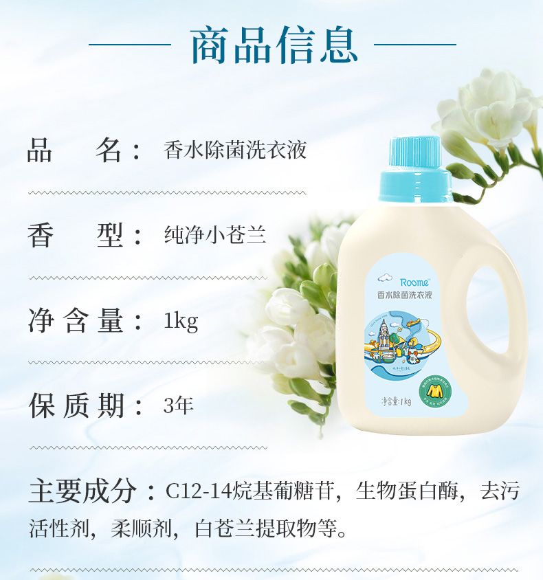 roome 香水除菌洗衣液 1kg/瓶*3瓶 1kg/瓶*3瓶