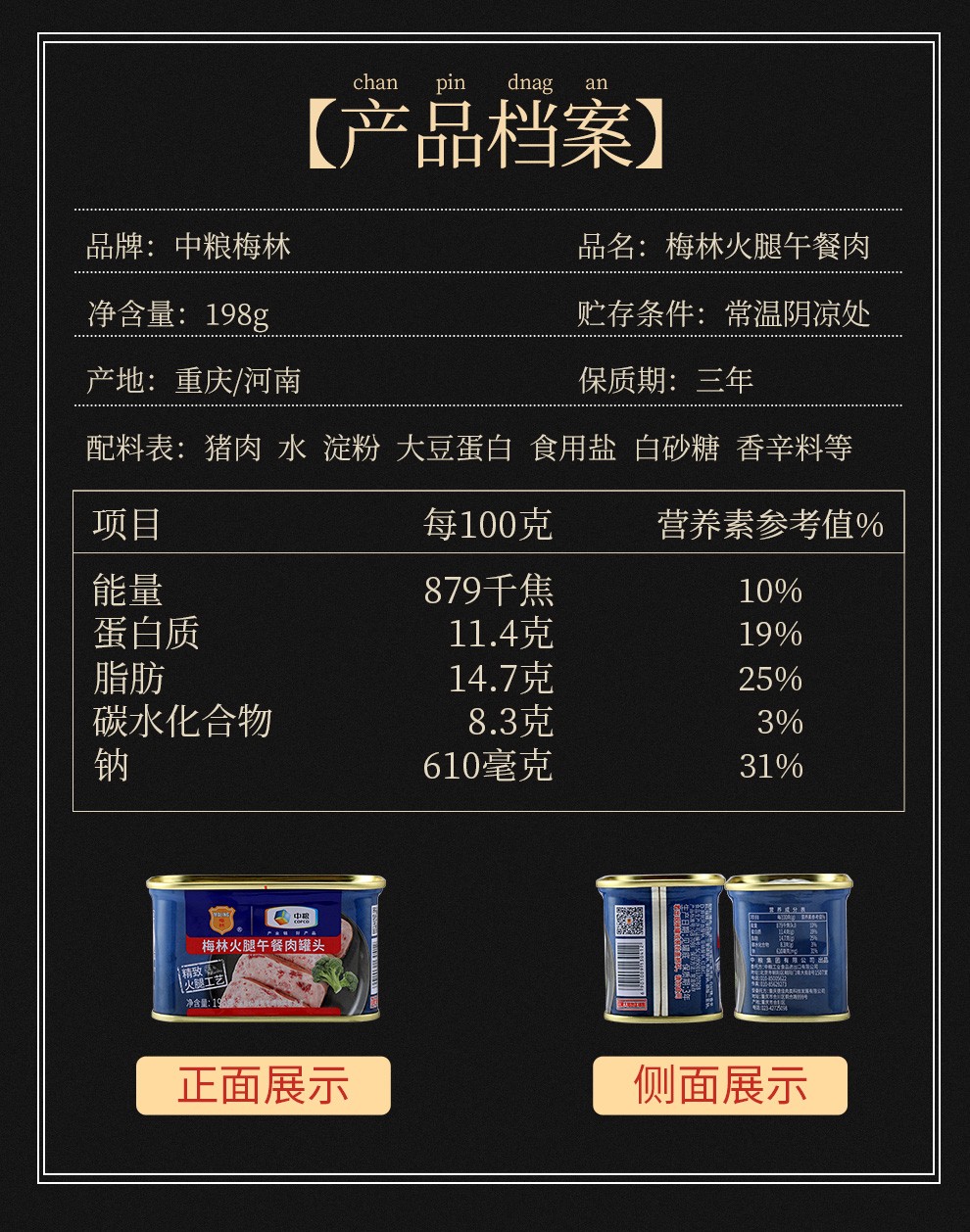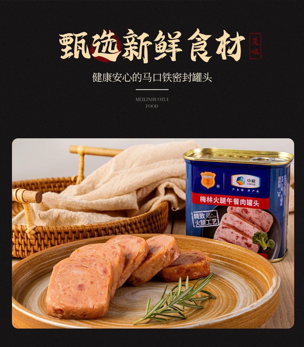 中粮梅林火腿午餐肉罐头198g*3罐 混色