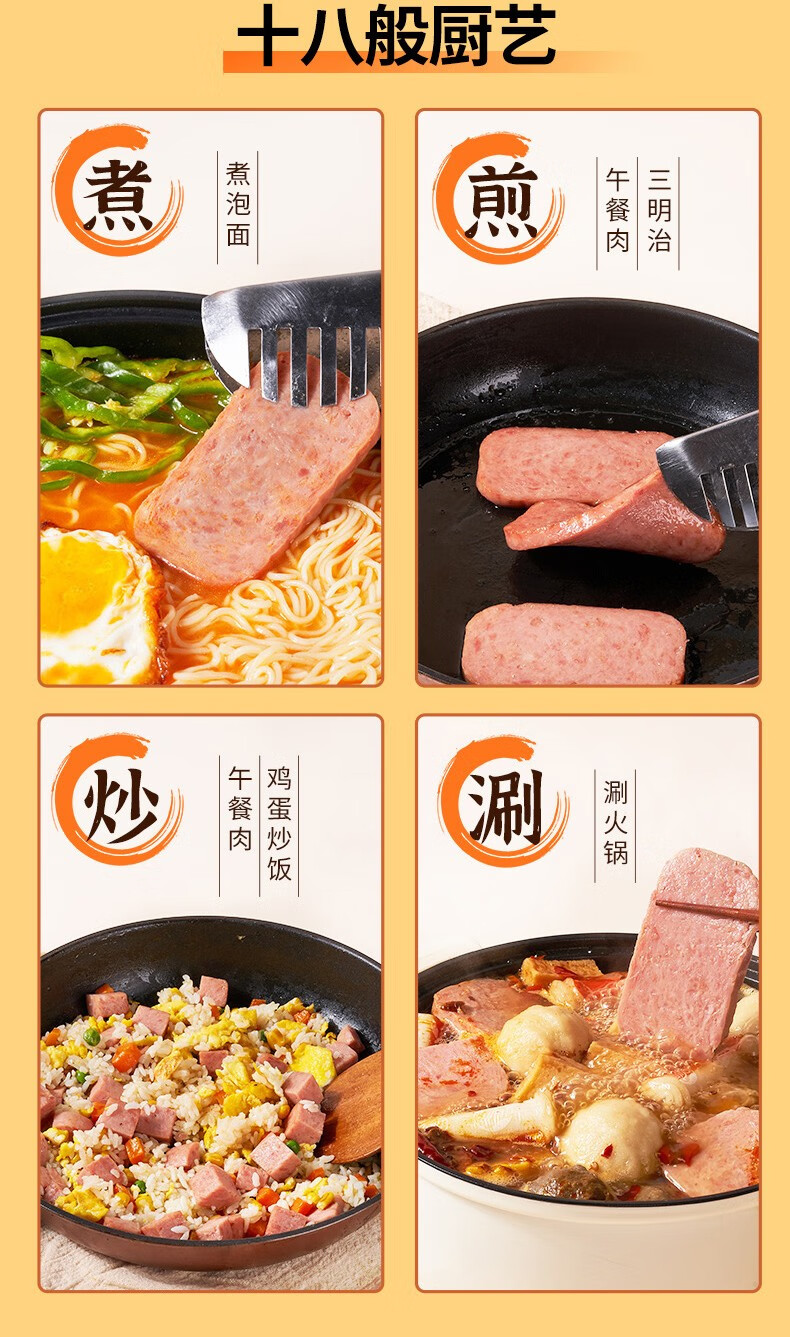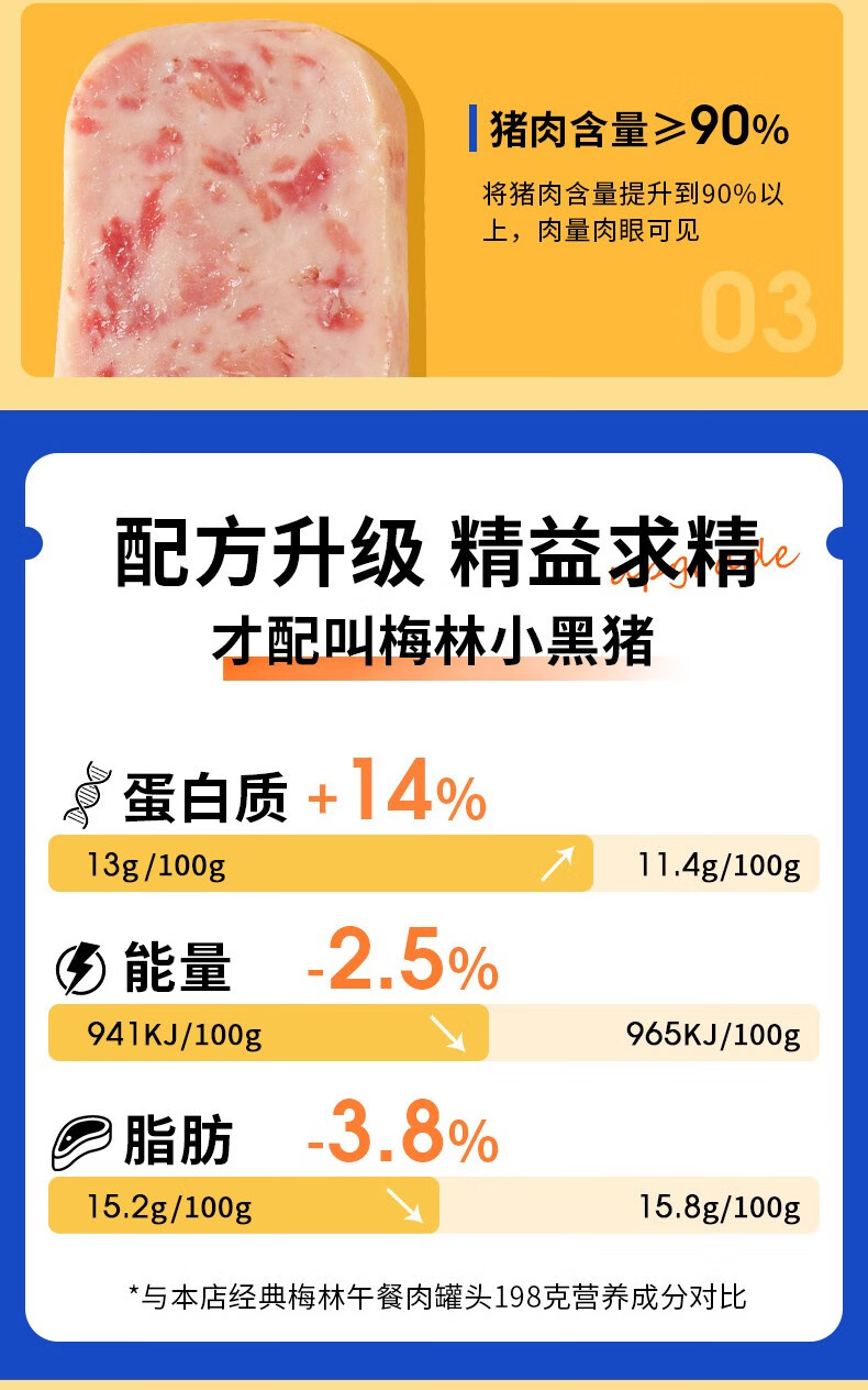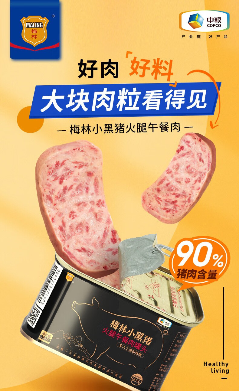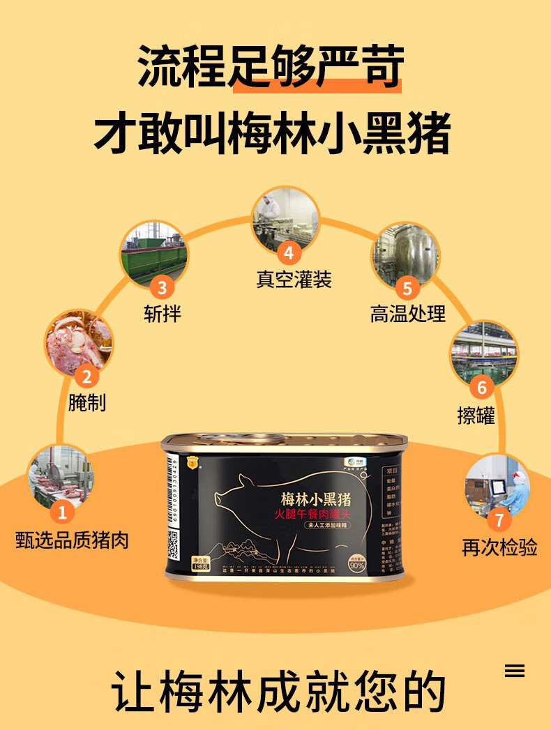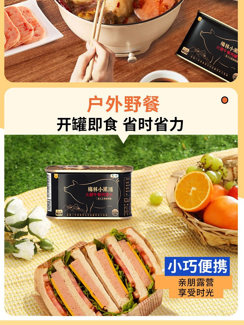 梅林小黑猪火腿午餐肉罐头198g*6罐 混色
