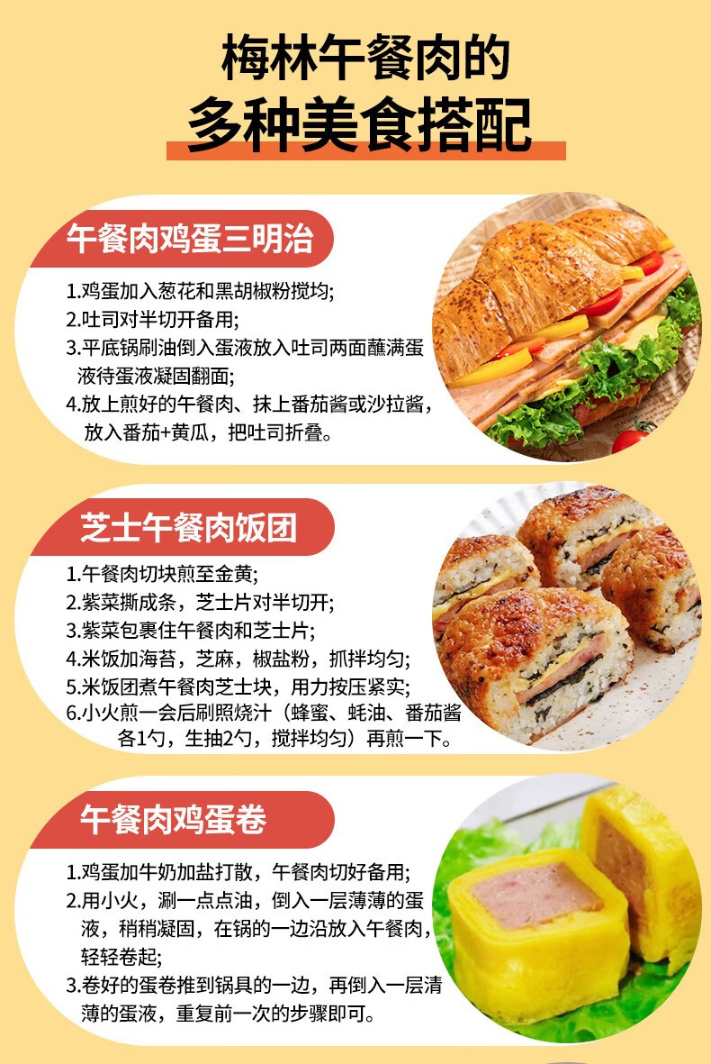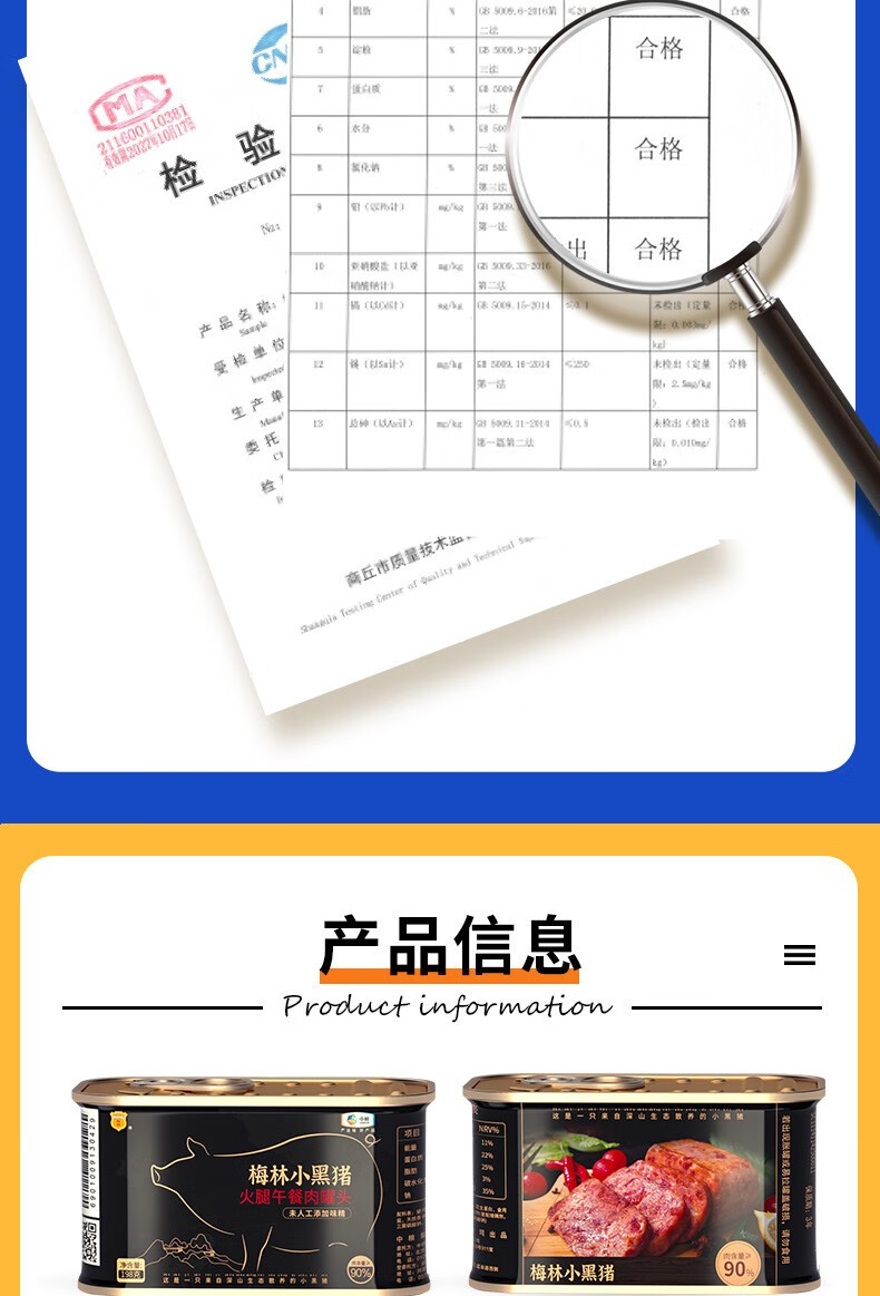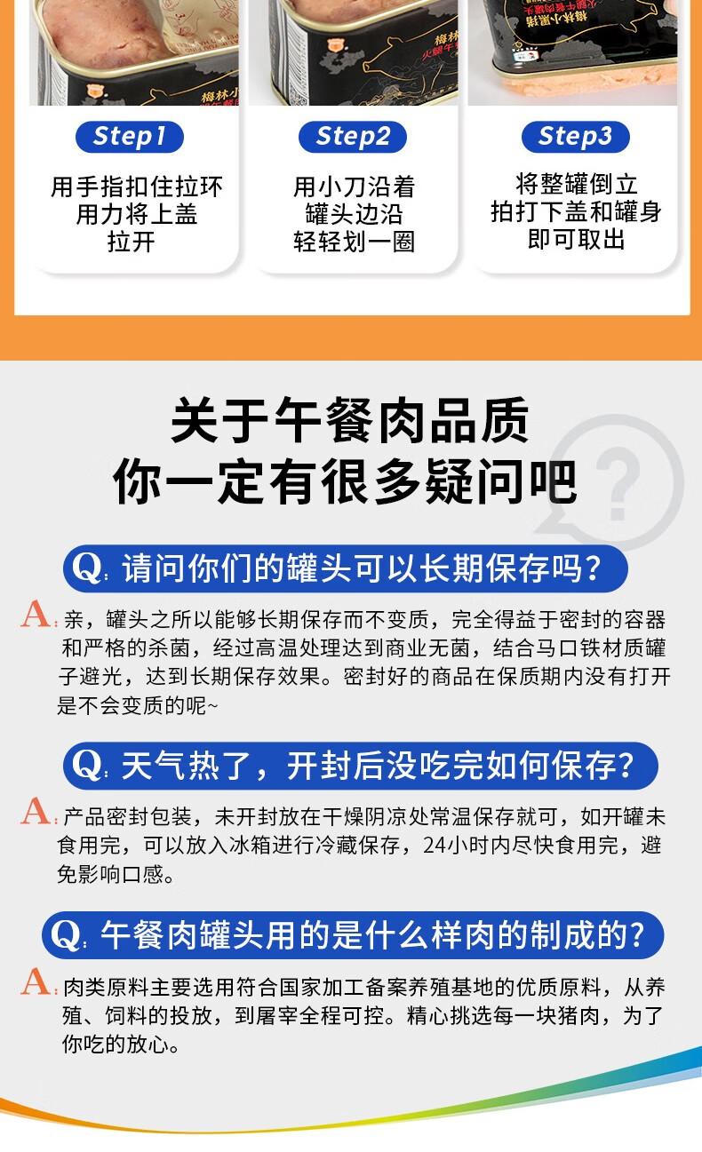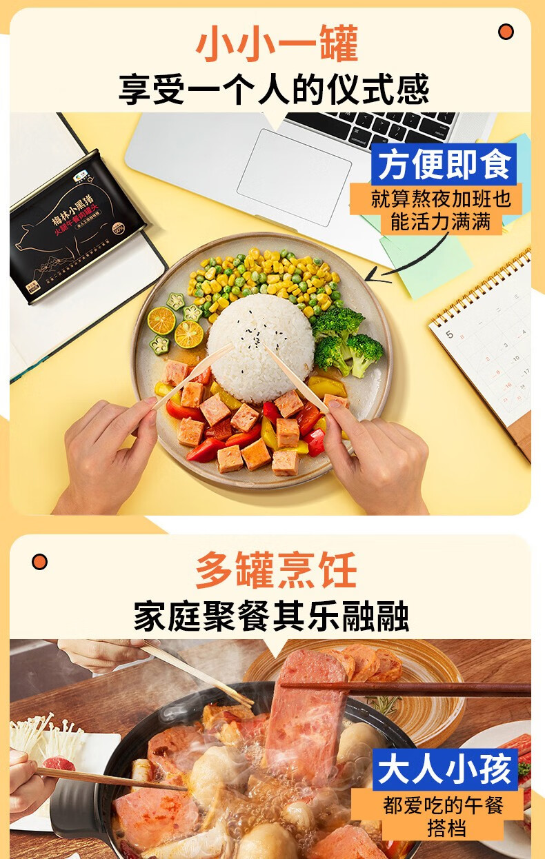 梅林小黑猪火腿午餐肉罐头198g*6罐 混色