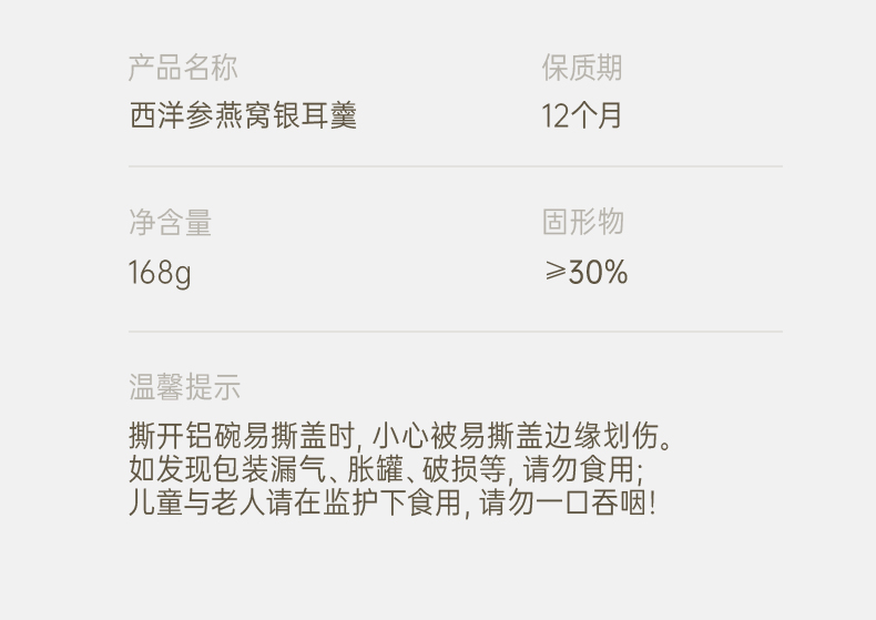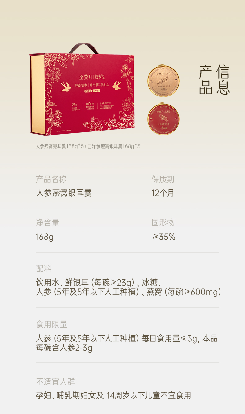 金燕耳 AA040010010 168g*10碗 鲜炖双参燕窝银耳羹 混色(单位:盒)