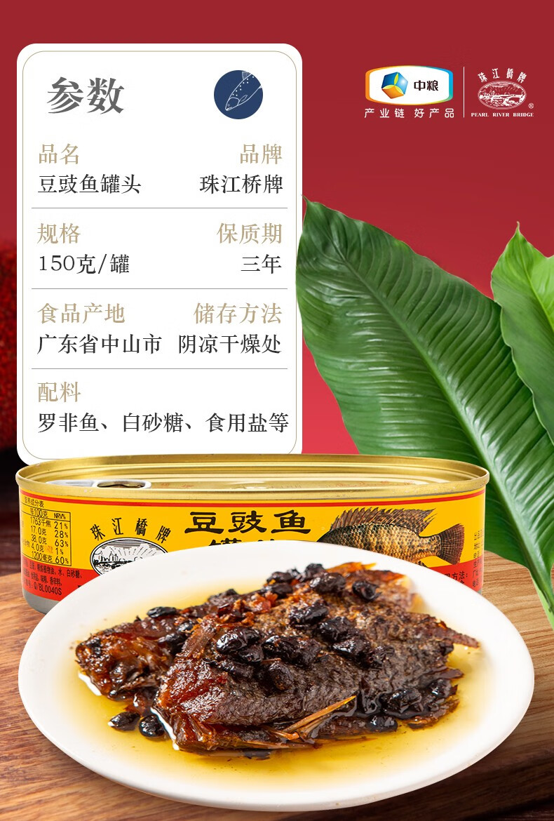 珠江桥牌豆豉鱼(罗非鱼)150g*3罐 混色