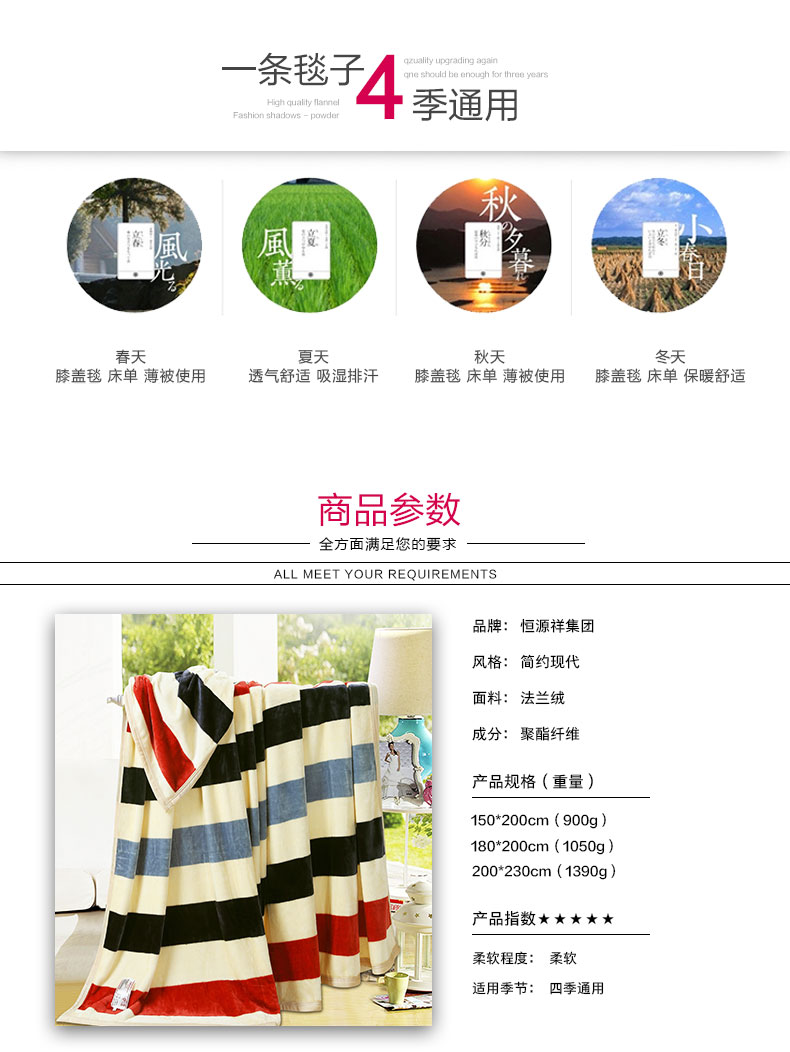 Fazeya/彩羊法莱绒毯 色彩条纹180x200cm(单位:件) 色彩条纹
