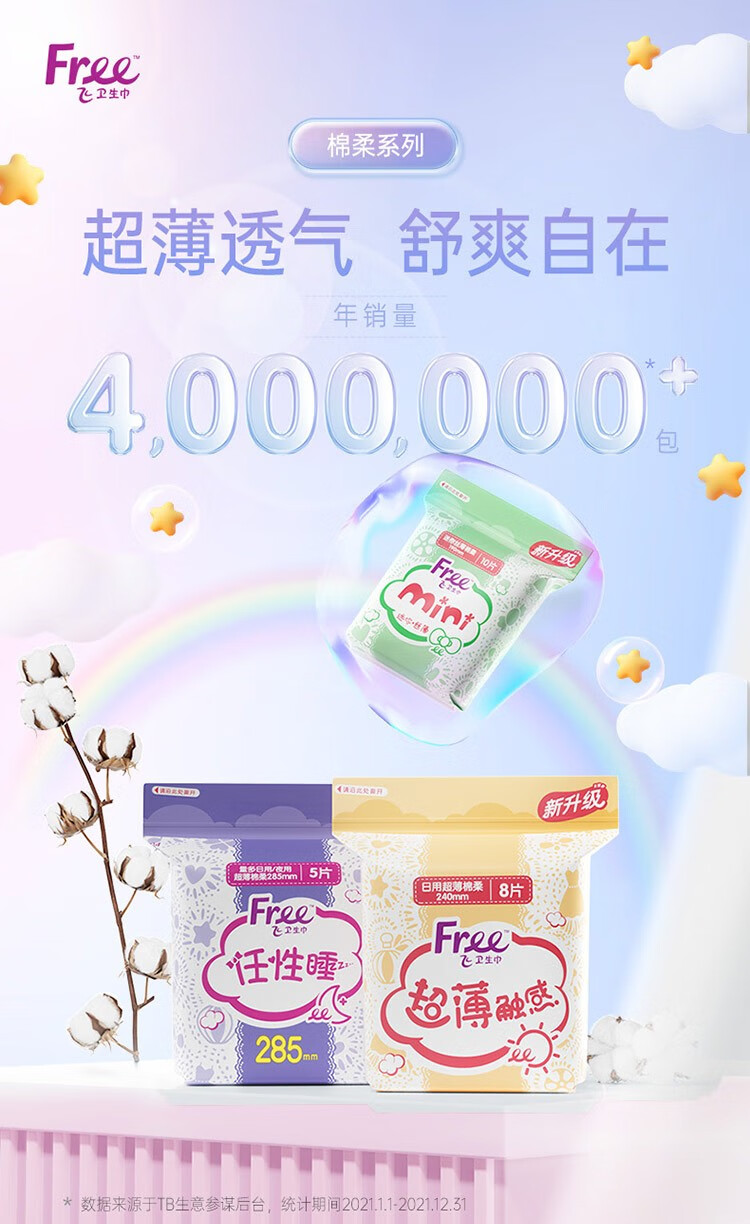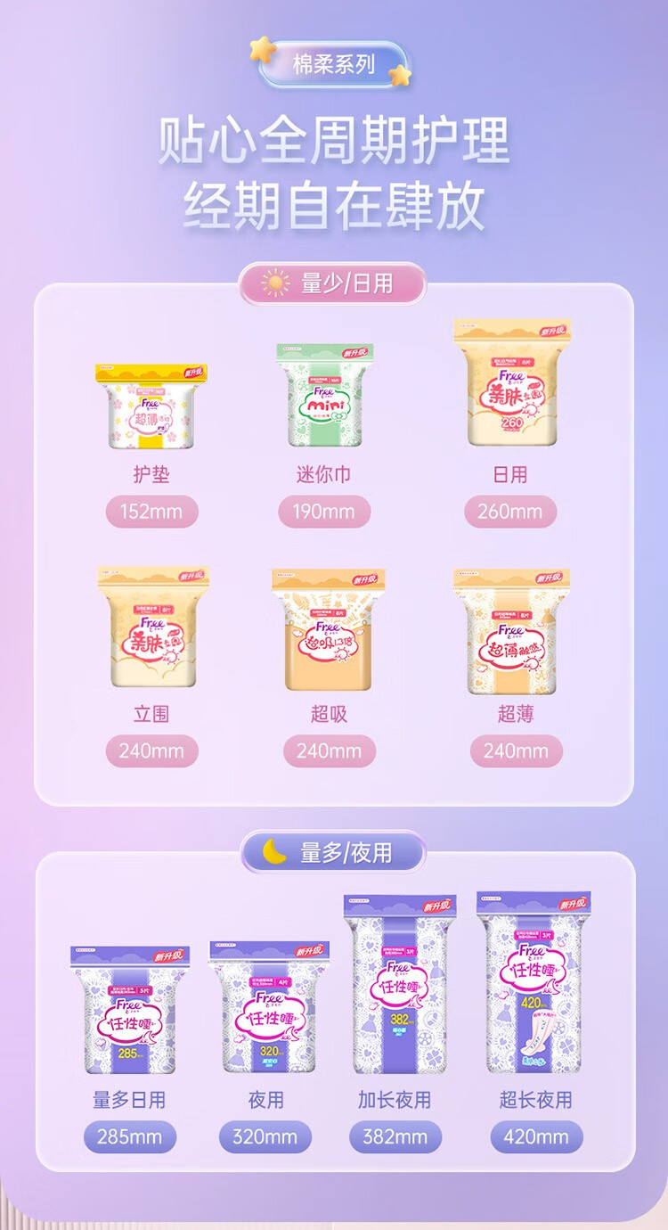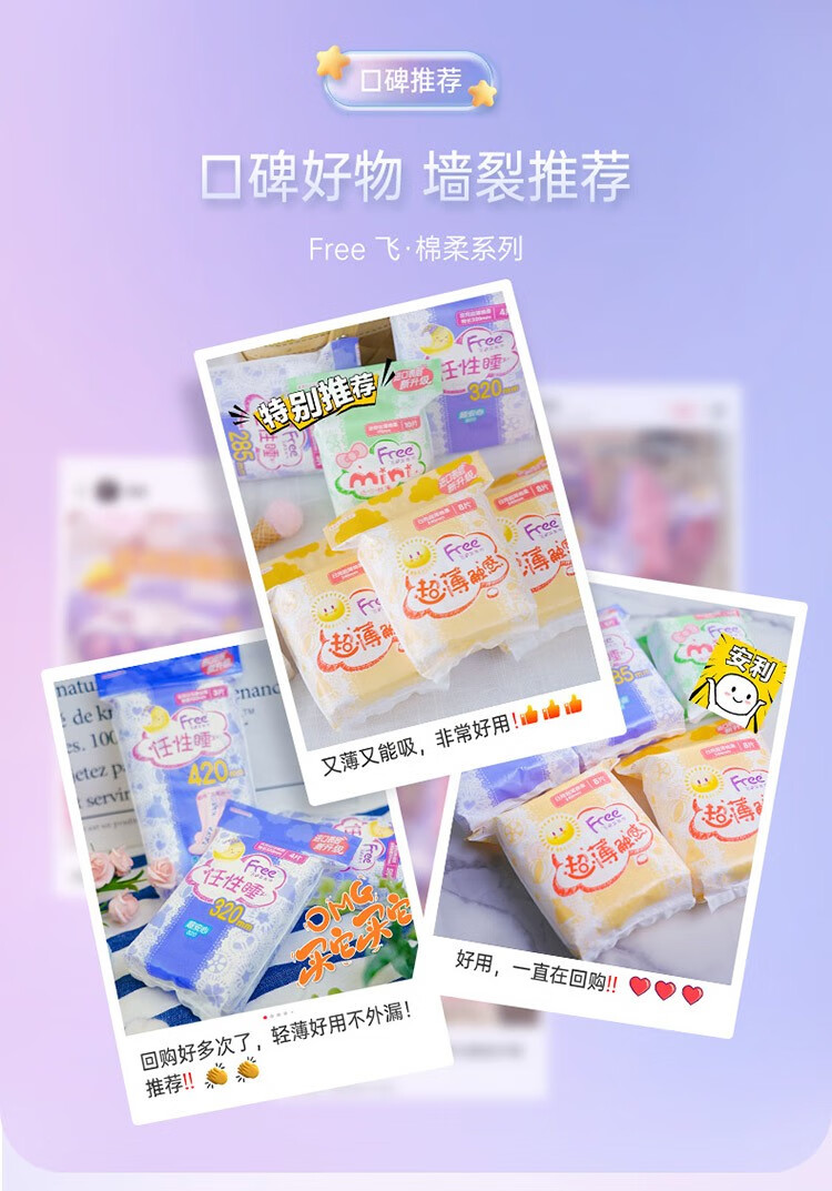 飞(Free)超薄棉柔夜用卫生巾420mm夜用组合装3片*9包(单位:组) 拿铁色