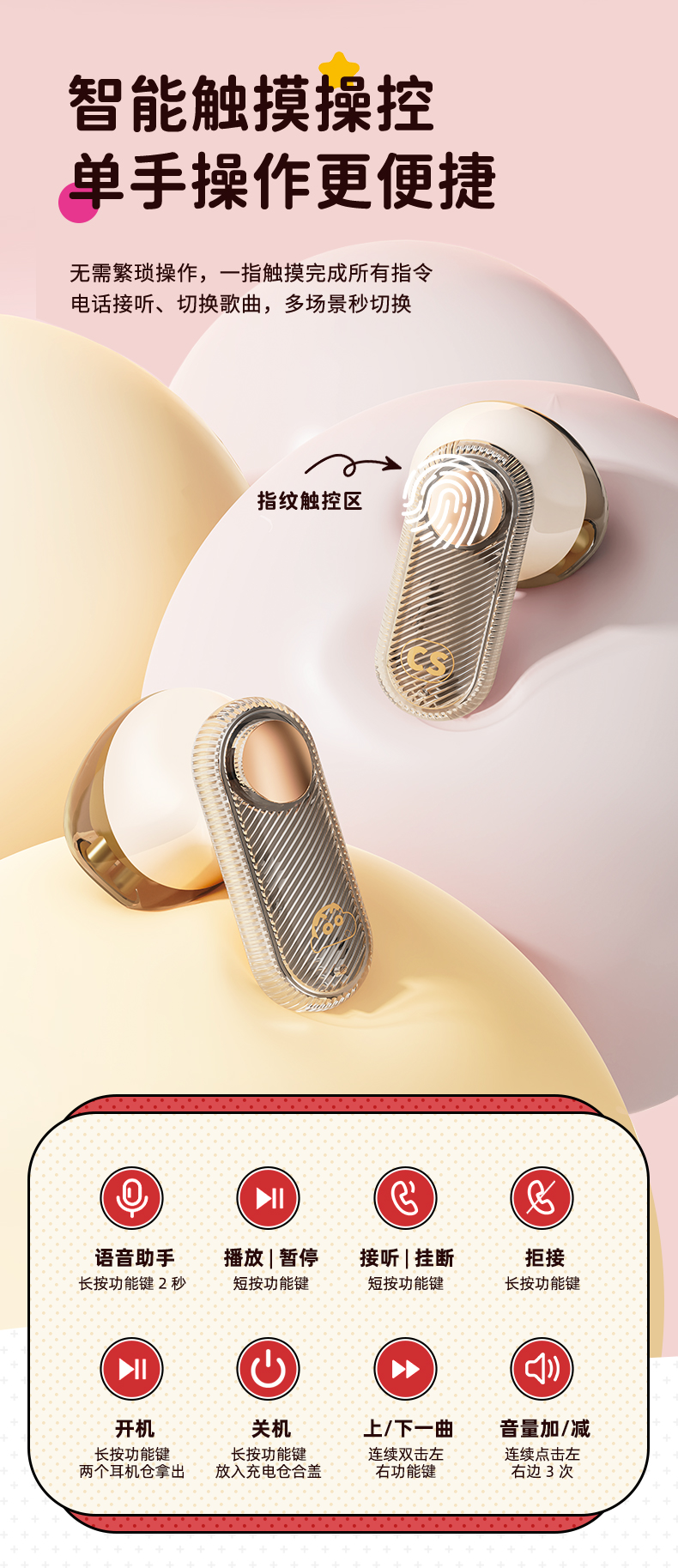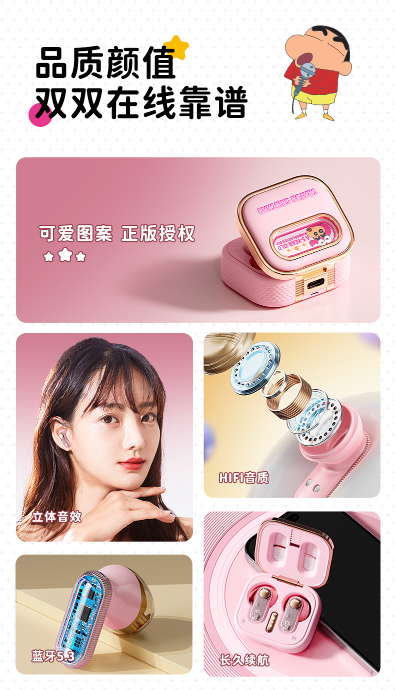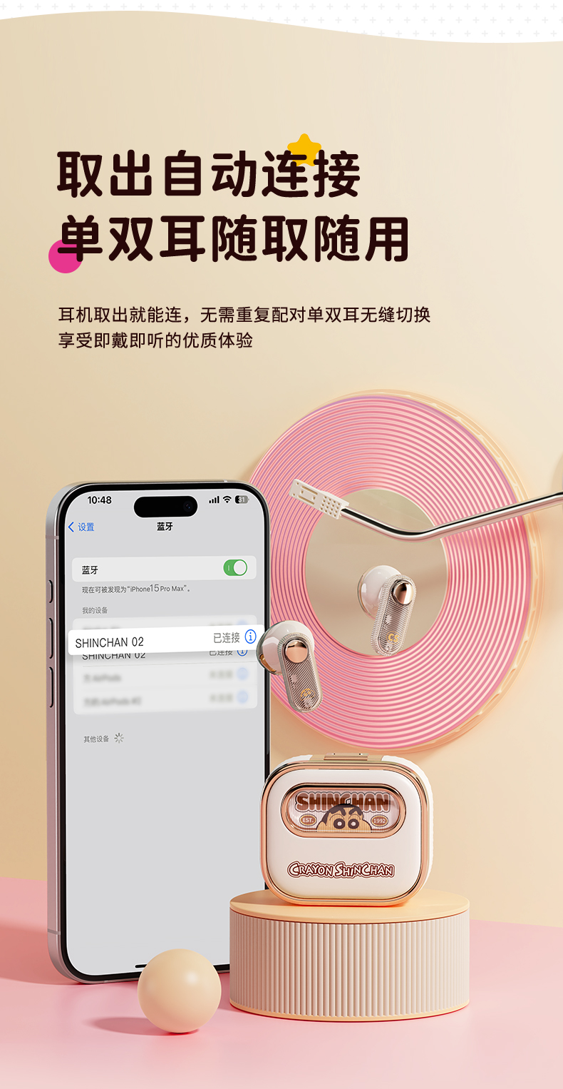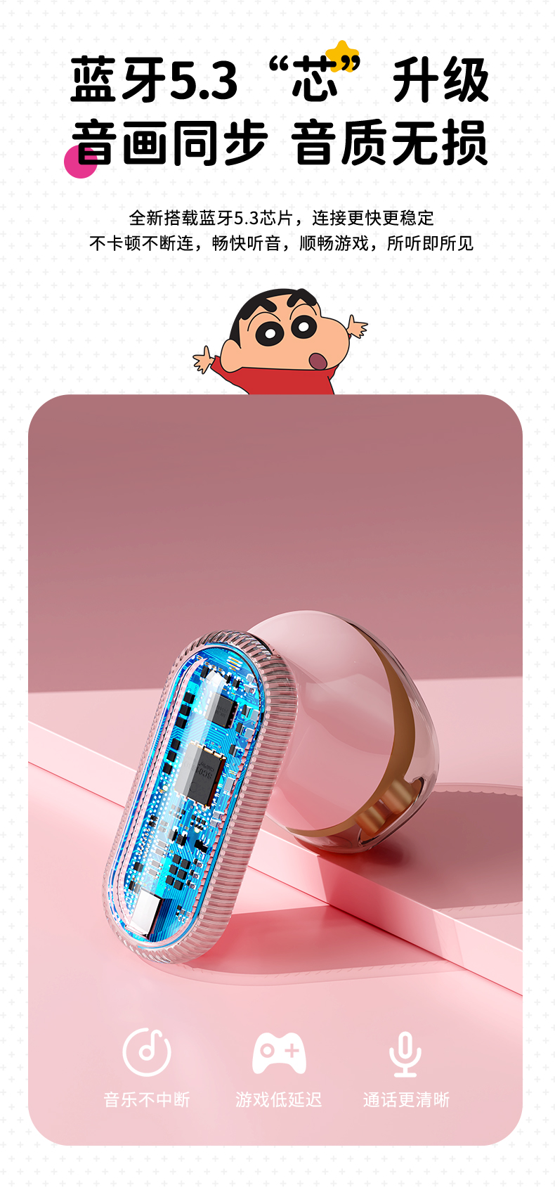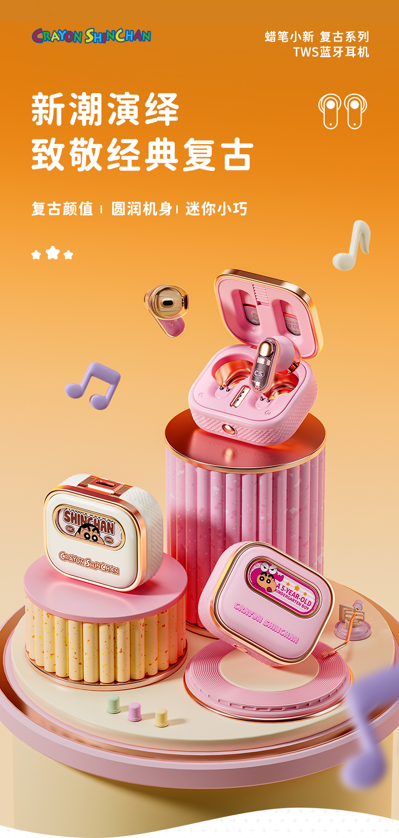 ROCK 蜡笔小新 复古系列 TWS蓝牙耳机 RAU0774(单位:个) 米白色