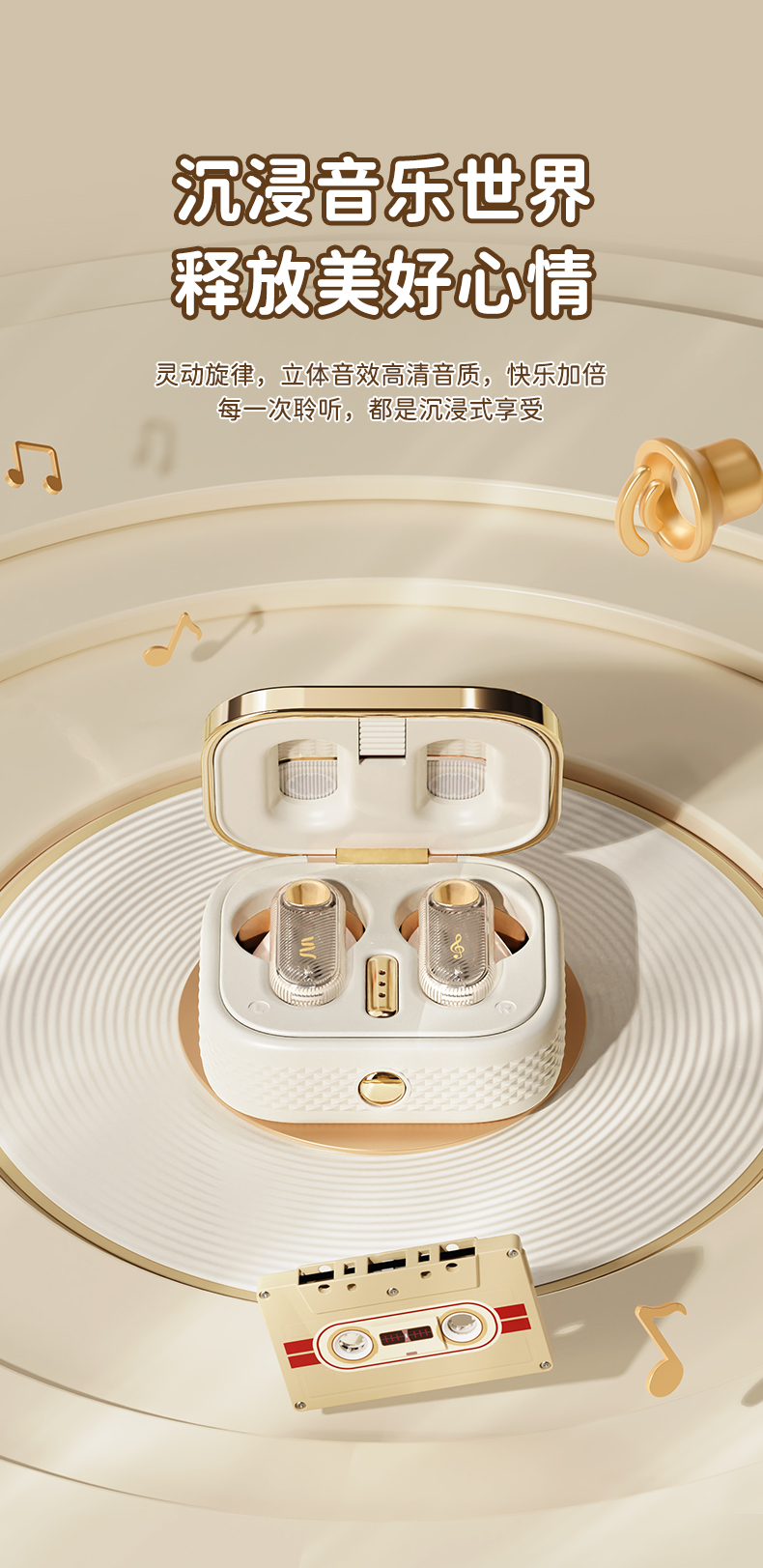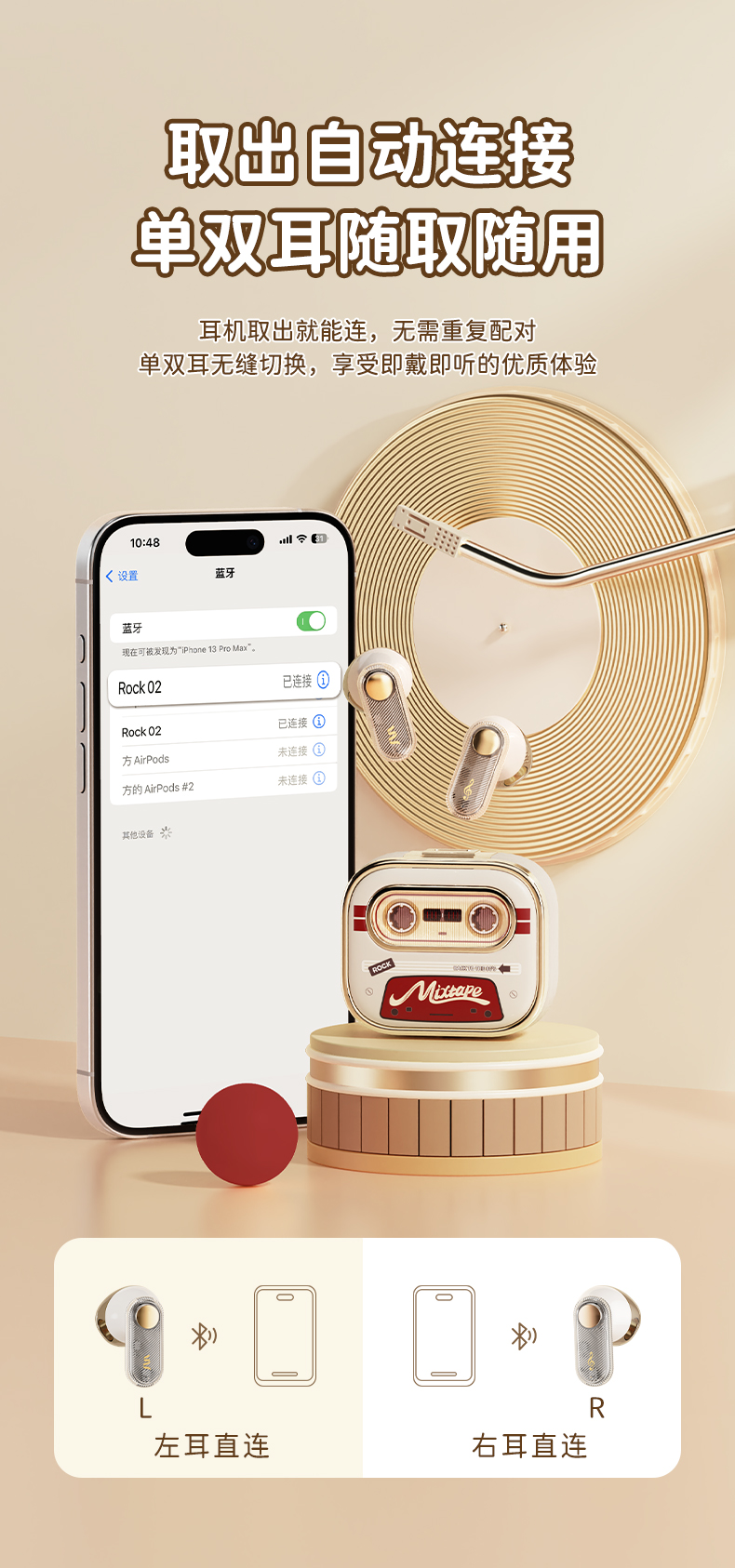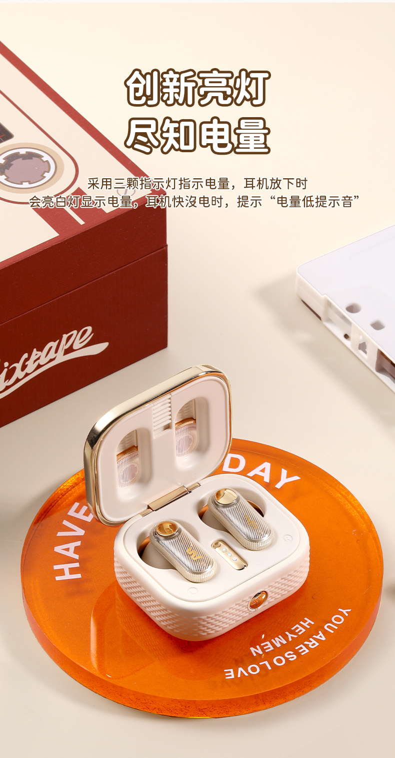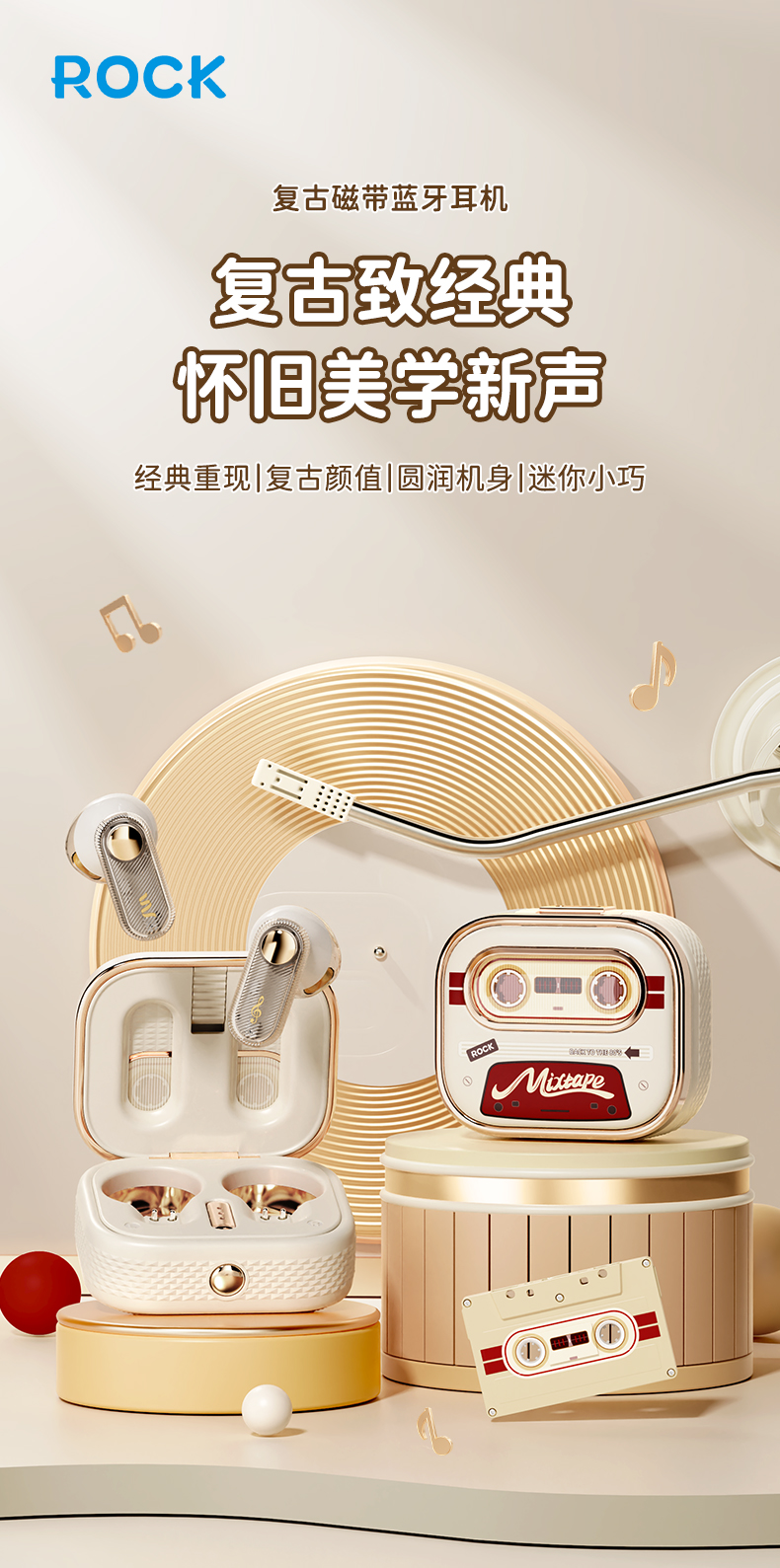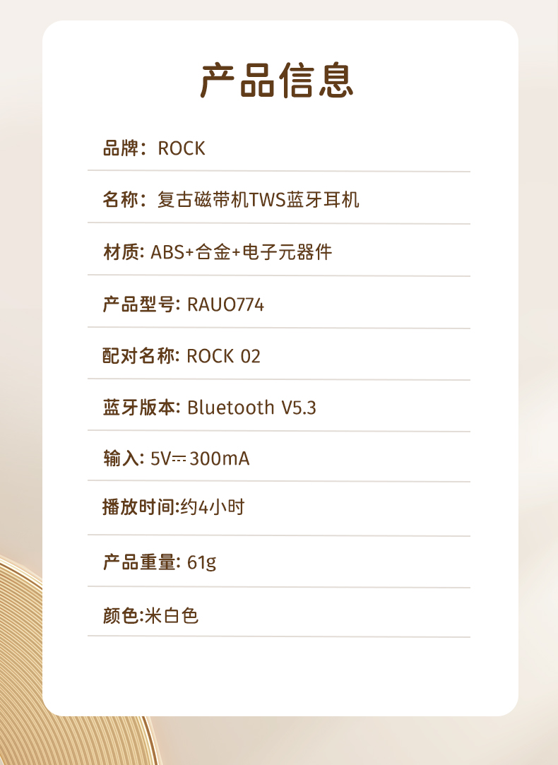 ROCK 复古磁带机TWS蓝牙耳机 RAU0774(单位:个) 本白色