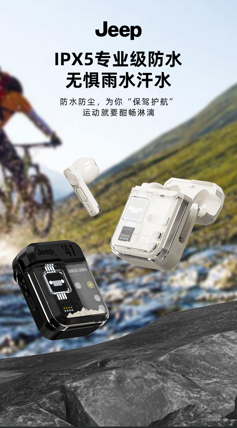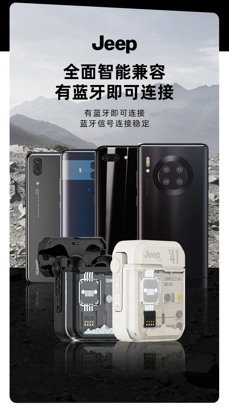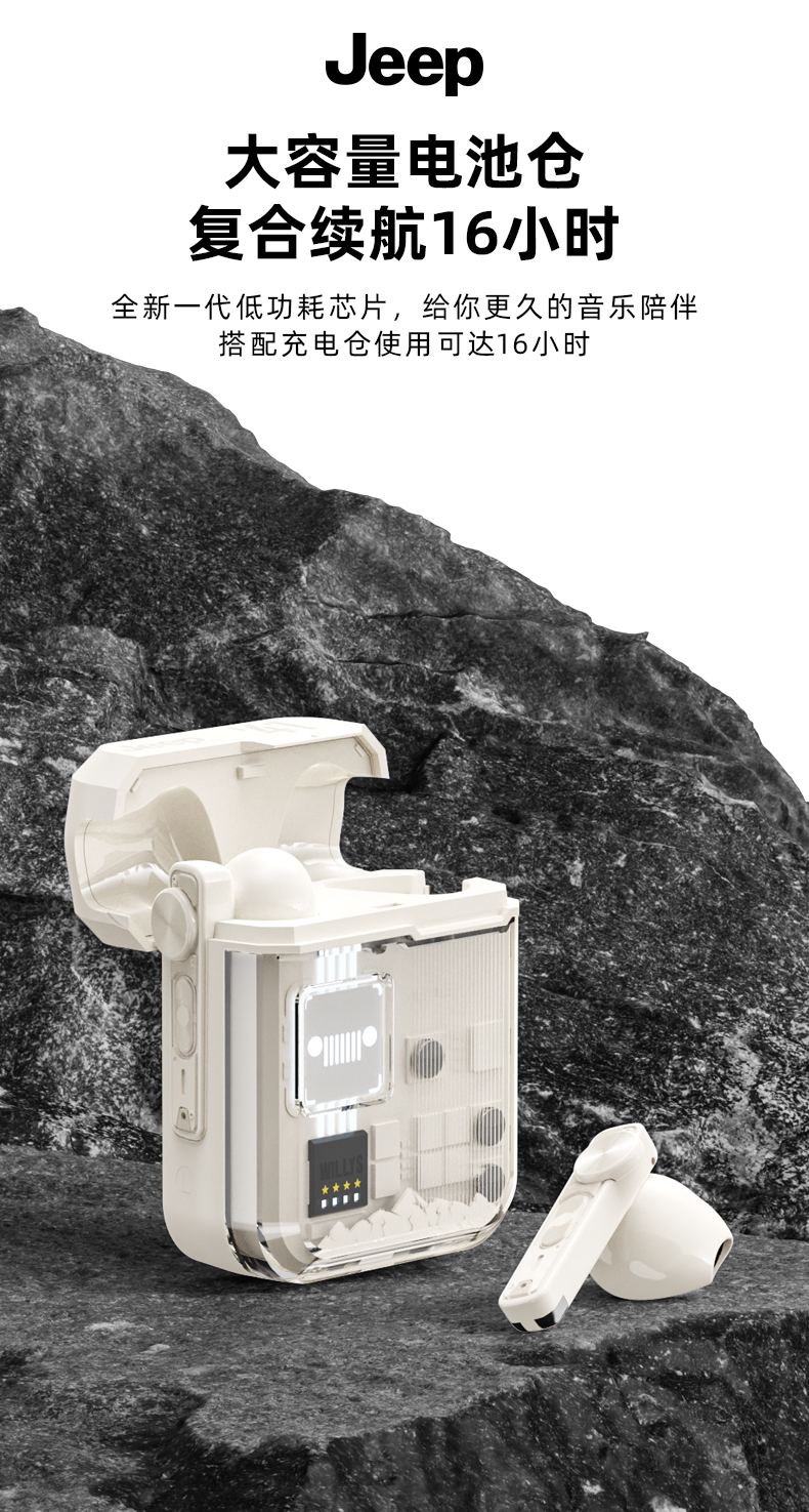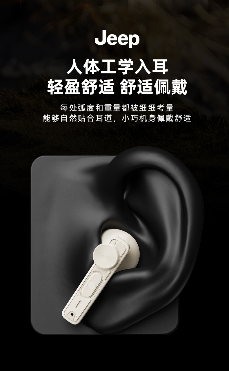 Jeep吉普 蓝牙耳机 半入耳式游戏低延迟运动跑步骑行高清通话降噪 通用苹果华为小米 单位:副 米白