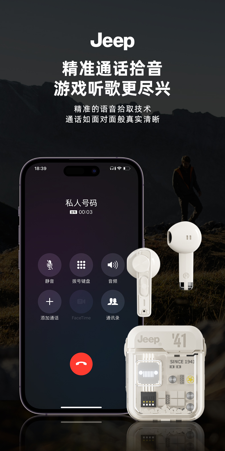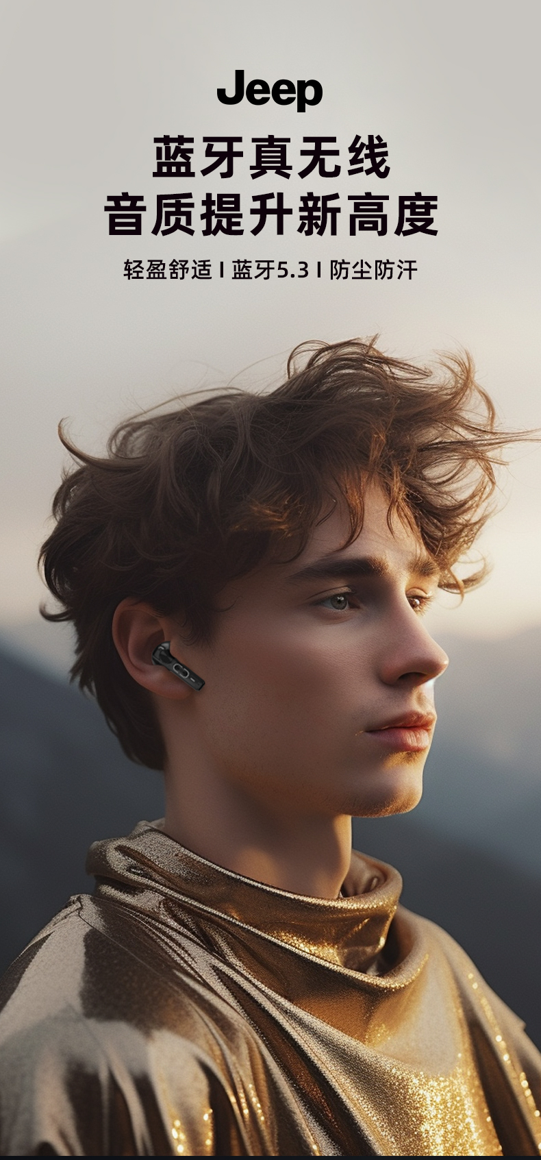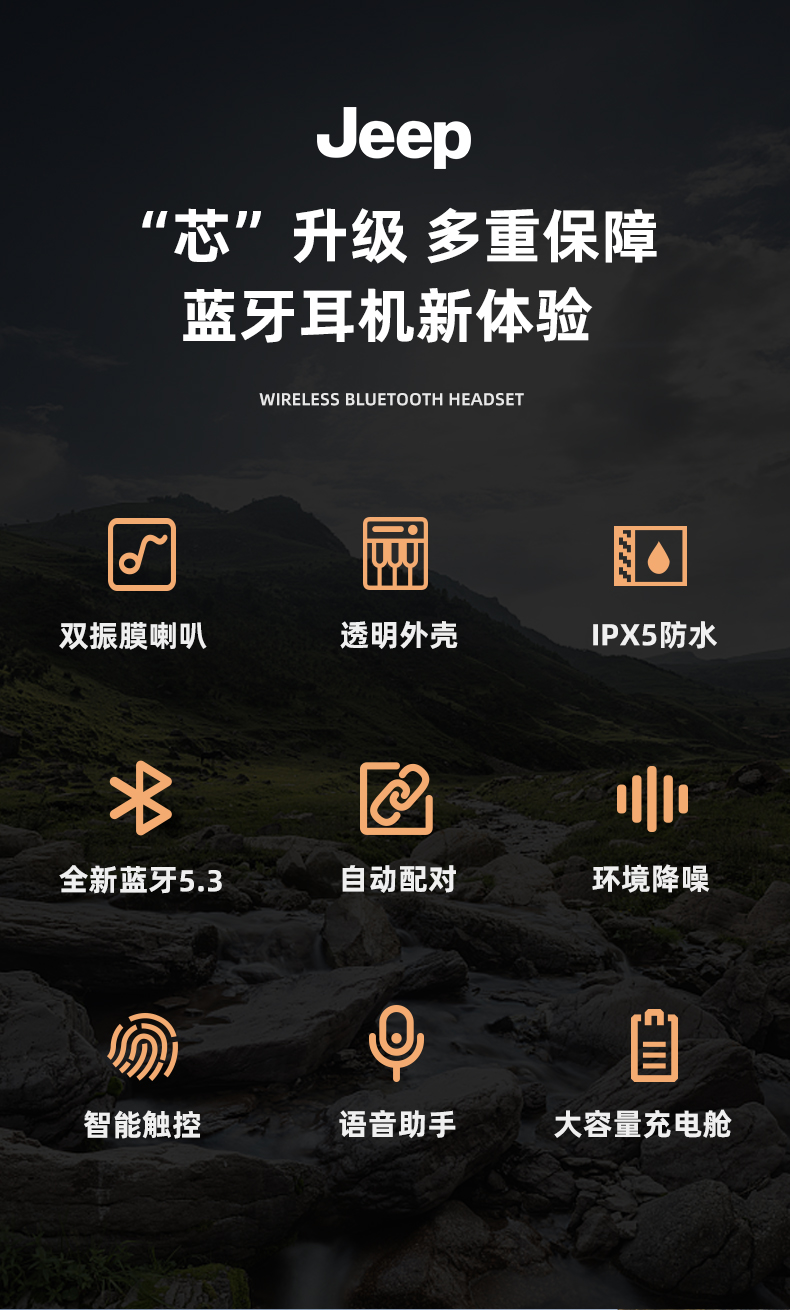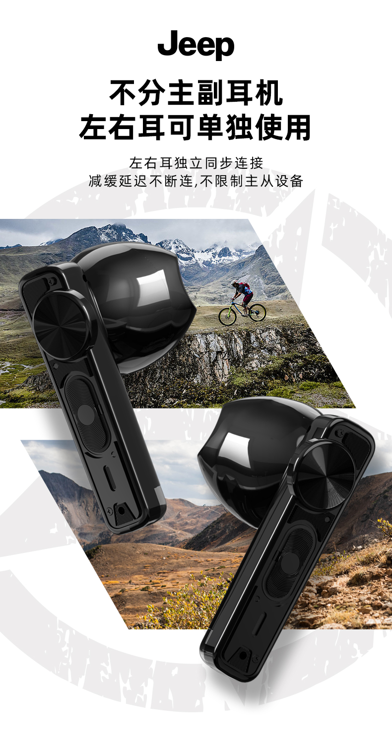 Jeep吉普 蓝牙耳机 半入耳式游戏低延迟运动跑步骑行高清通话降噪 通用苹果华为小米 单位:副 米白