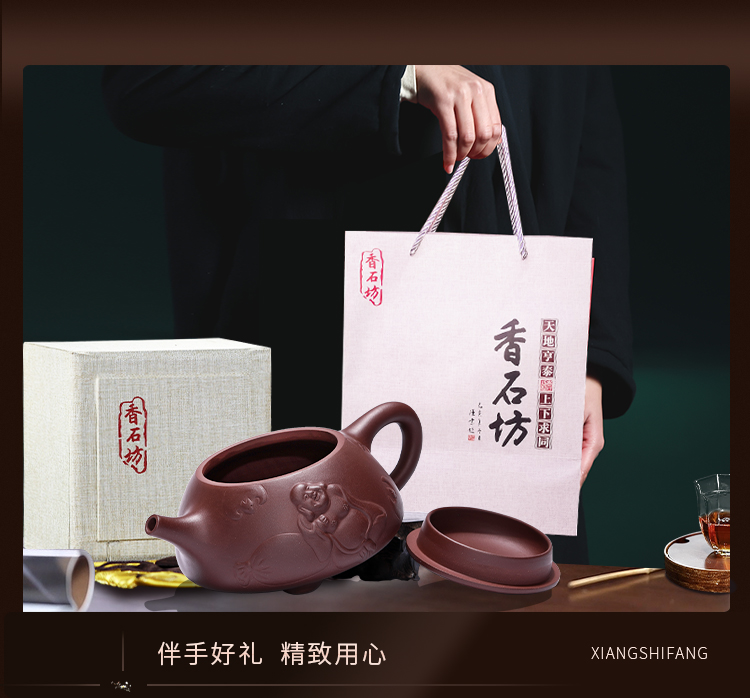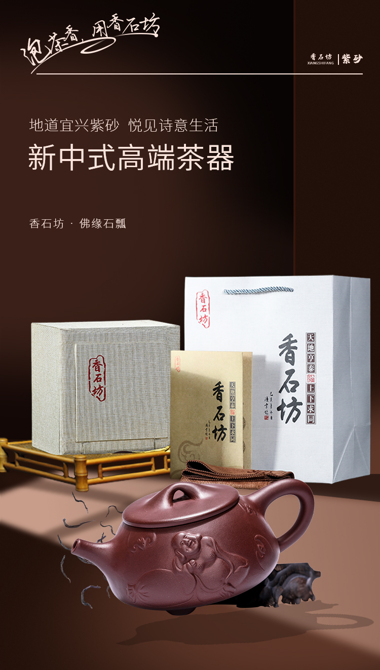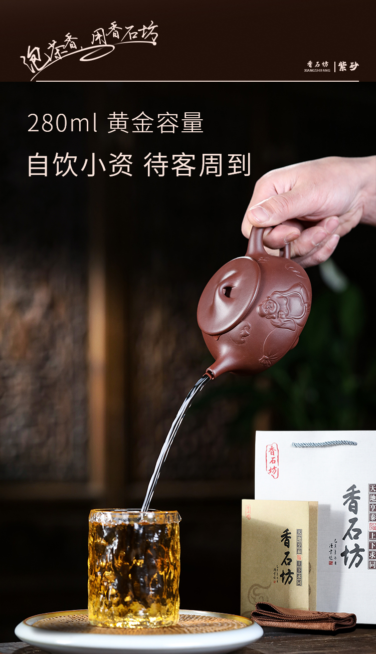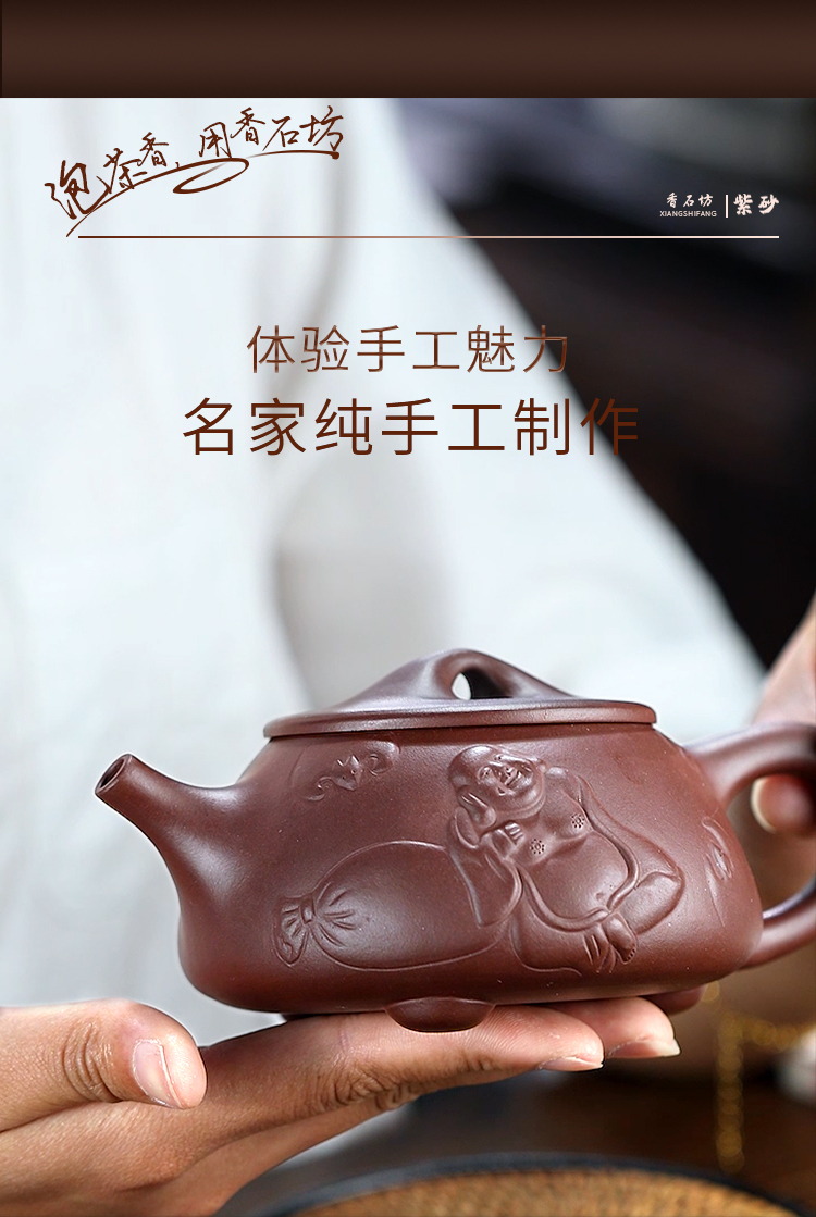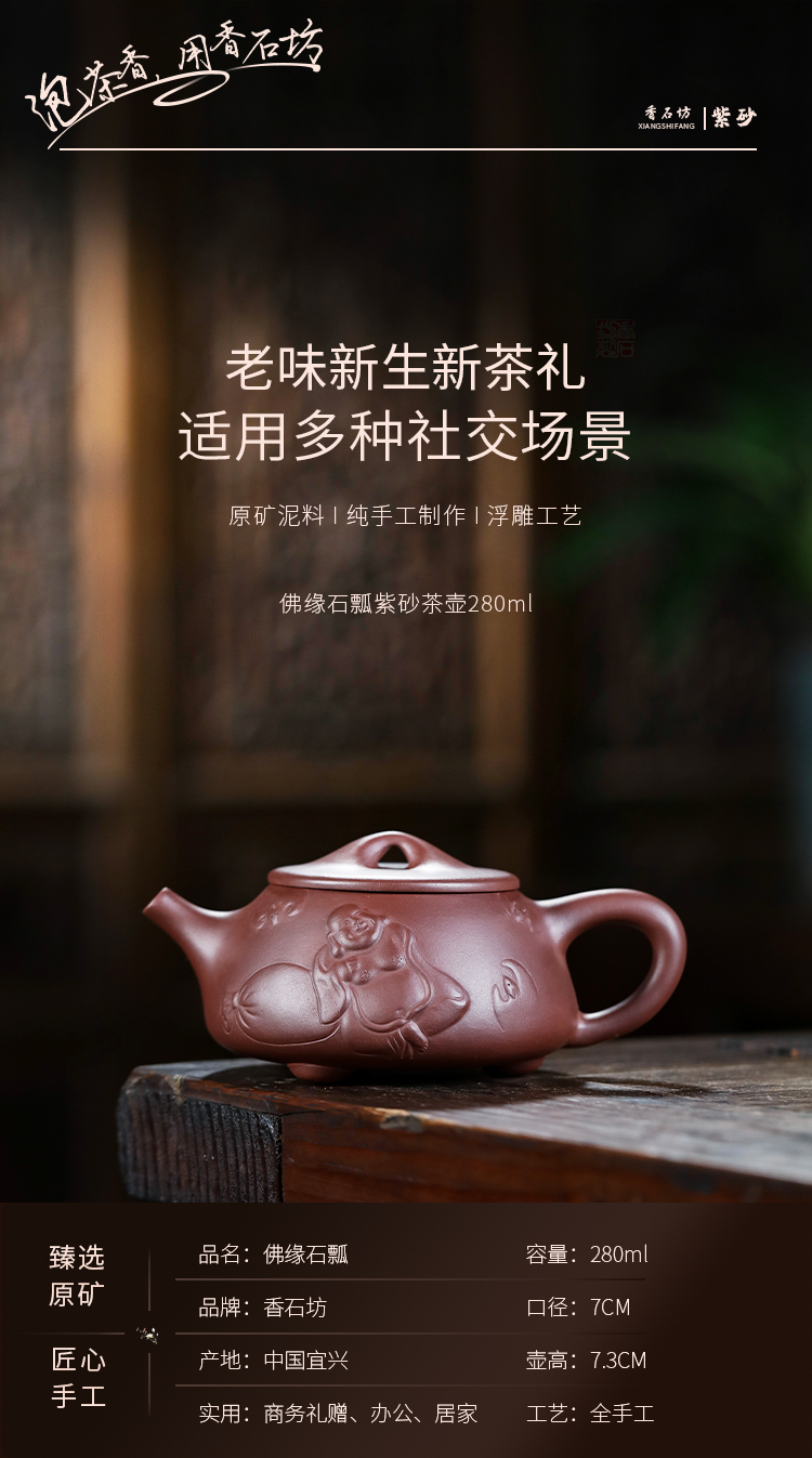 香石坊宜兴原矿名家纯手工紫砂壶功夫茶具佛缘石瓢280mlBT8240 单位:把 佛缘石瓢单壶