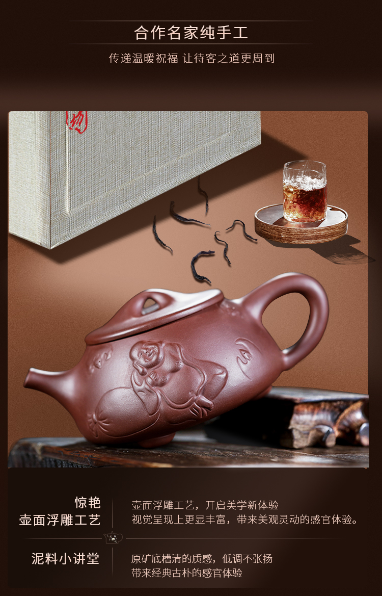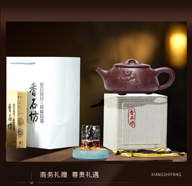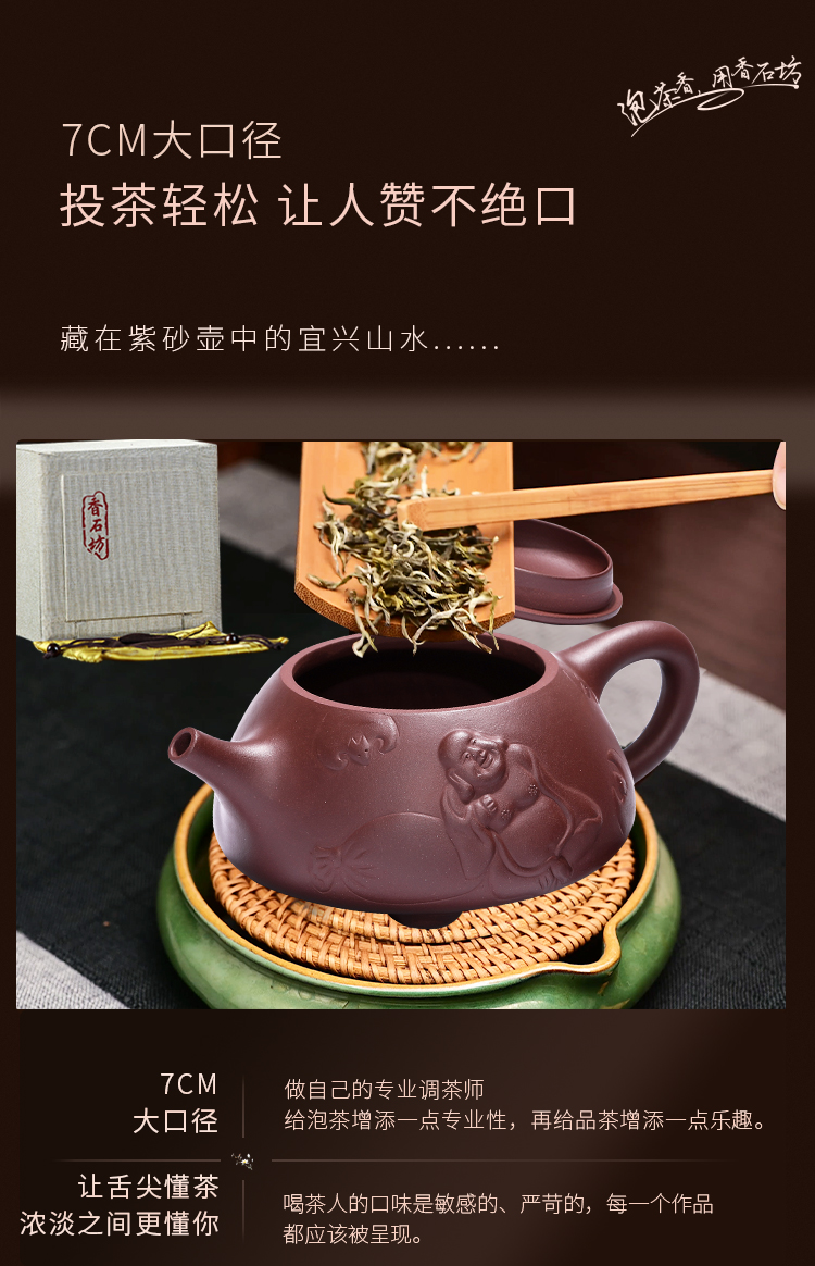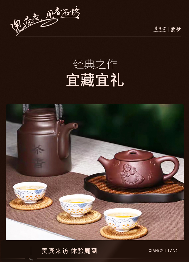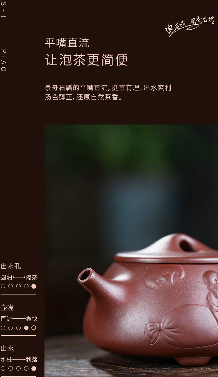 香石坊宜兴原矿名家纯手工紫砂壶功夫茶具佛缘石瓢280mlBT8240 单位:把 佛缘石瓢单壶