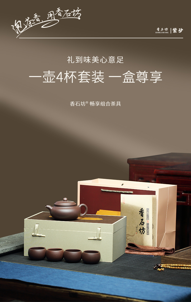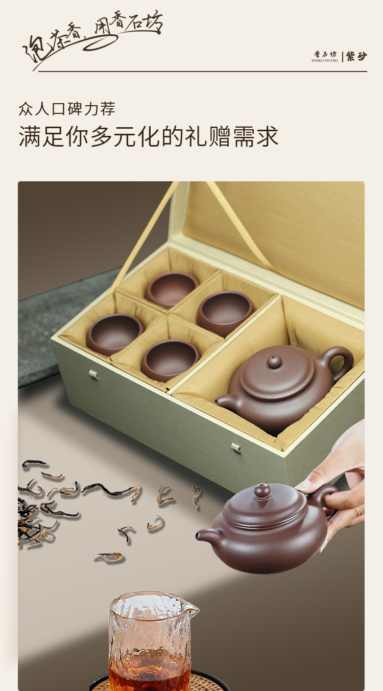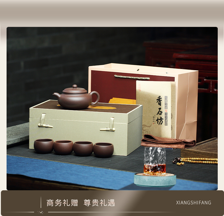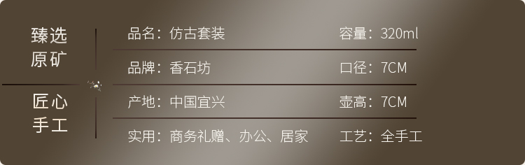 香石坊宜兴名家原矿纯手工紫砂壶功夫茶具一壶4杯套装仿古套装320mlBT902 单位:只 仿古壶 单壶