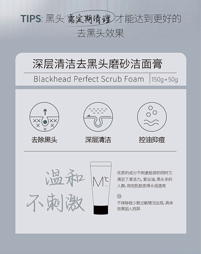 蒙度士(MdoC) 磨砂洁面膏 150g+50g 去黑头 灰色(单位:组)