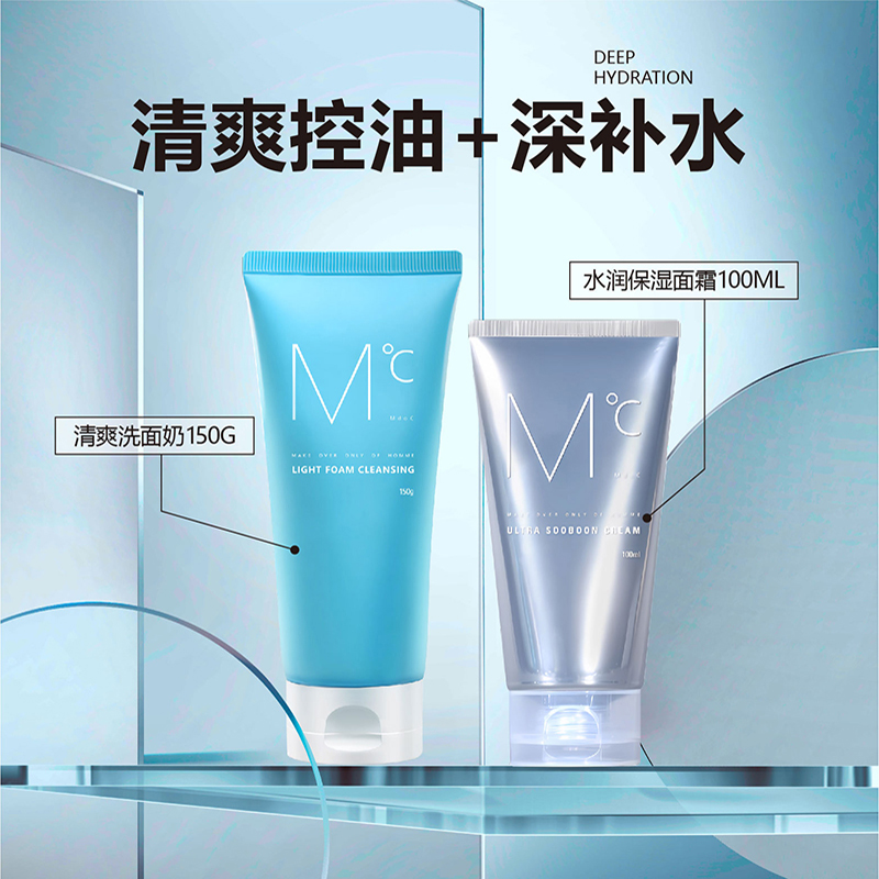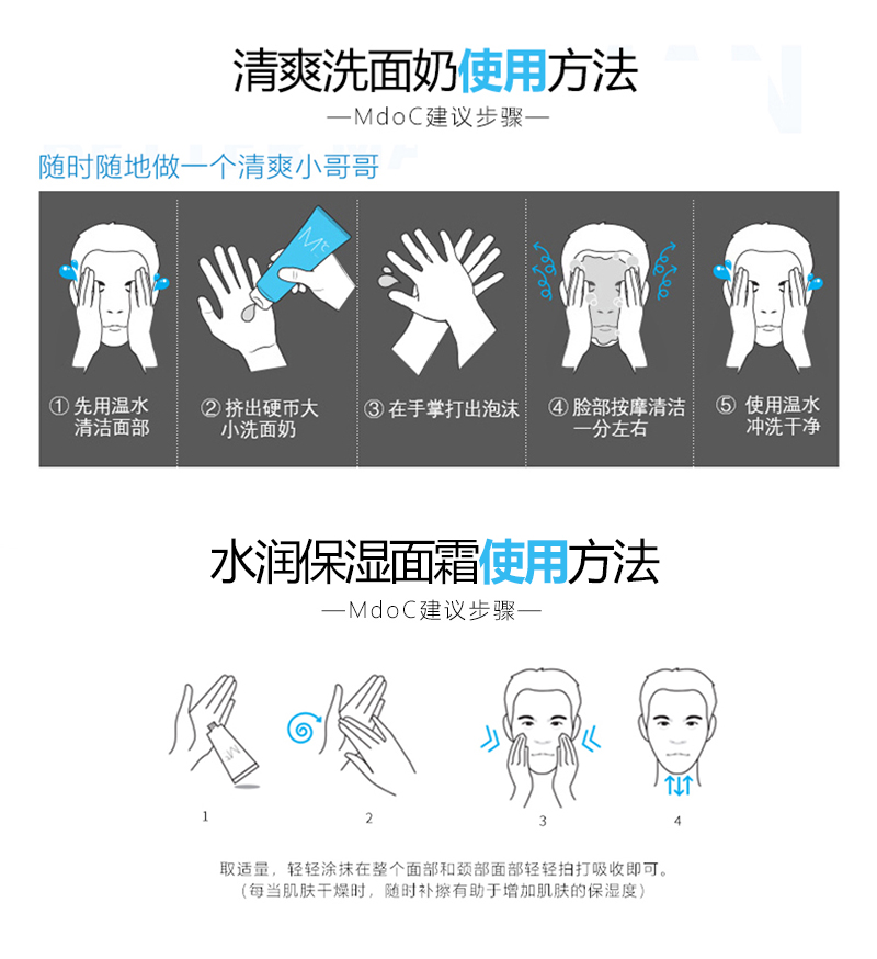 MdoC 蒙度士 男士控油清爽洗面奶150g+水润保湿面霜100ml(清爽补水组合)单位:组 水蓝色