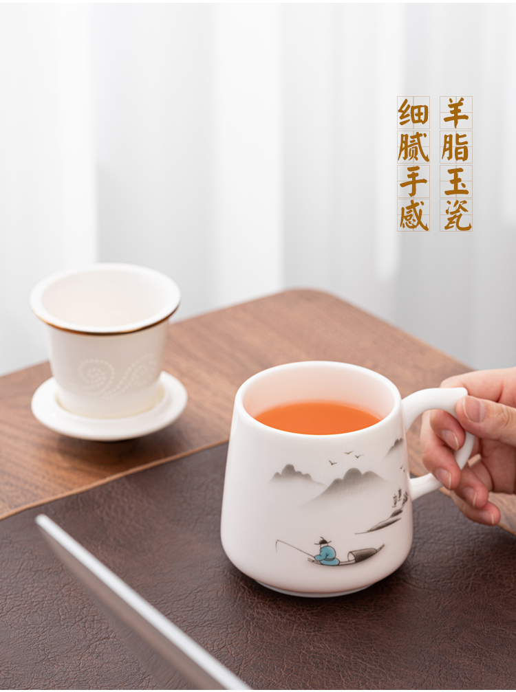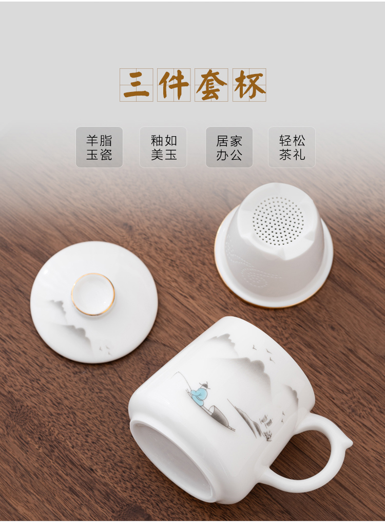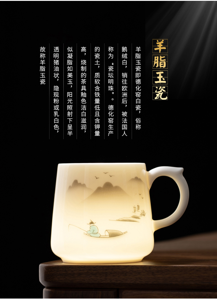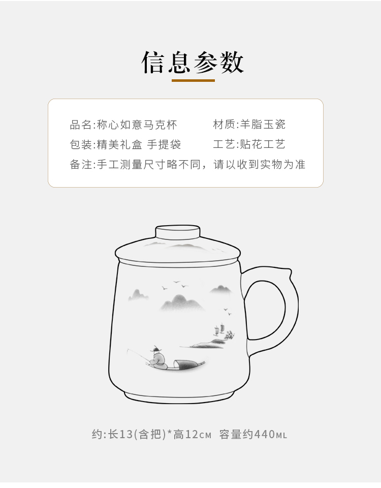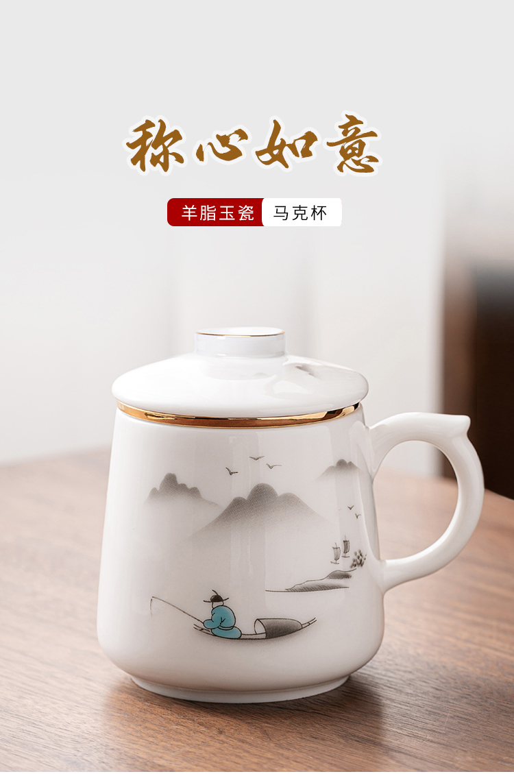 金镶玉 羊脂玉瓷办公杯 称心如意羊脂玉瓷马克杯 单位:套 白色