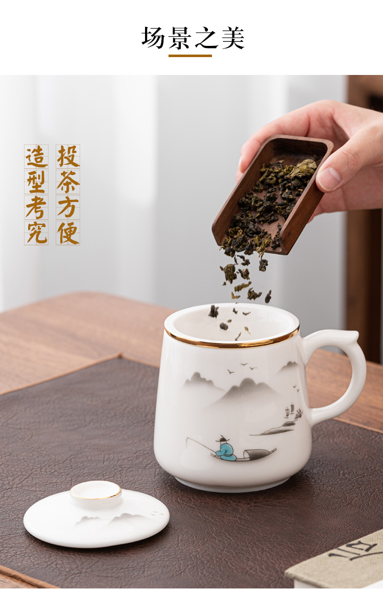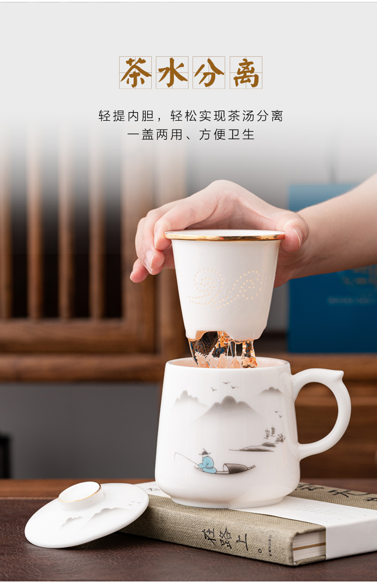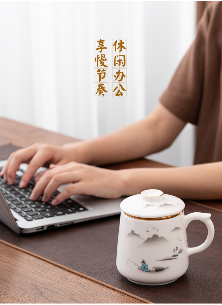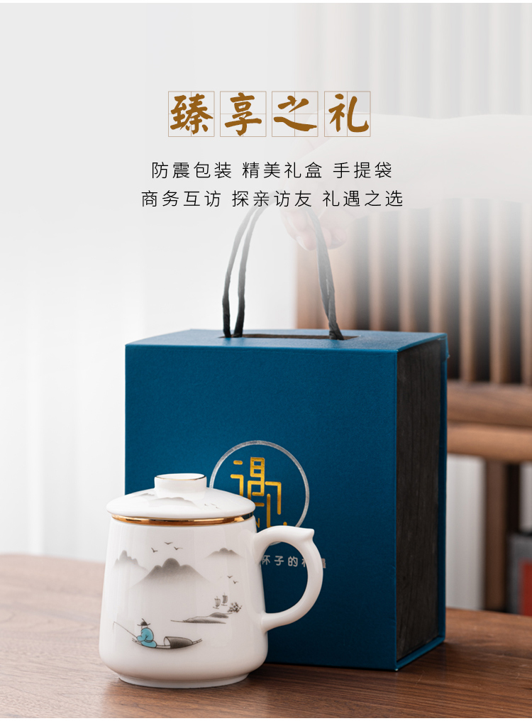 金镶玉 羊脂玉瓷办公杯 称心如意羊脂玉瓷马克杯 单位:套 白色