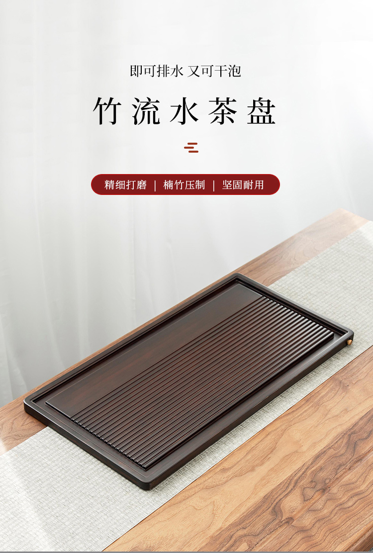 金镶玉 实木竹木茶盘托盘 家 胡桃色竹流水茶盘 单位:套 褐色