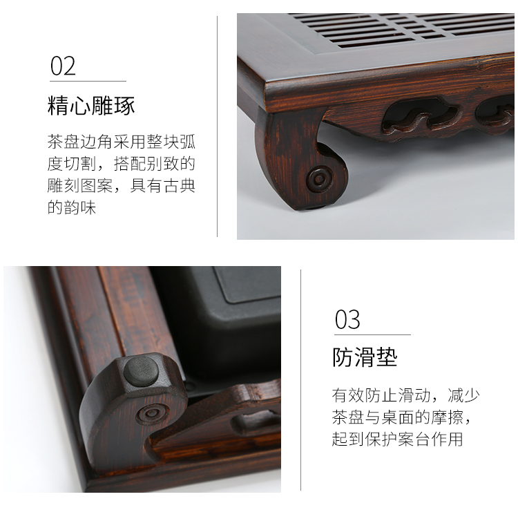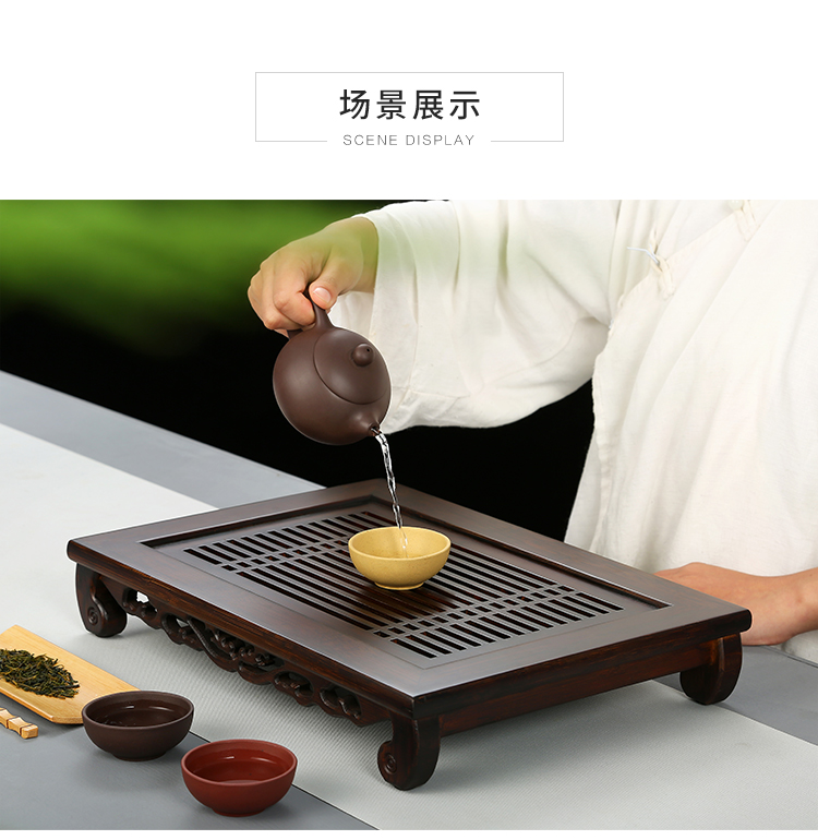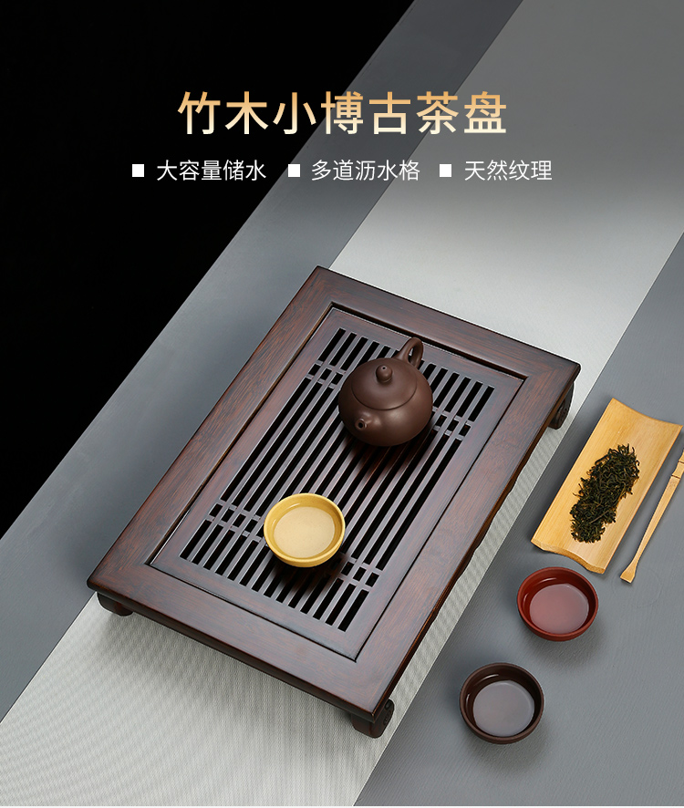 金镶玉 家用茶台实木竹木茶盘托盘 竹木小博古 单位:套 褐色