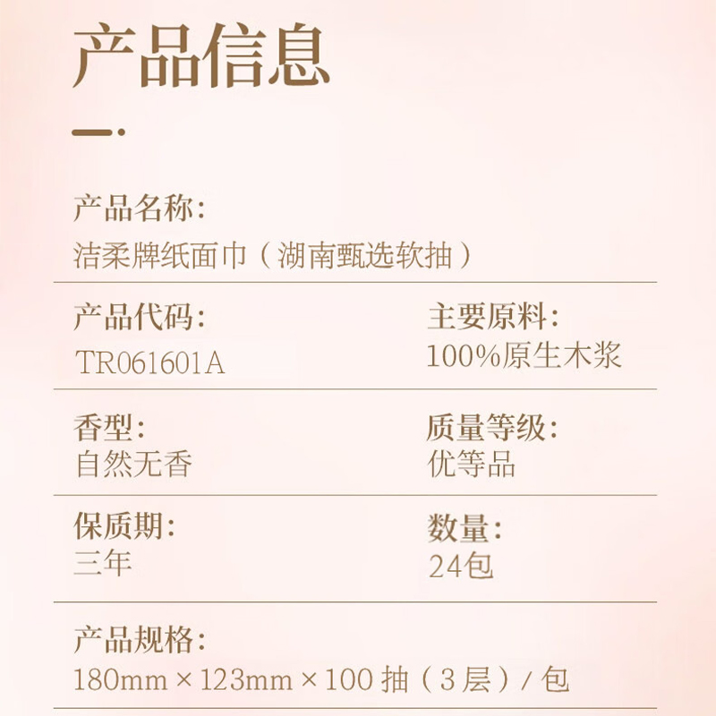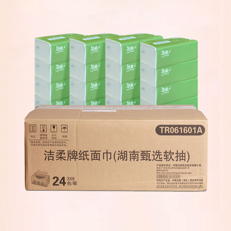 洁柔(C&S) TR061601A*8 3层100抽180x123mm*24包 抽纸甄选软抽 绿色(单位:箱)