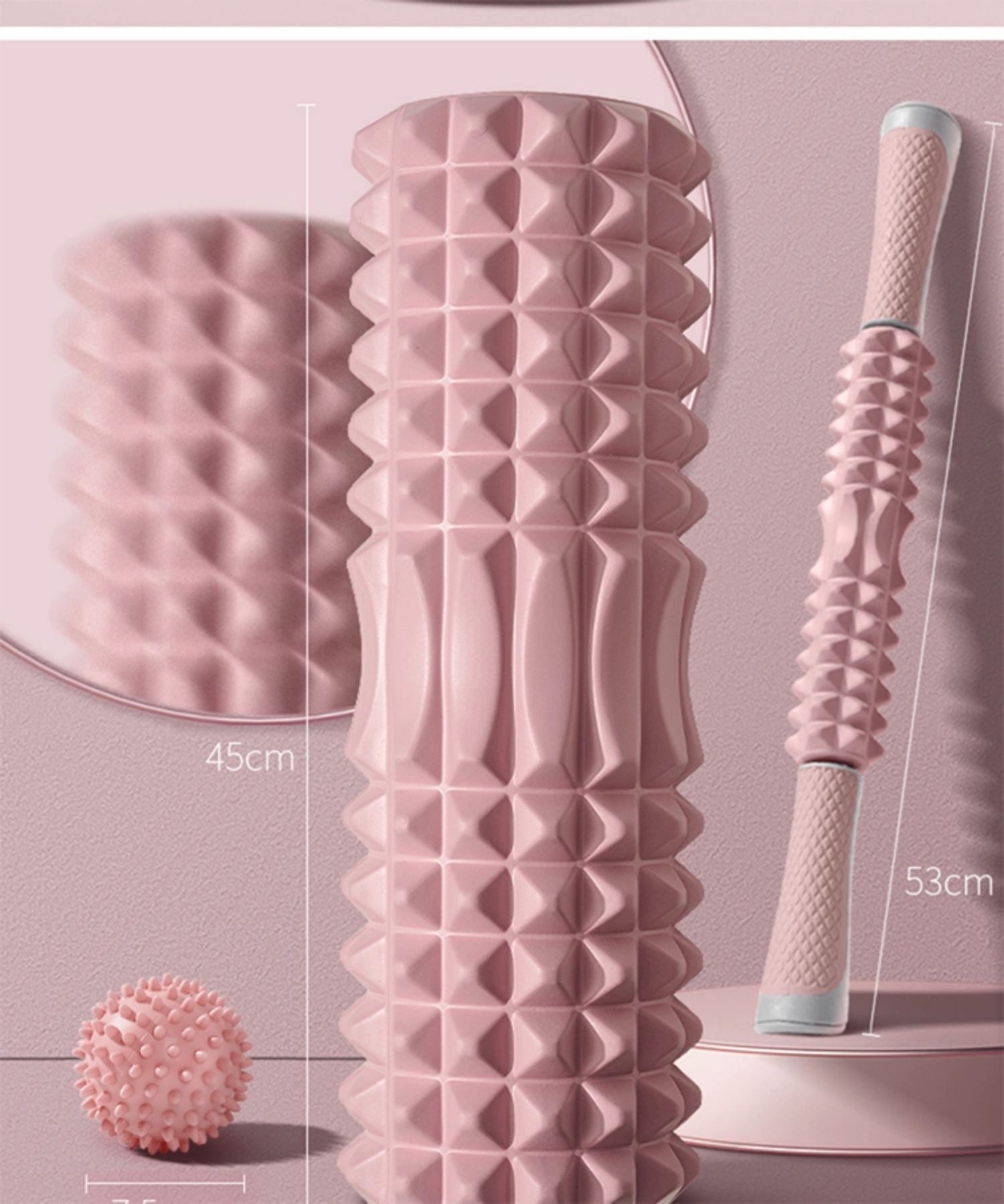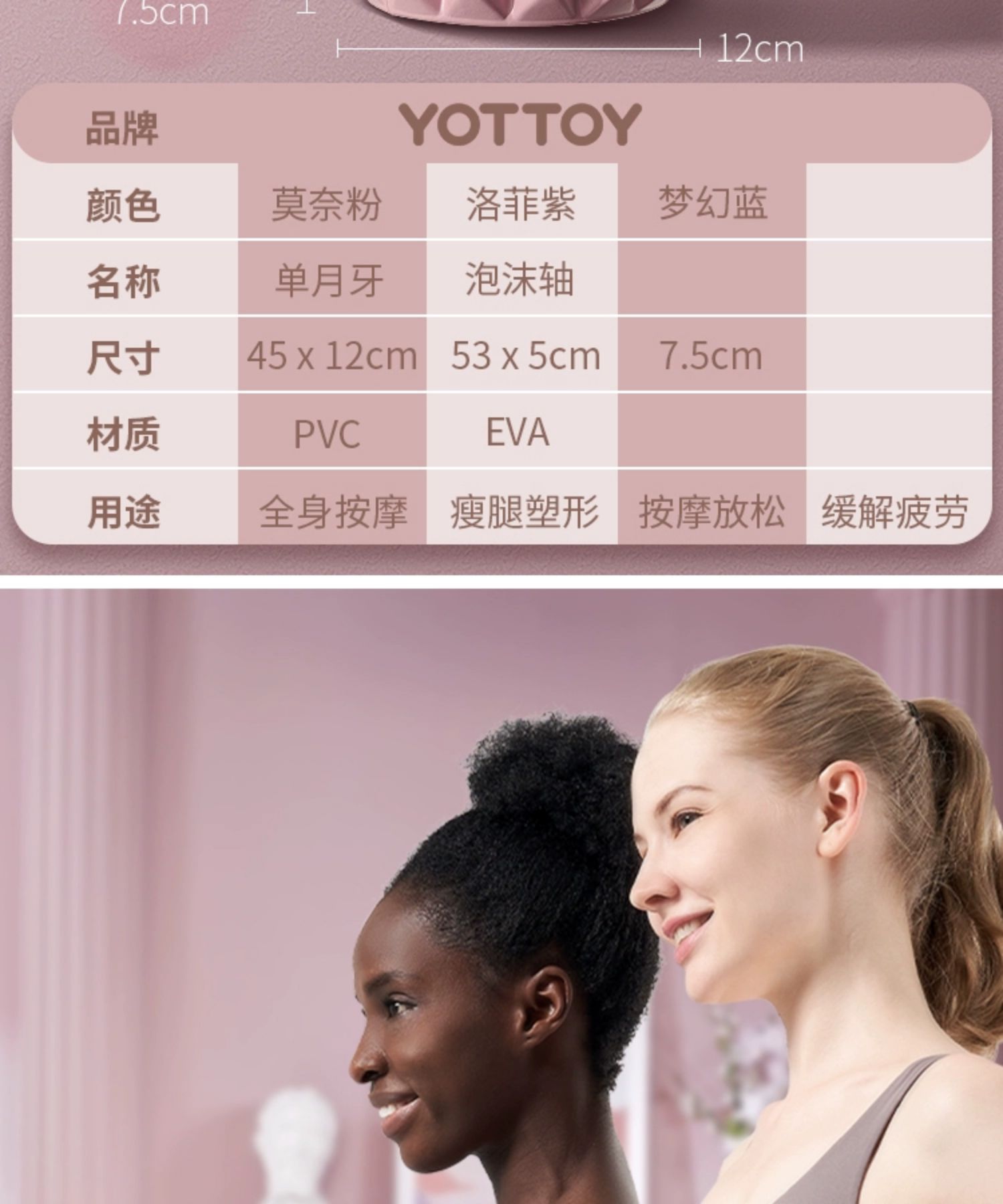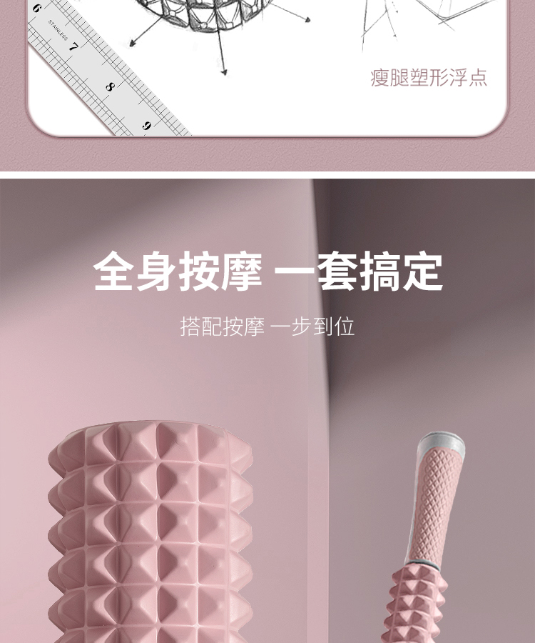 yottoy泡沫轴 狼牙棒肌肉放松腿部按摩滚轴轮瑜伽柱健身器材 单位:件 莫奈粉