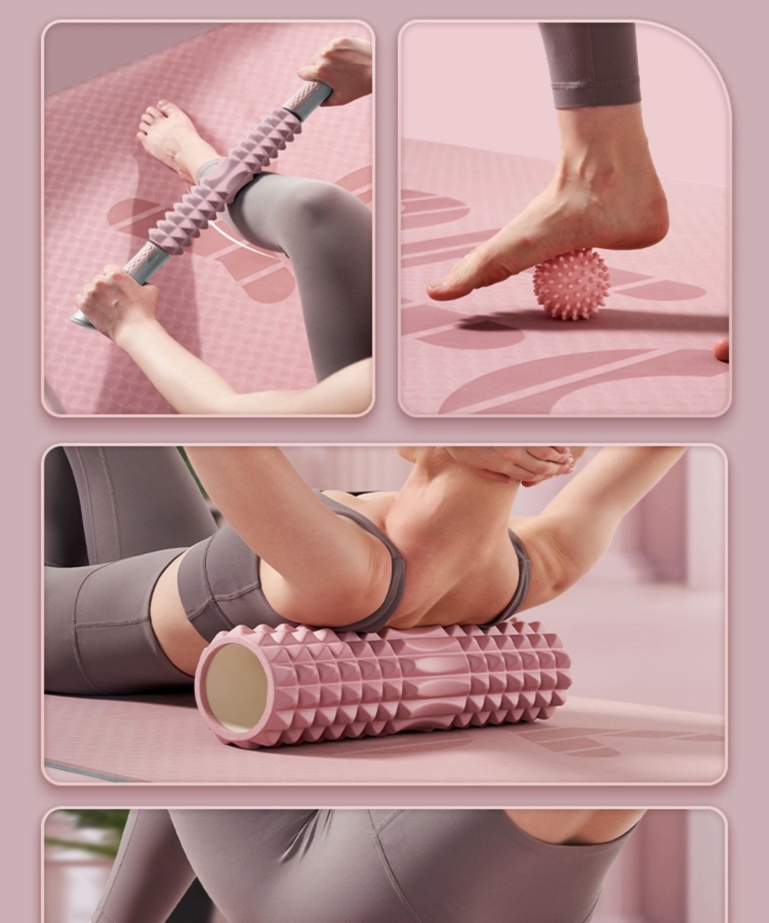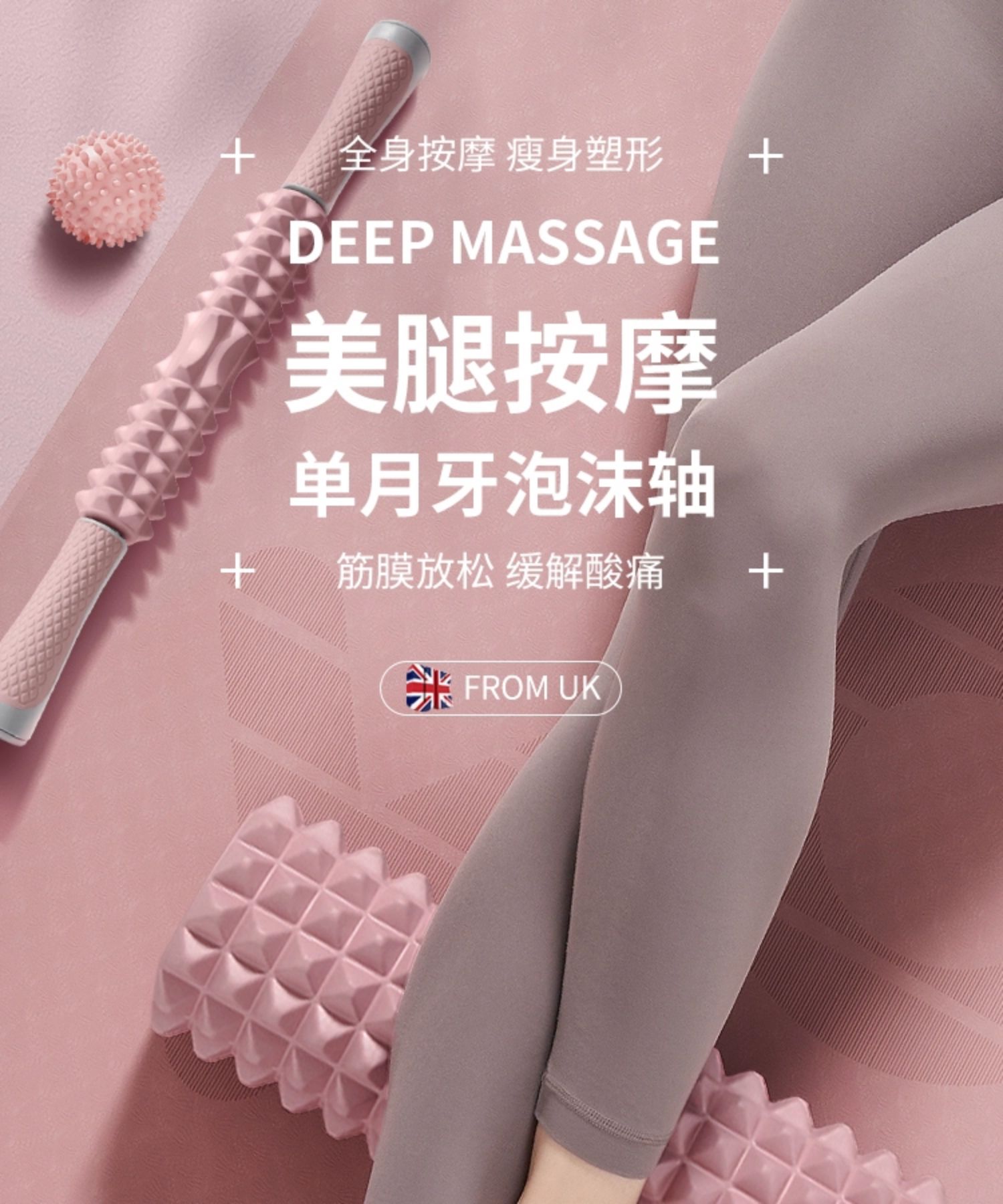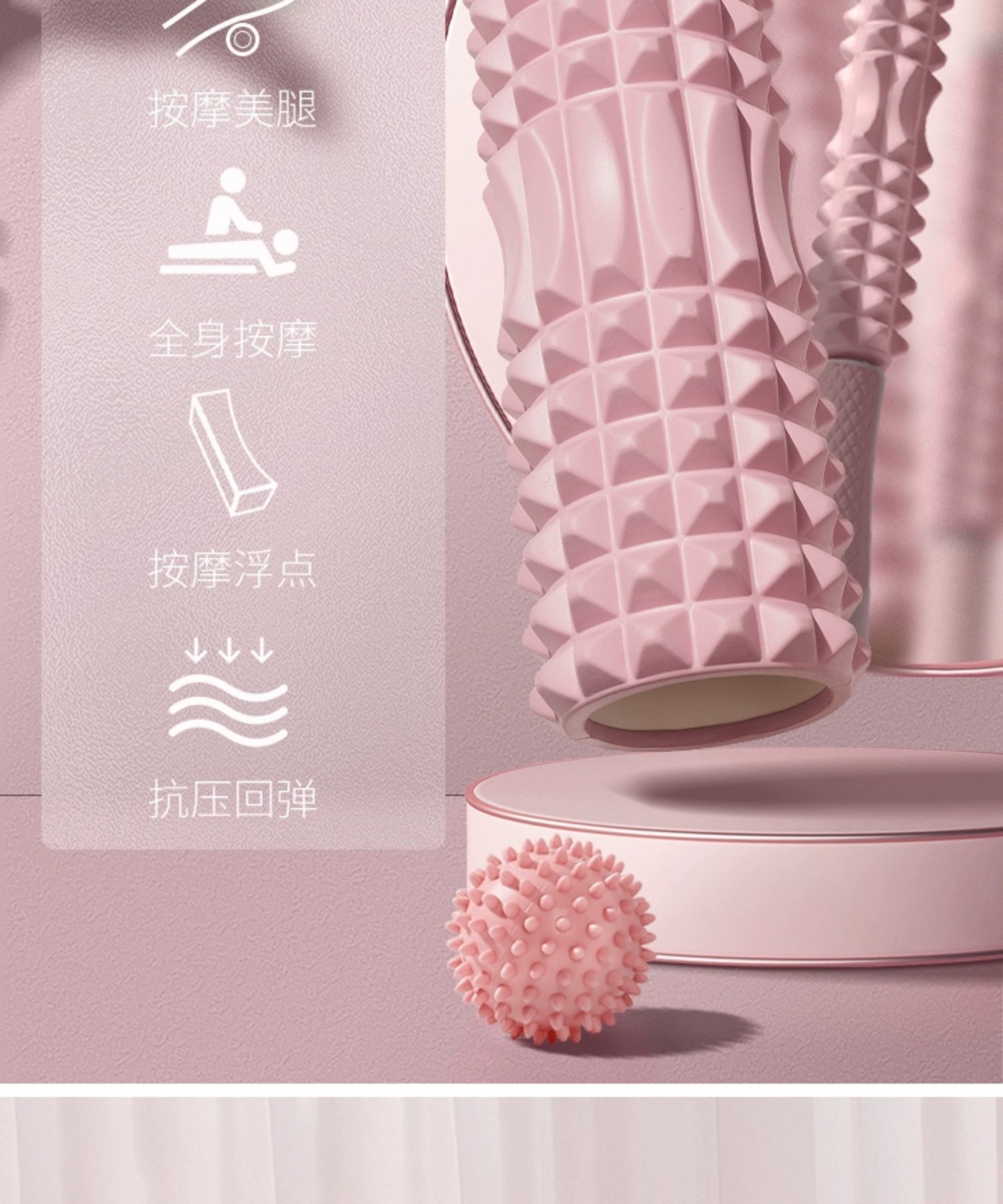 yottoy泡沫轴 狼牙棒肌肉放松腿部按摩滚轴轮瑜伽柱健身器材 单位:件 莫奈粉
