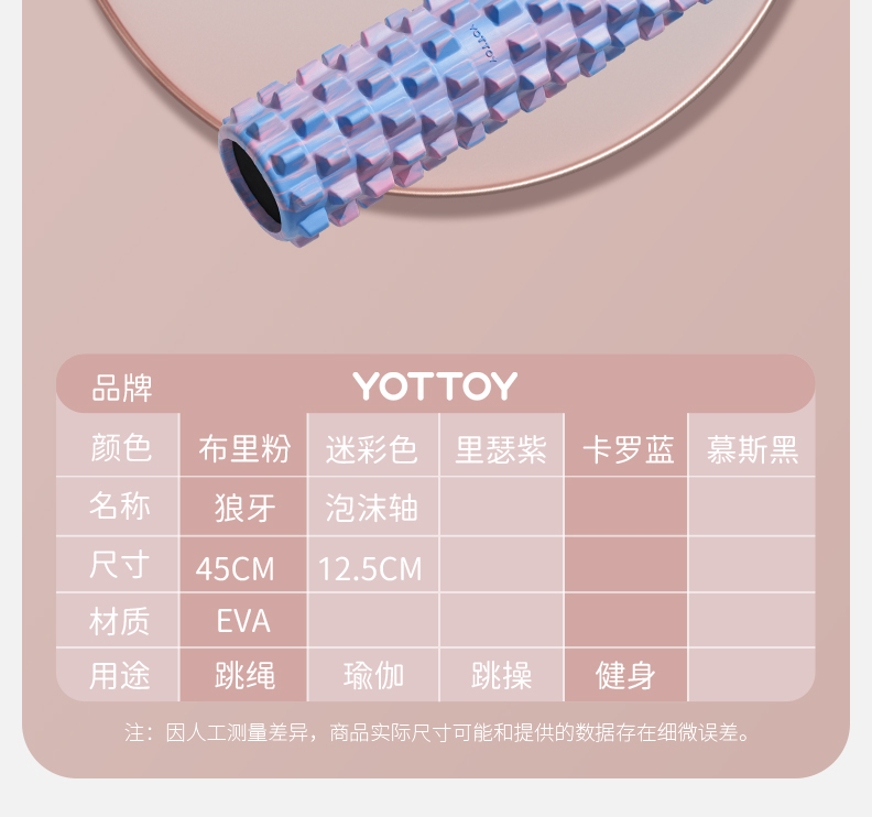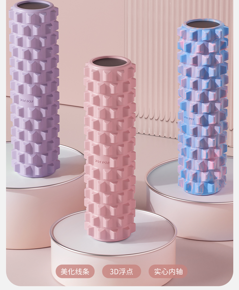 YOTTOY狼牙棒实心健身器材泡沫轴肌肉放松按摩滚轴轮瘦腿神器琅琊瑜伽柱 单位:件 里瑟紫