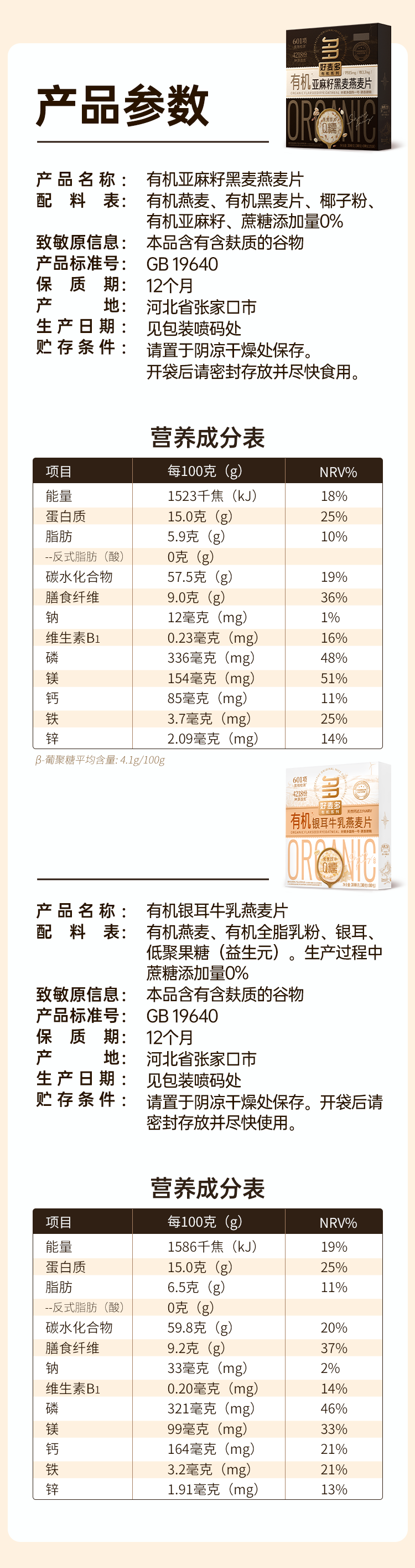 好麦多(HONlife)有机复合麦片组合礼袋装300g*4 有机亚麻籽黑麦燕麦片&有机银耳牛乳燕麦片(单位:盒) 白色