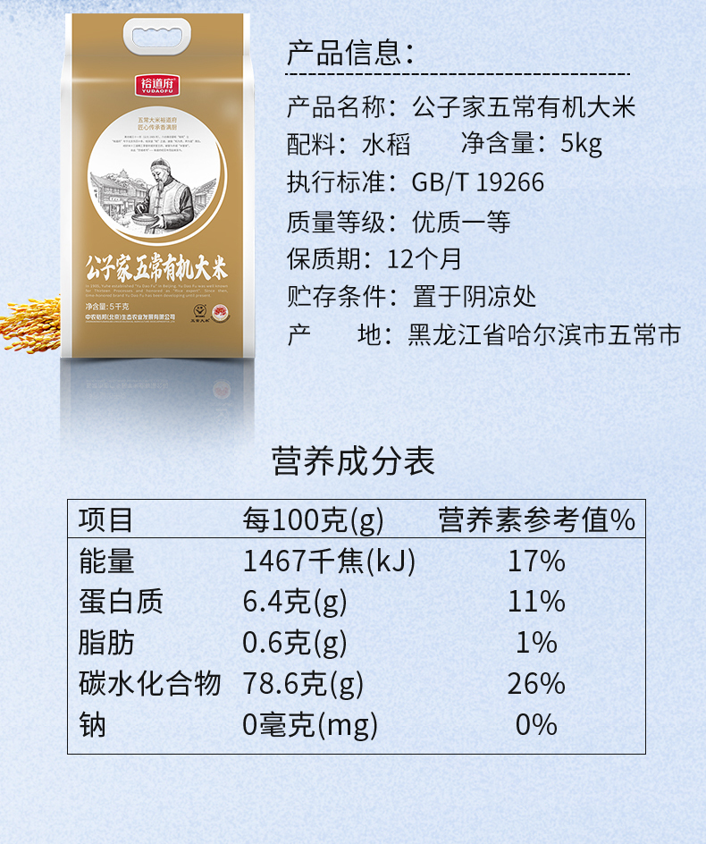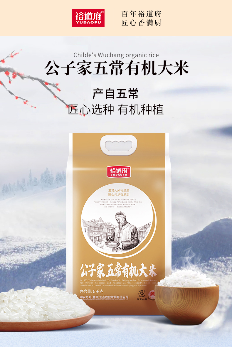 裕道府公子家五常有机大米5kg 单位:袋 玫瑰金